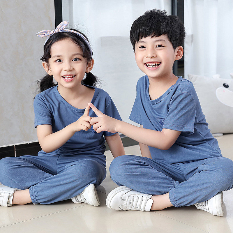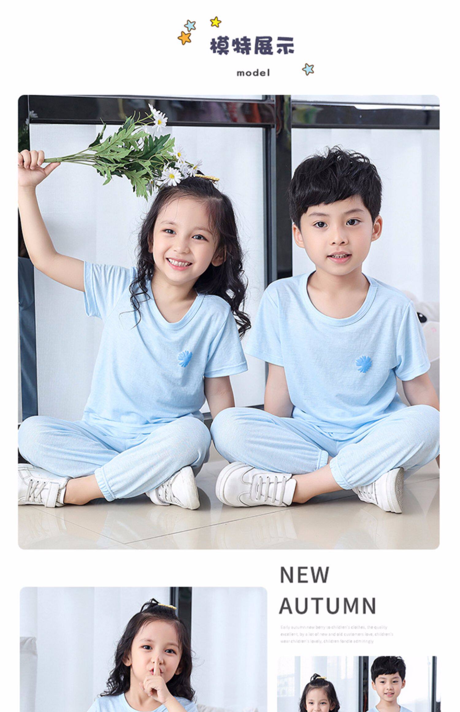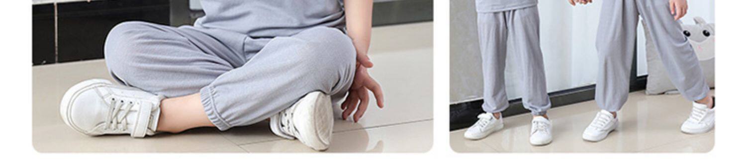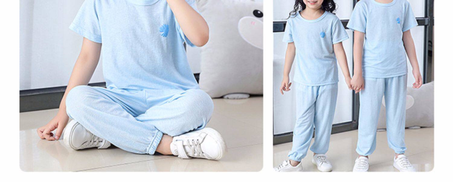 Детская шелковая футболка, штаны подходит для мужчин и женщин, средство от комаров с круглым воротником, пижама, с рукавом
