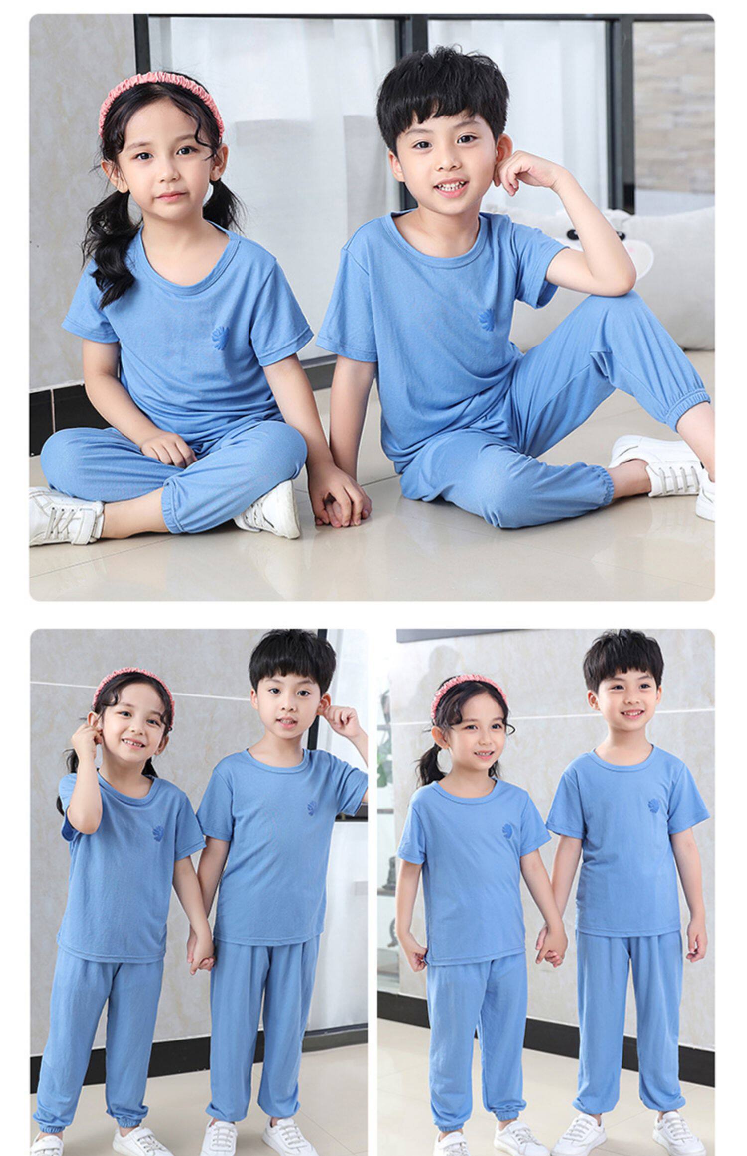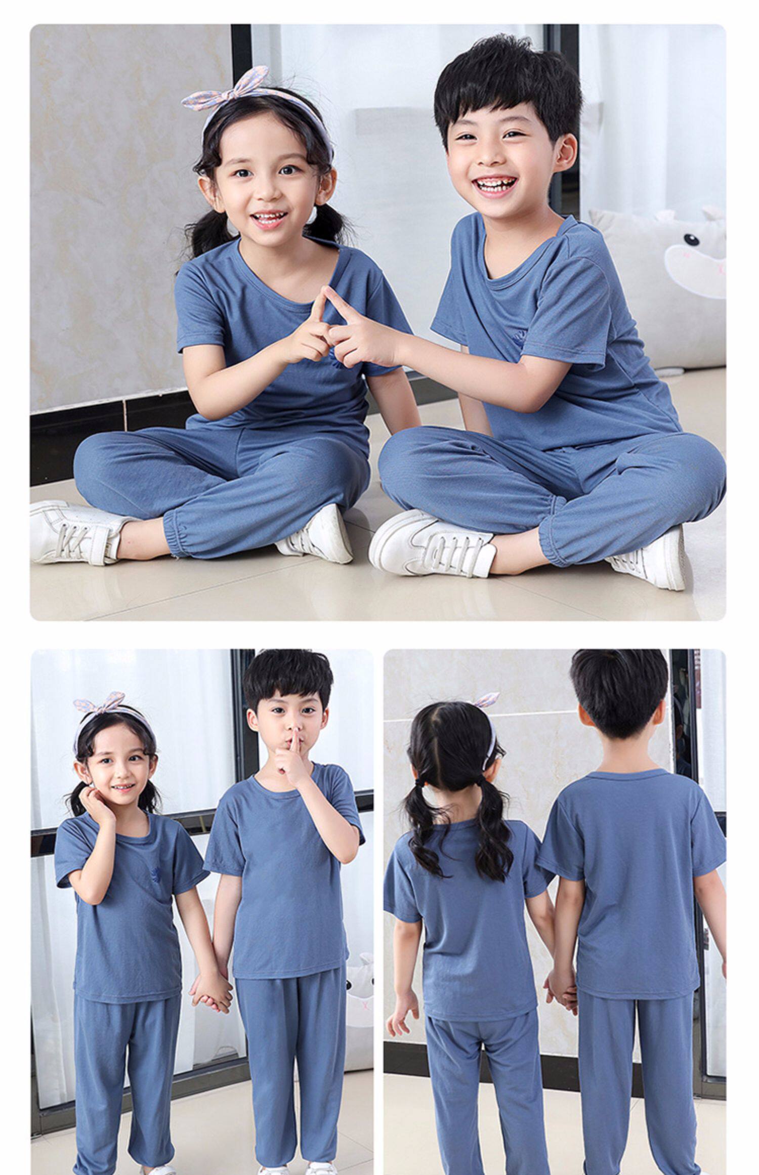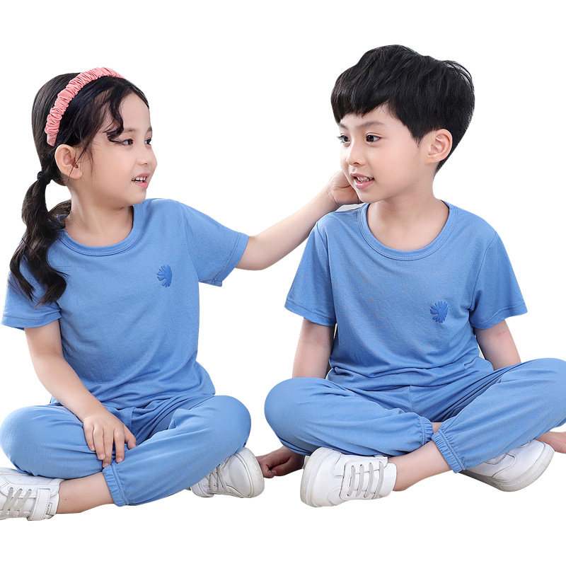 Детская шелковая футболка, штаны подходит для мужчин и женщин, средство от комаров с круглым воротником, пижама, с рукавом