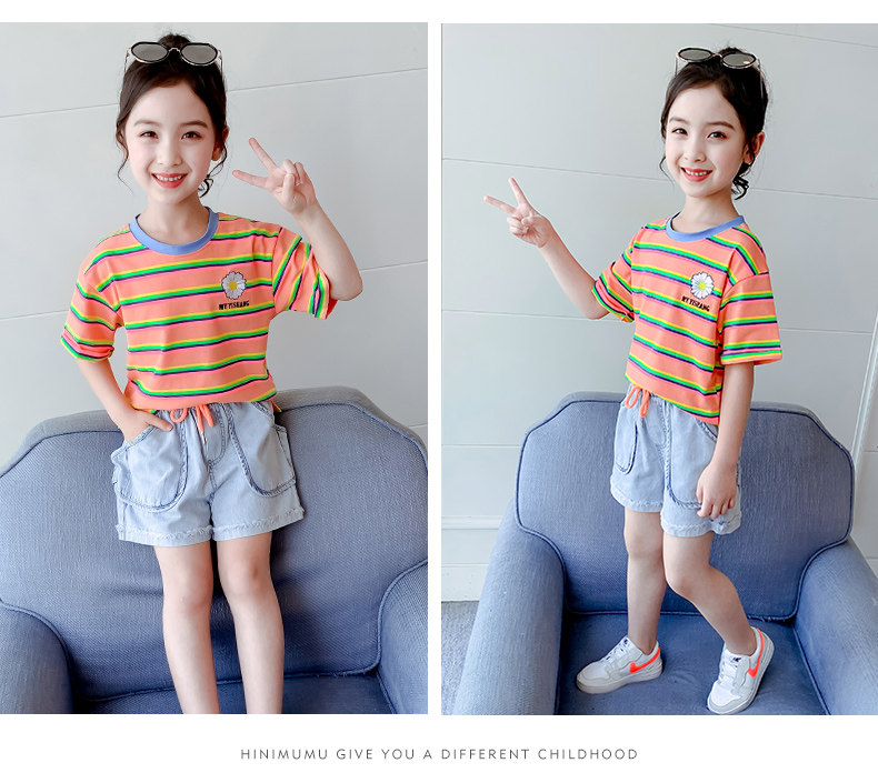 Комплект, тонкая детская летняя одежда, в западном стиле, детская одежда, 2020, в корейском стиле