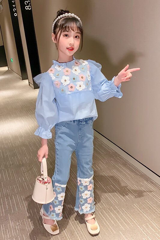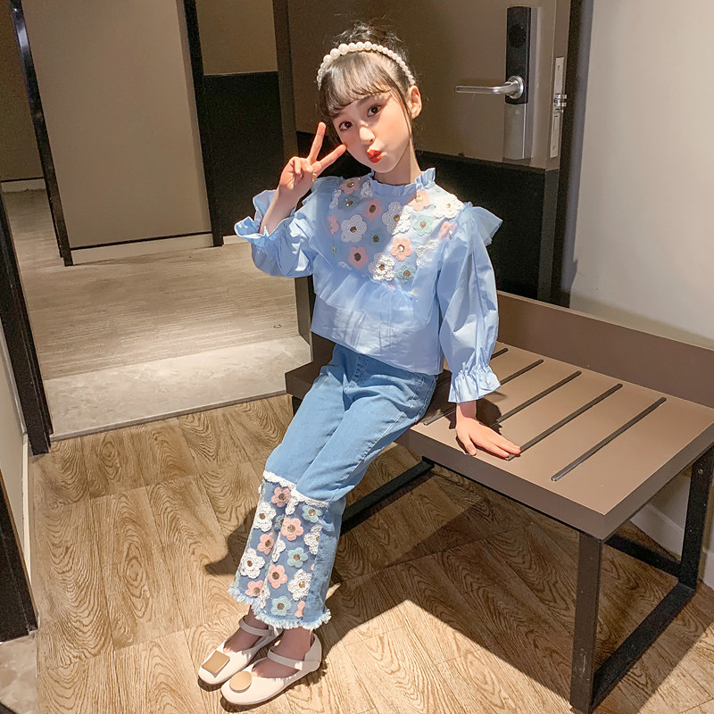 Осенний детский комплект, демисезонные джинсы, популярно в интернете, в западном стиле, детская одежда