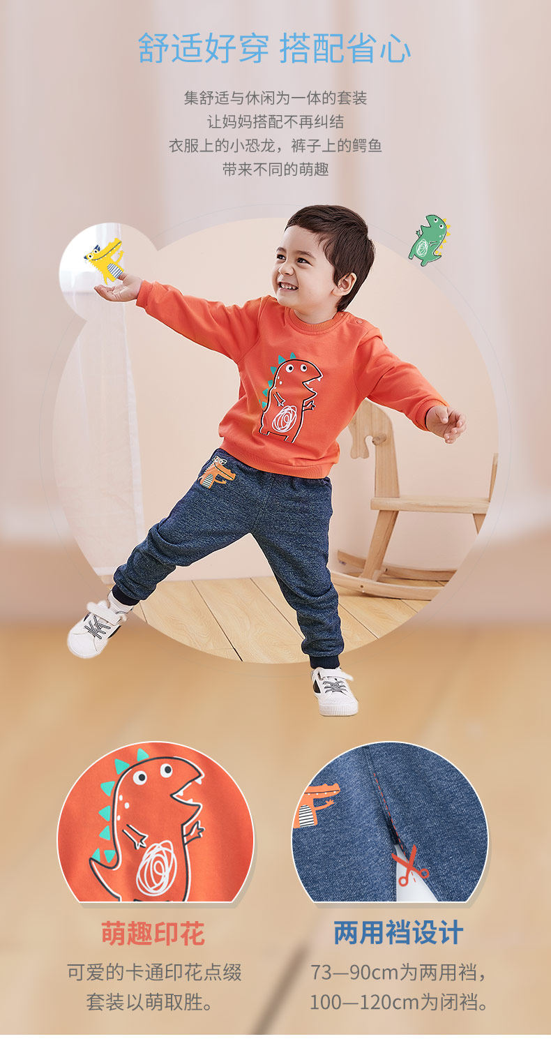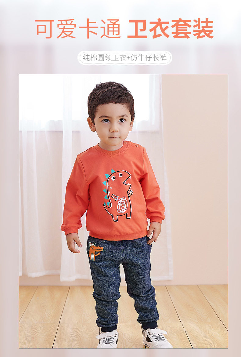 Детский осенний комплект, лонгслив для мальчиков, штаны, классическая длина, в западном стиле