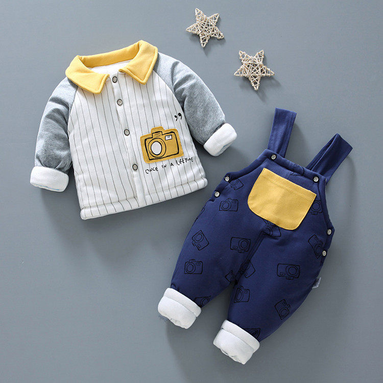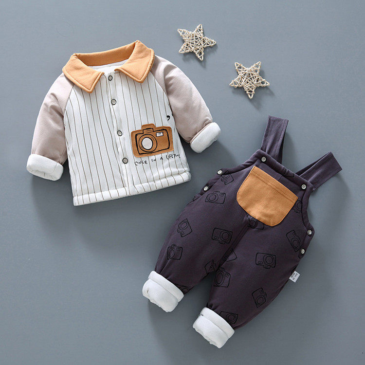 Детский стеганый осенний пуховик для раннего возраста, подтяжки, комплект, 0-1 лет