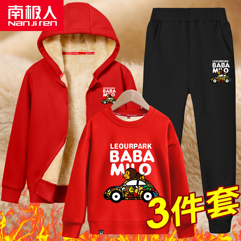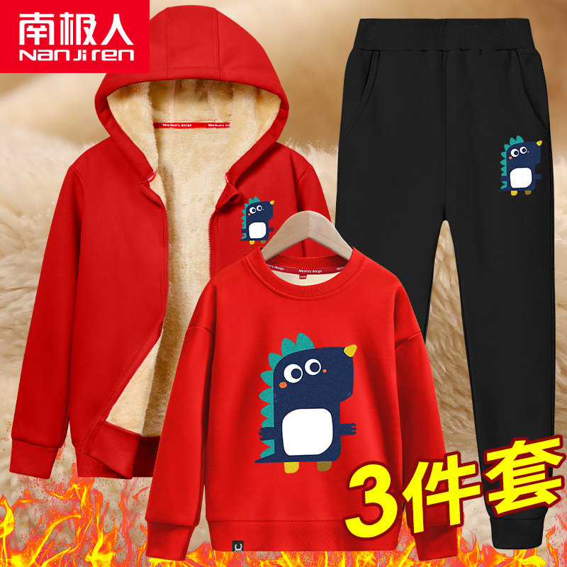 Утепленный комплект для мальчиков, детский демисезонный пуховик, спортивная толстовка, 2021 года, 3 предмета