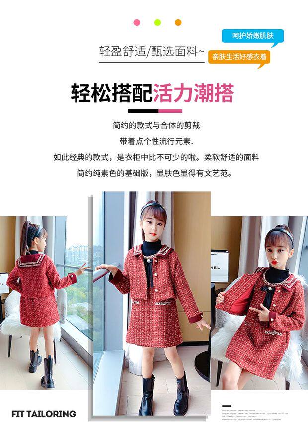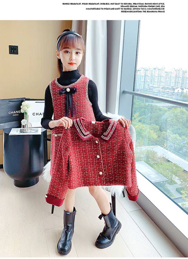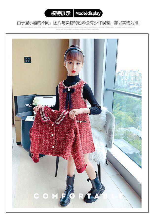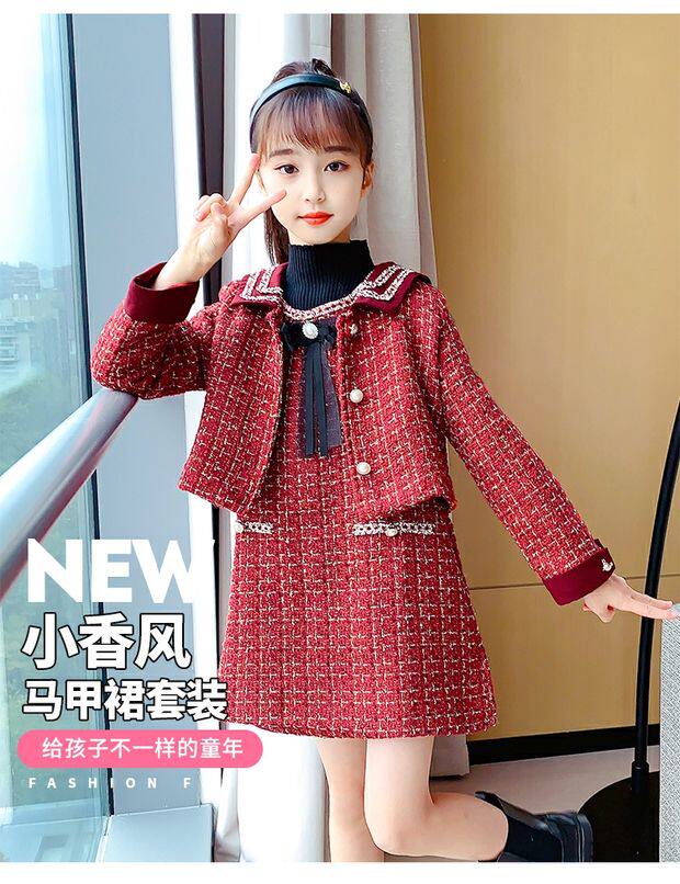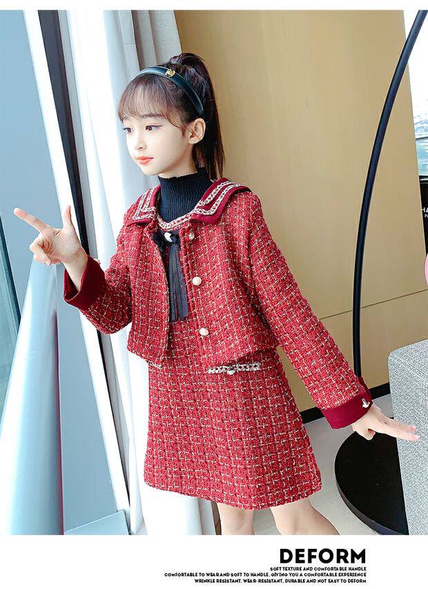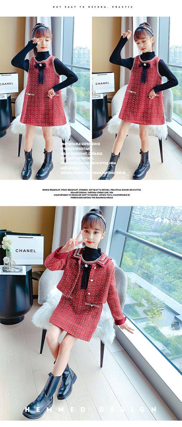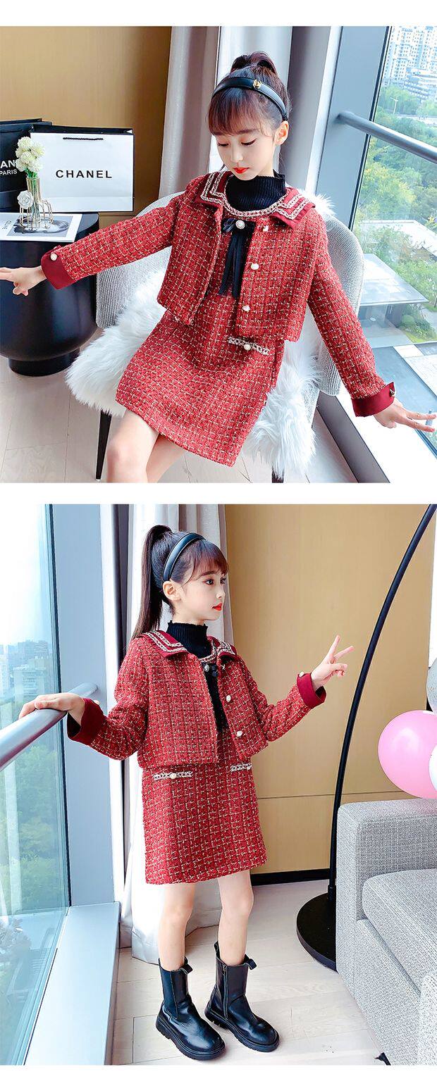 Демисезонный комплект, детская юбка, в стиле Шанель, коллекция 2021, в корейском стиле, в западном стиле