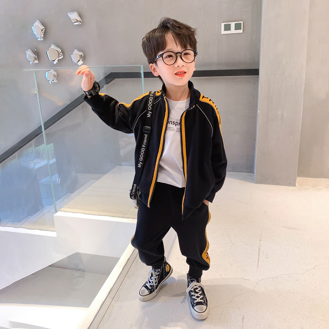 Осенний комплект для мальчиков, детский спортивный костюм, в западном стиле, популярно в интернете, подходит для подростков