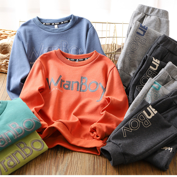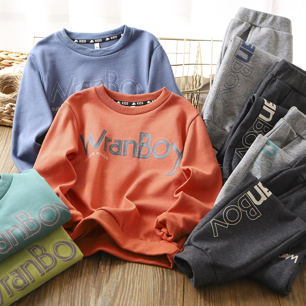 Осенний детский спортивный костюм для мальчиков, футболка для отдыха, лонгслив, эластичные штаны, оверсайз