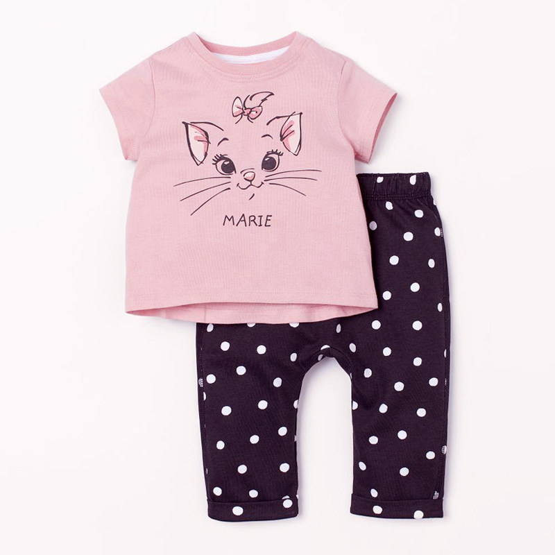 Розовая хлопковая футболка, леггинсы, летний комплект