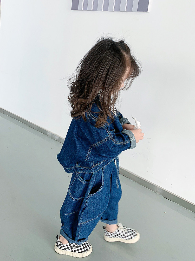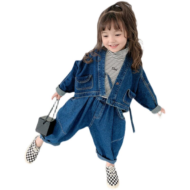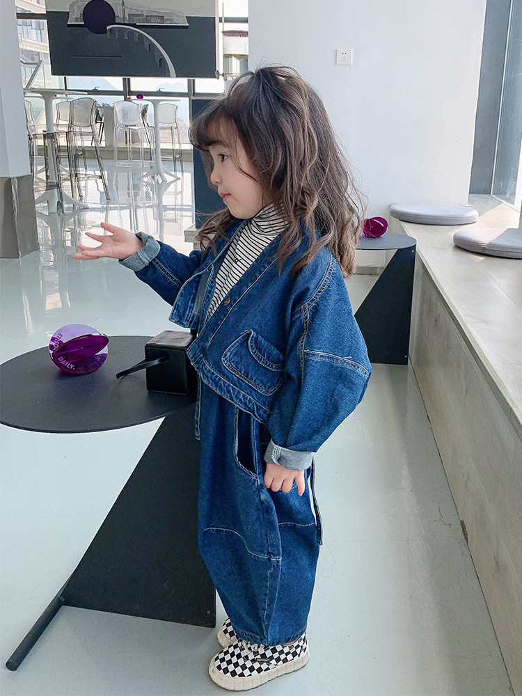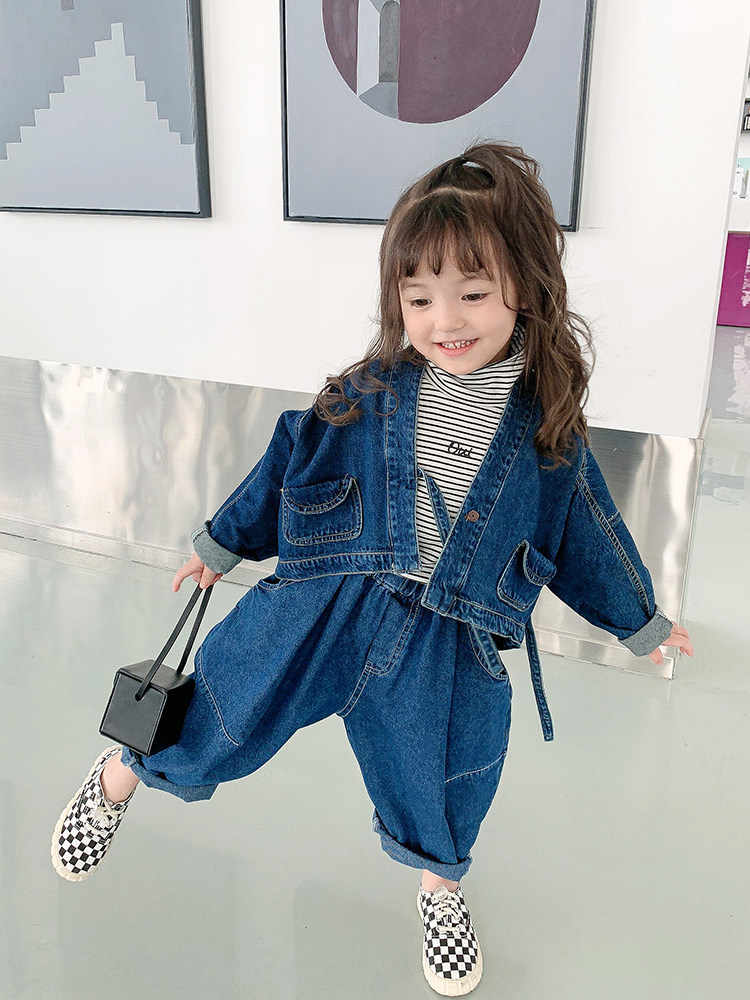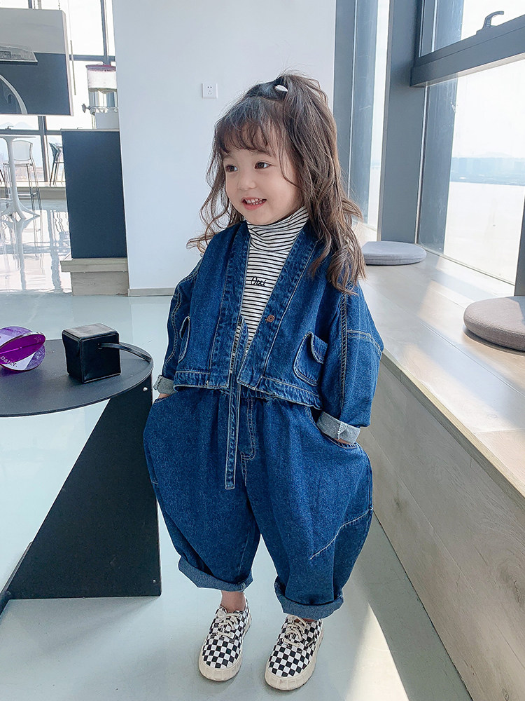 Джинсовый весенний детский демисезонный комплект, популярно в интернете, коллекция 2021, в корейском стиле, в западном стиле