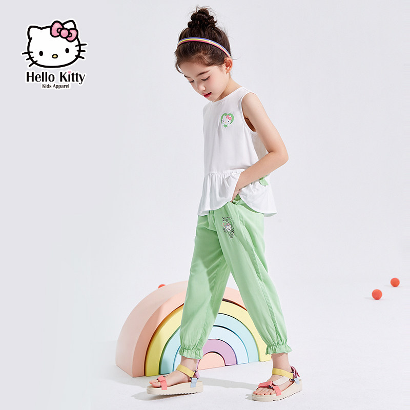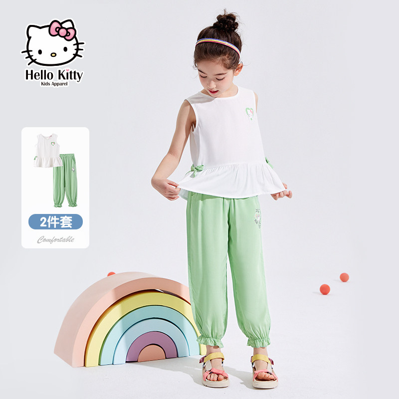 Hello Kitty, летний милый комплект без рукавов, детская одежда, сезон 2021, короткий рукав