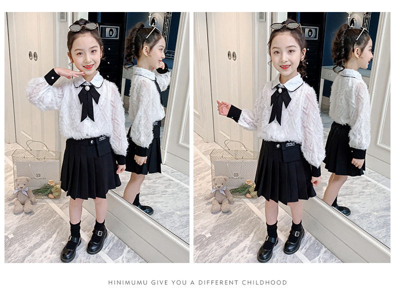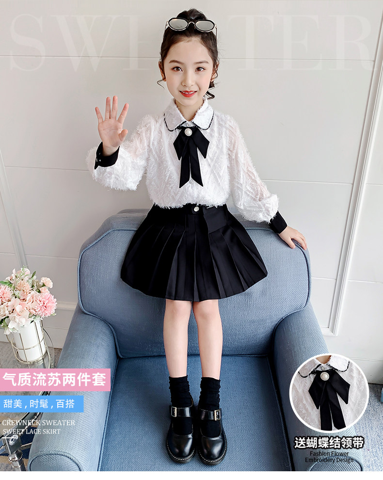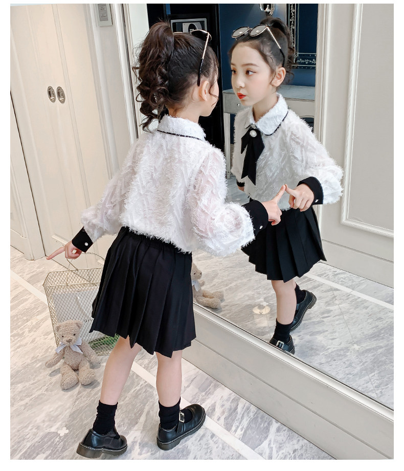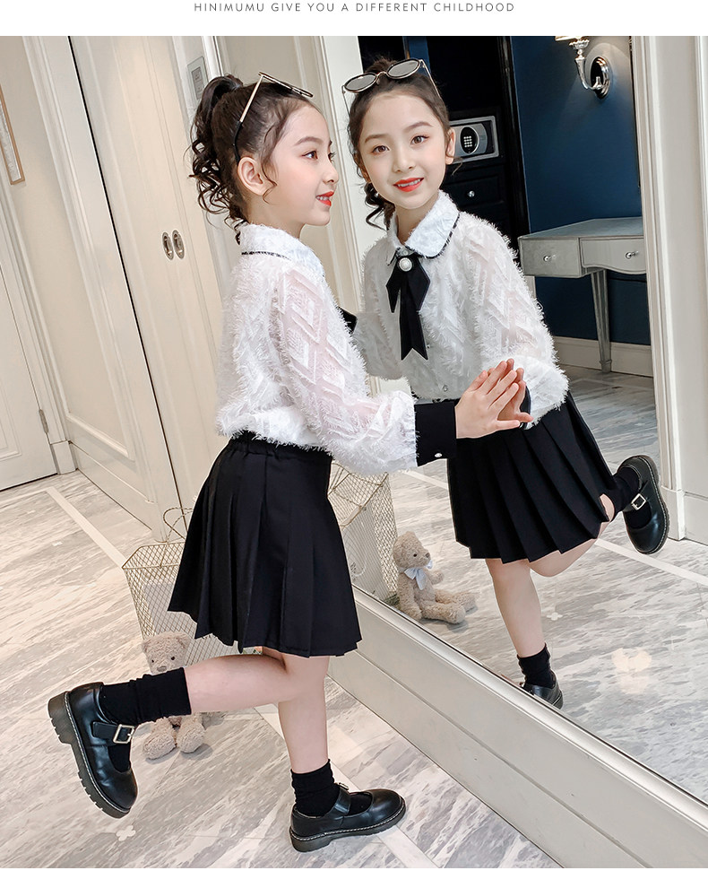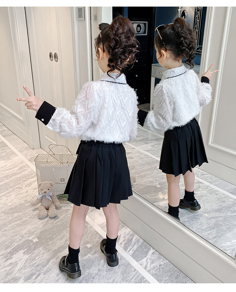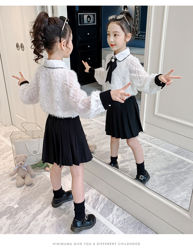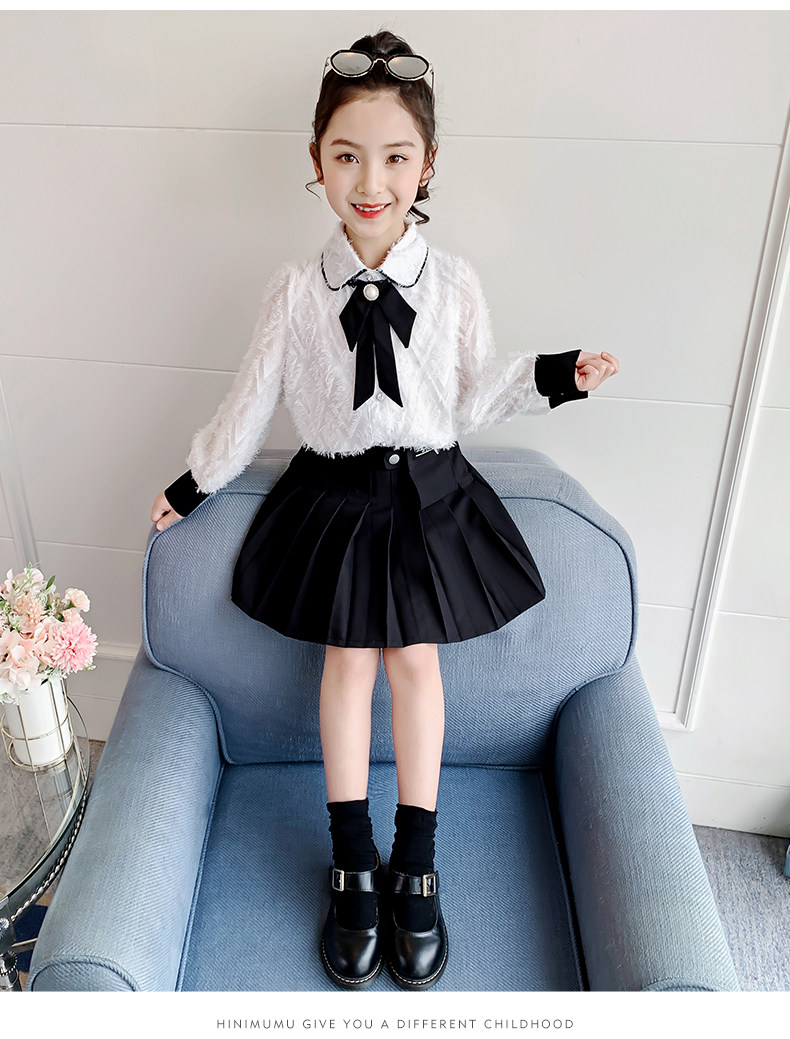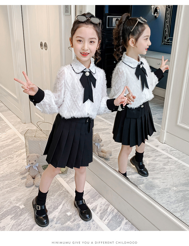 Осенний комплект, детская рубашка, весенняя мини-юбка, коллекция 2021, в западном стиле, в корейском стиле