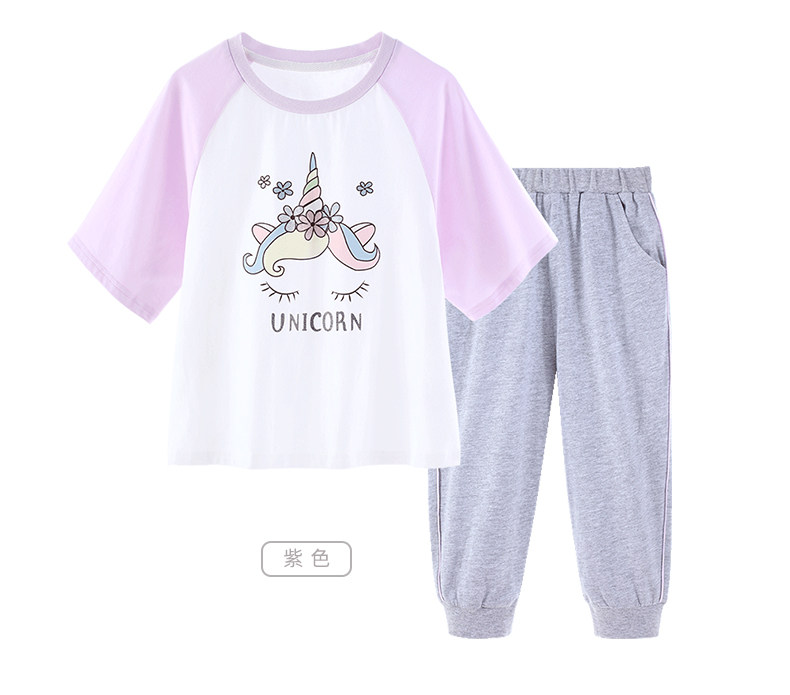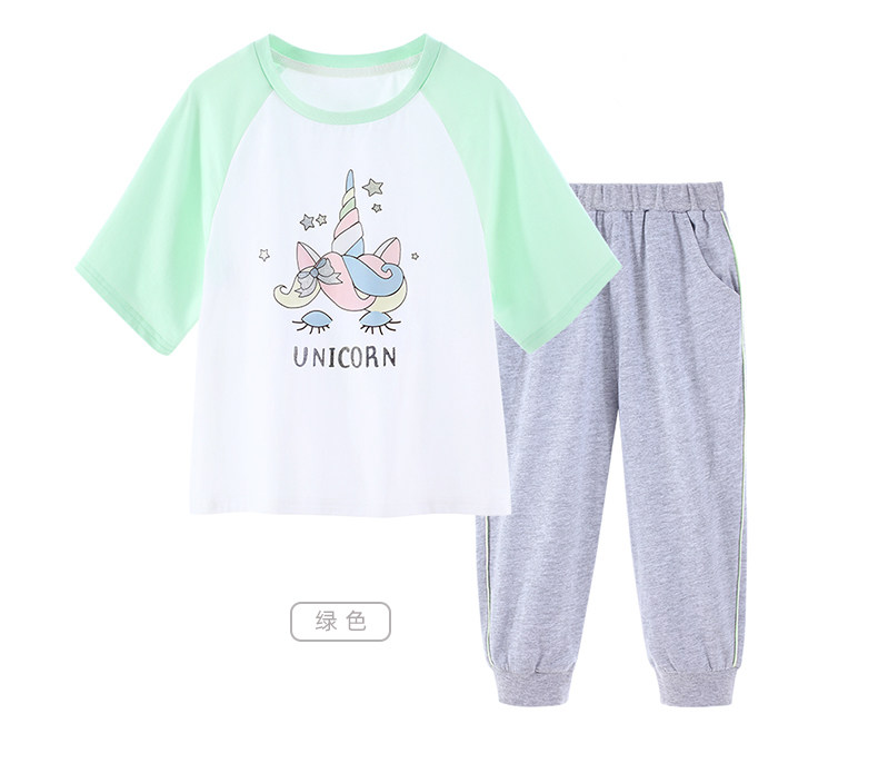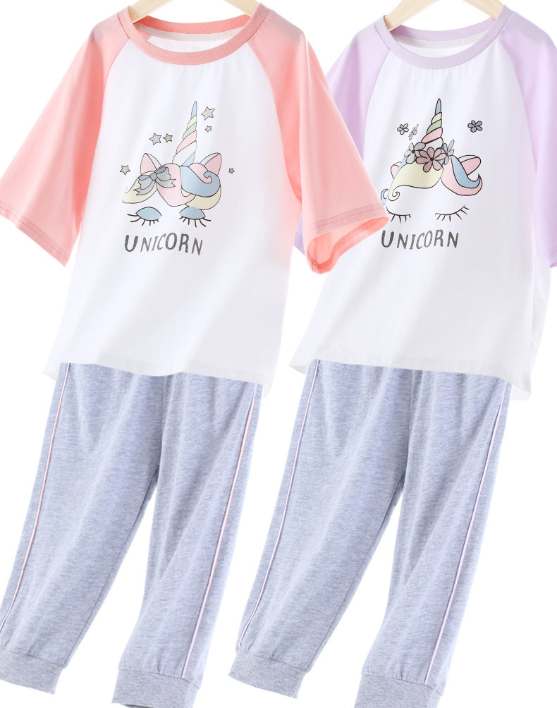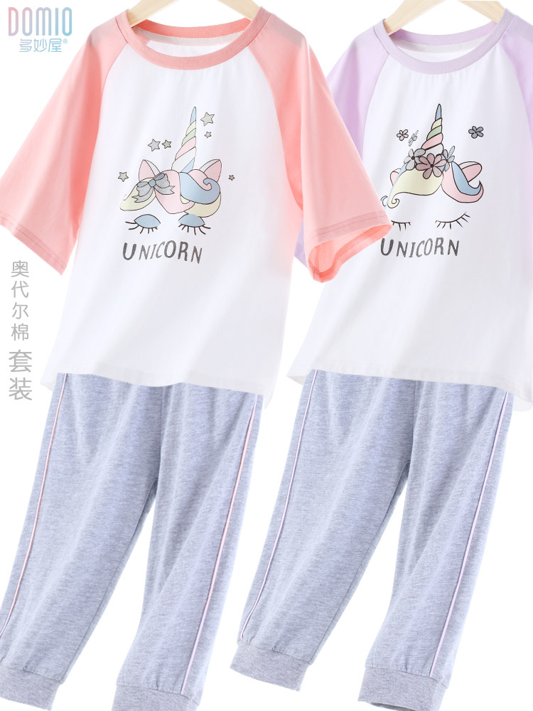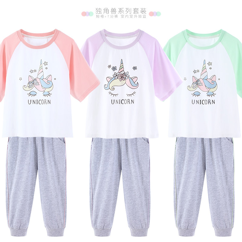Детский комплект, шелковая тонкая футболка с коротким рукавом, спортивные штаны, хлопковая пижама, подходит для подростков