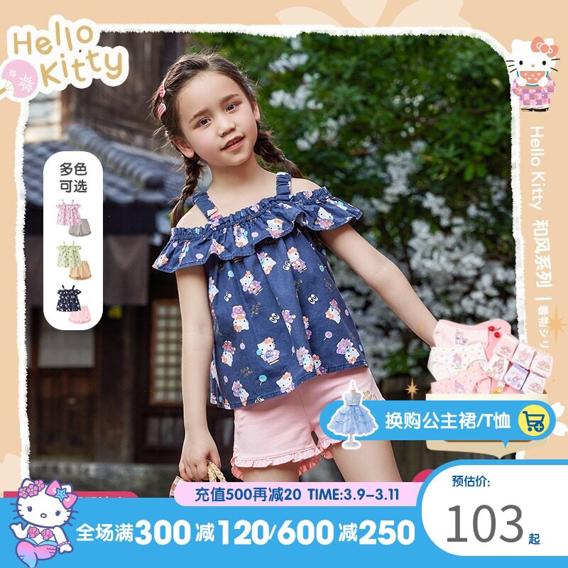 Hello Kitty, летняя милая майка, комплект, детская одежда, подходит для подростков