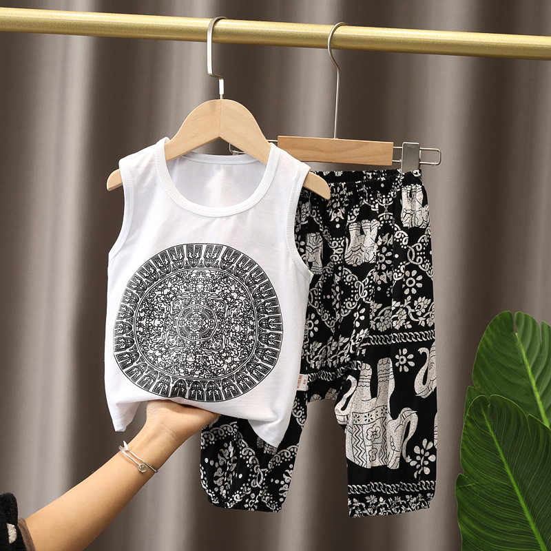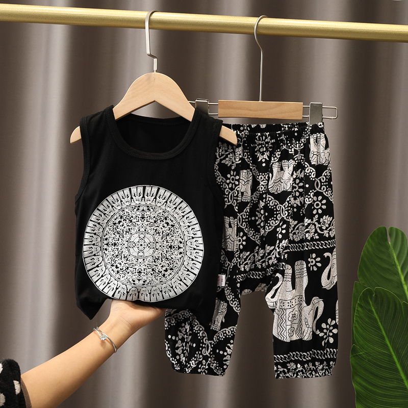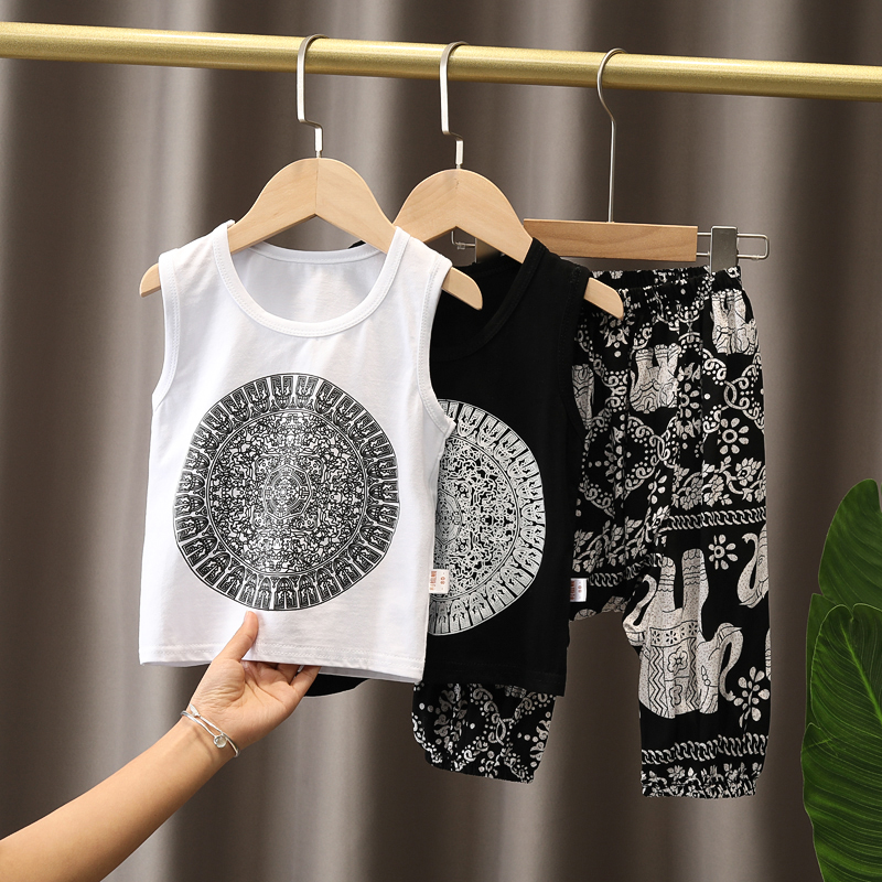 Летняя летняя одежда, жилет без рукавов, нарукавники, комплект для мальчиков, детский тонкий комбинезон, коллекция 2021, в западном стиле