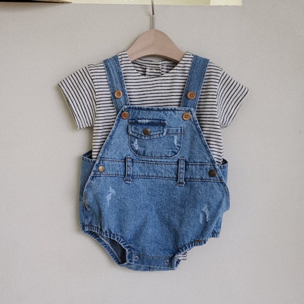 Детская летняя милая джинсовая мягкая лента подходит для мужчин и женщин для девочек, боди, комбинезон, футболка