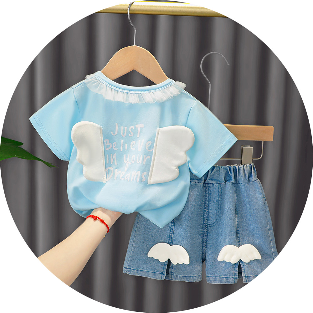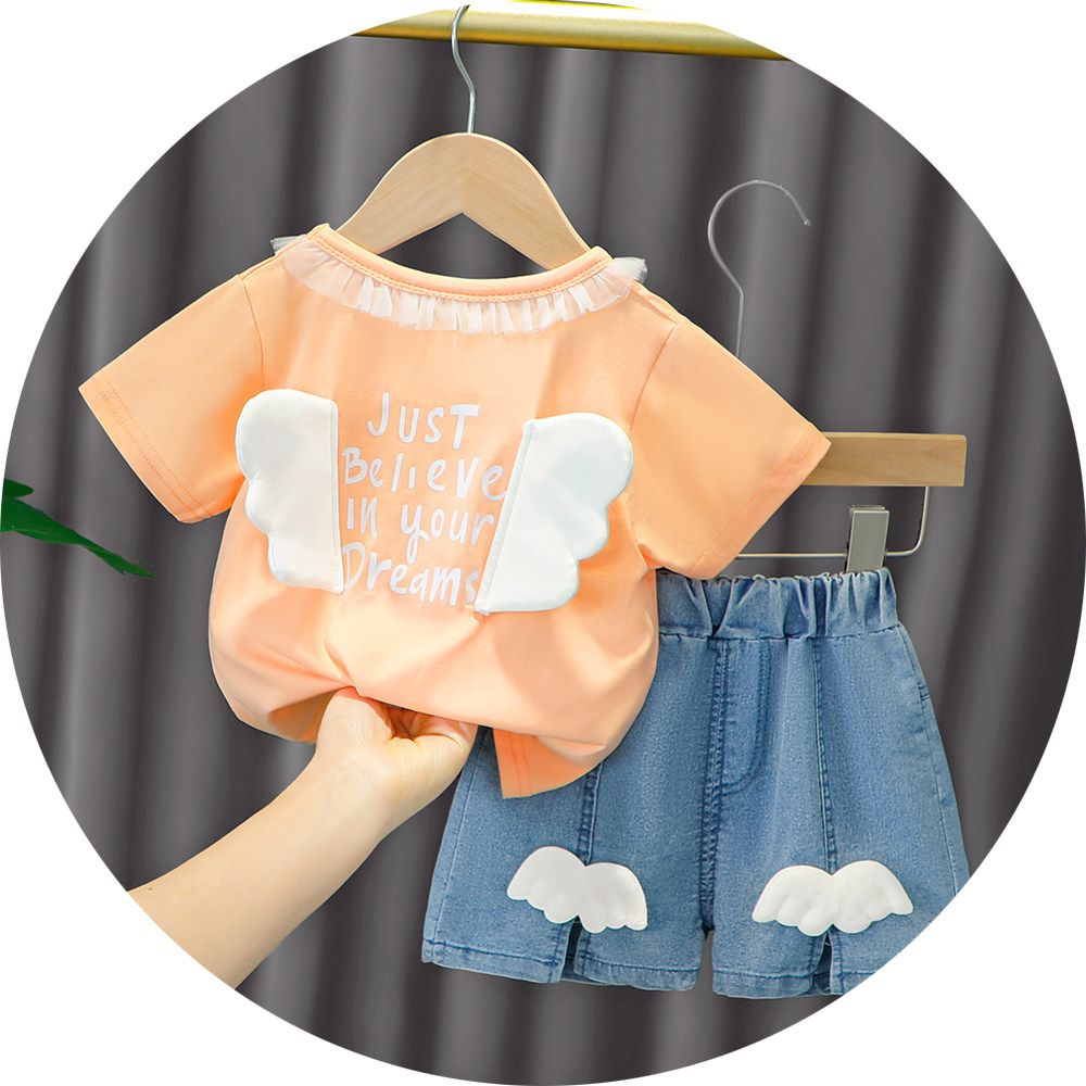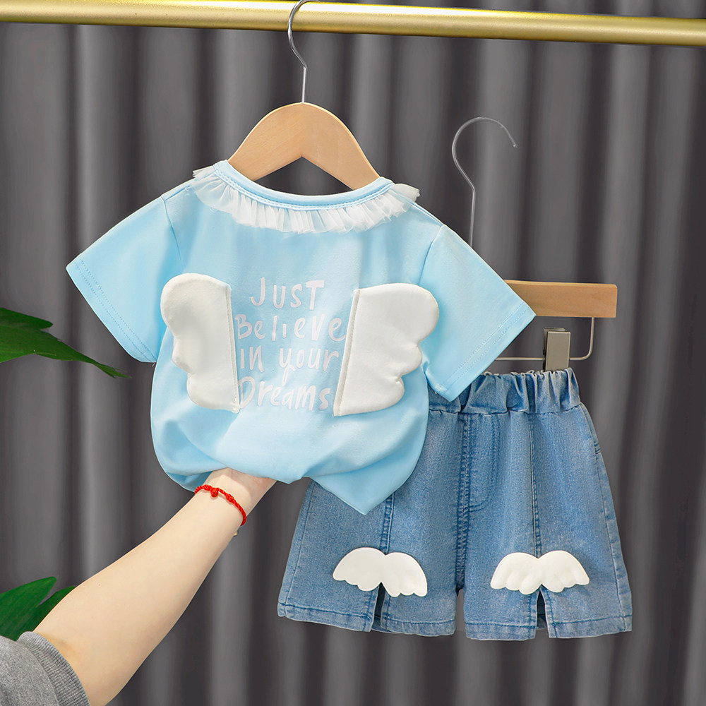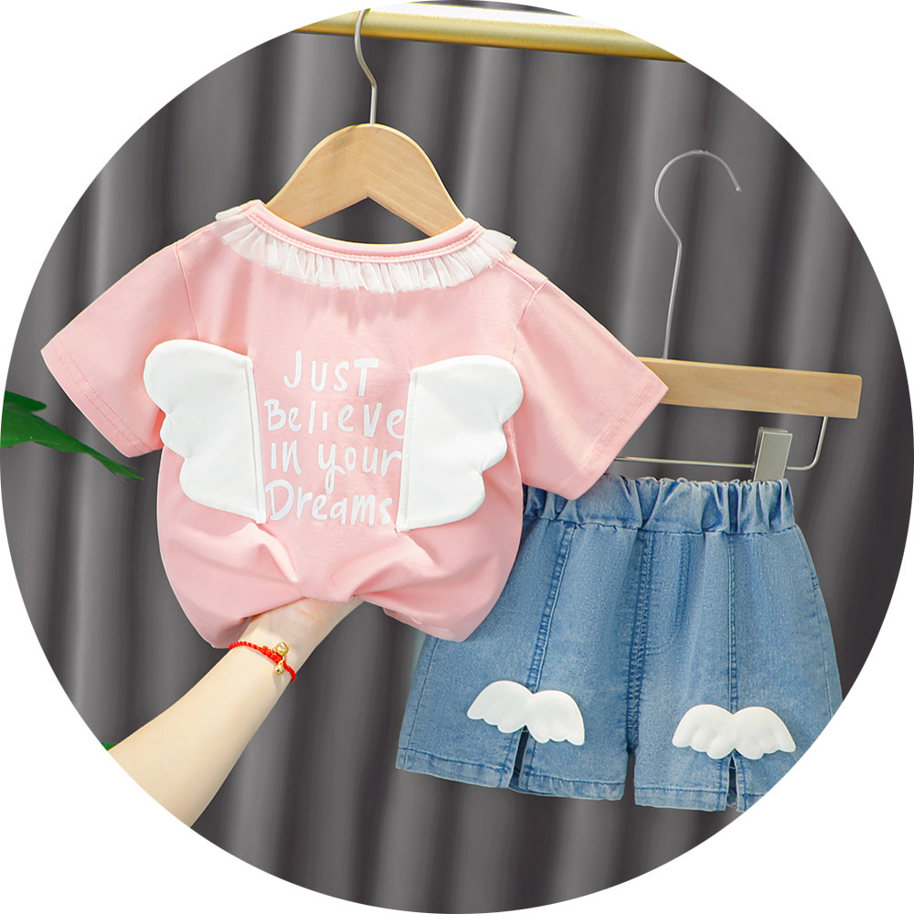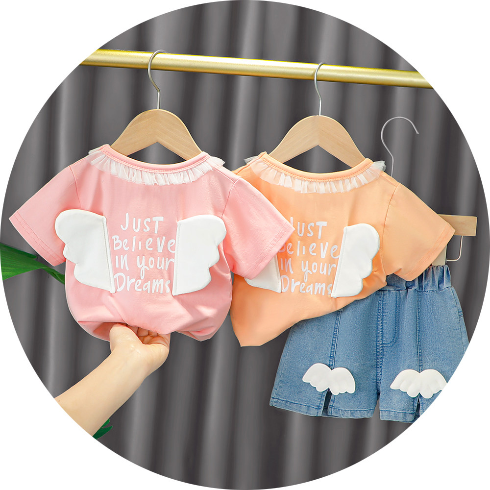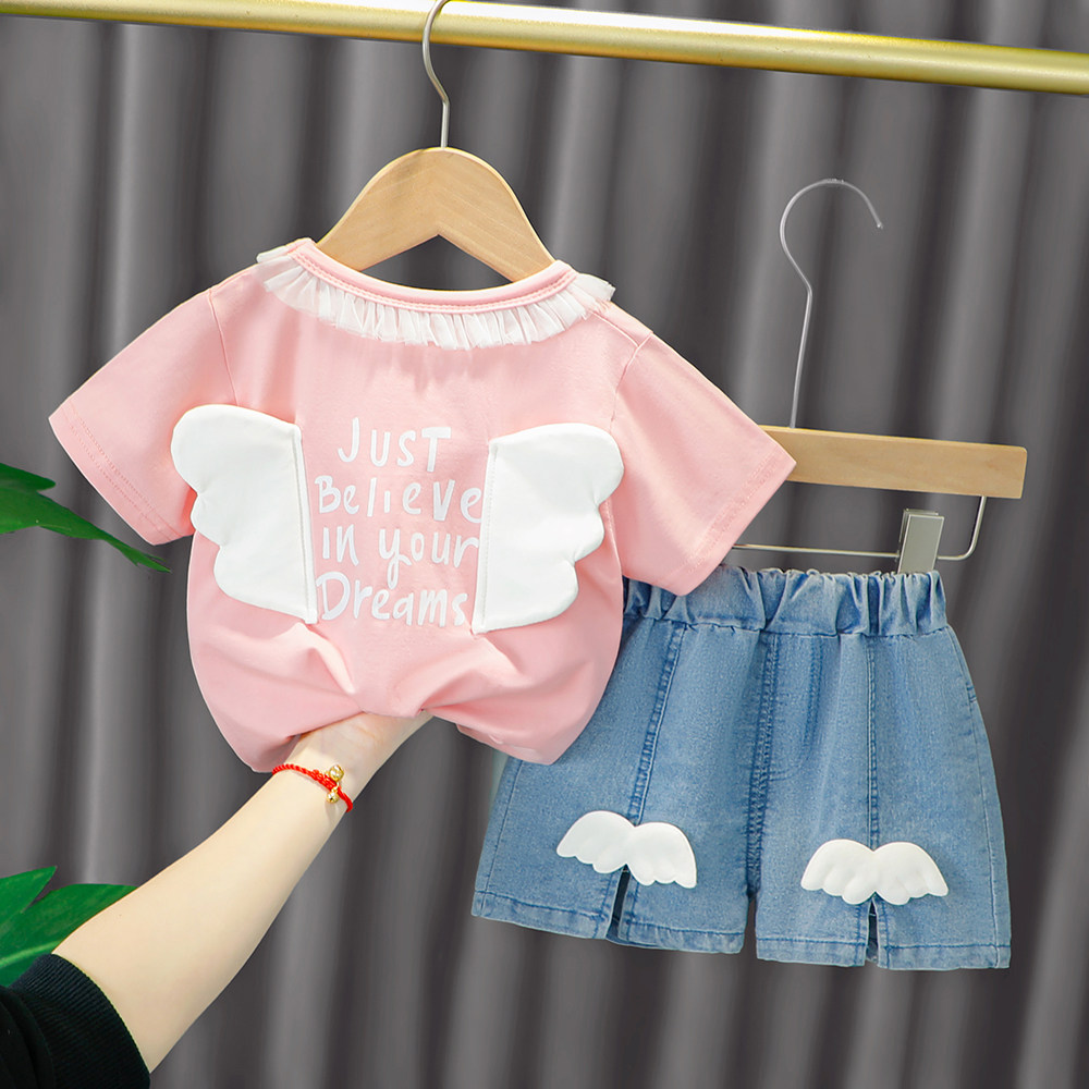 Трендовый летний комплект для девочек, популярно в интернете, в западном стиле, в корейском стиле, 1-2-4 лет, короткий рукав, детская одежда