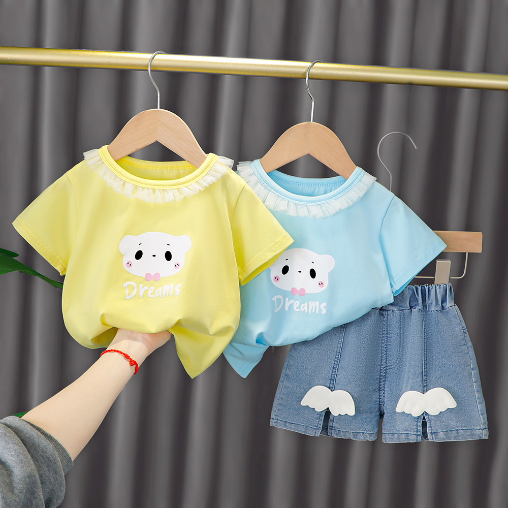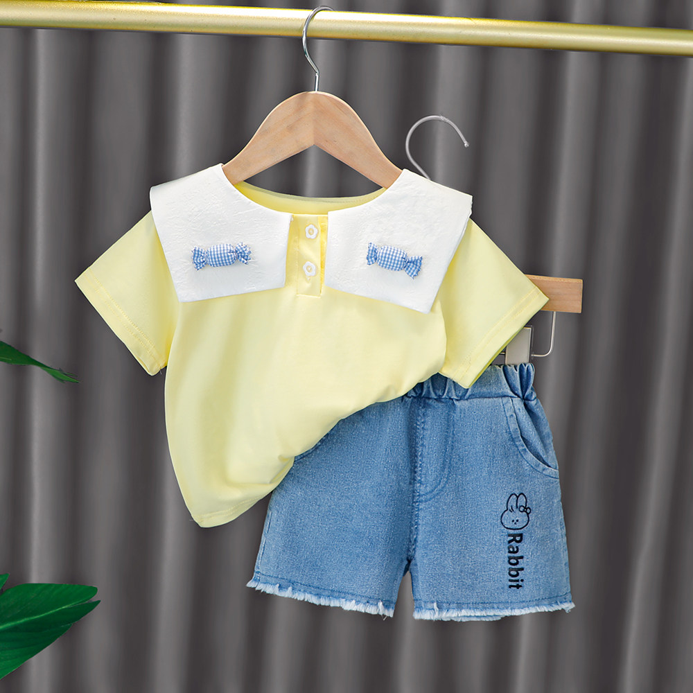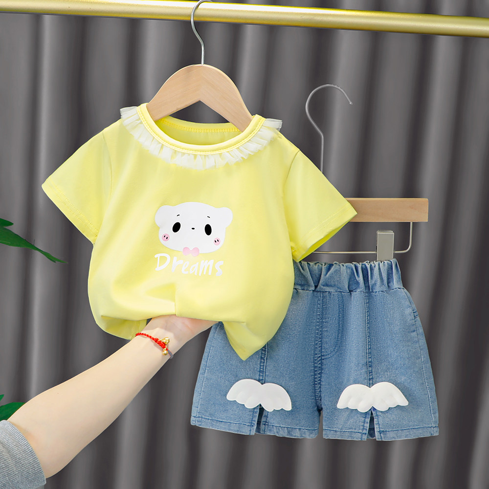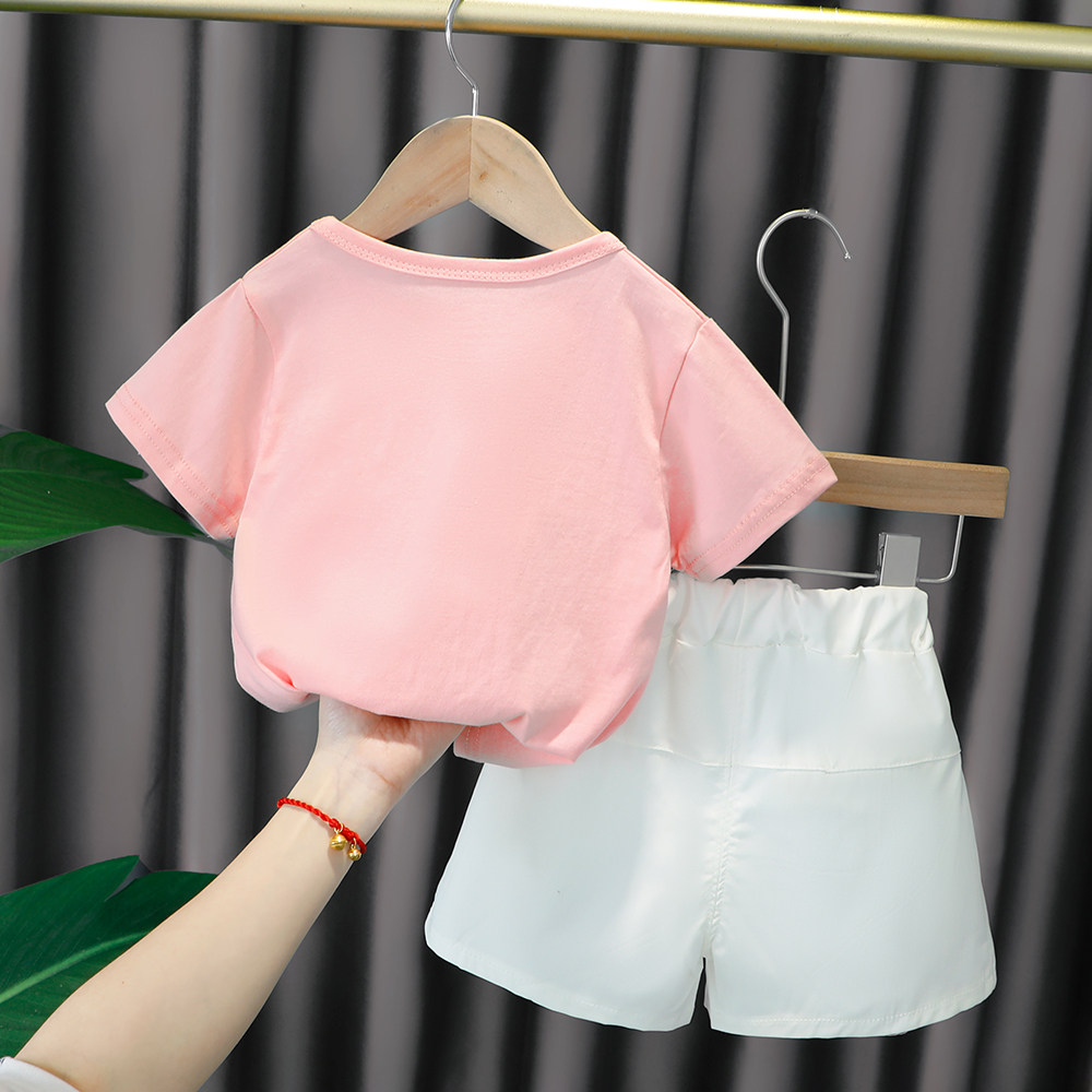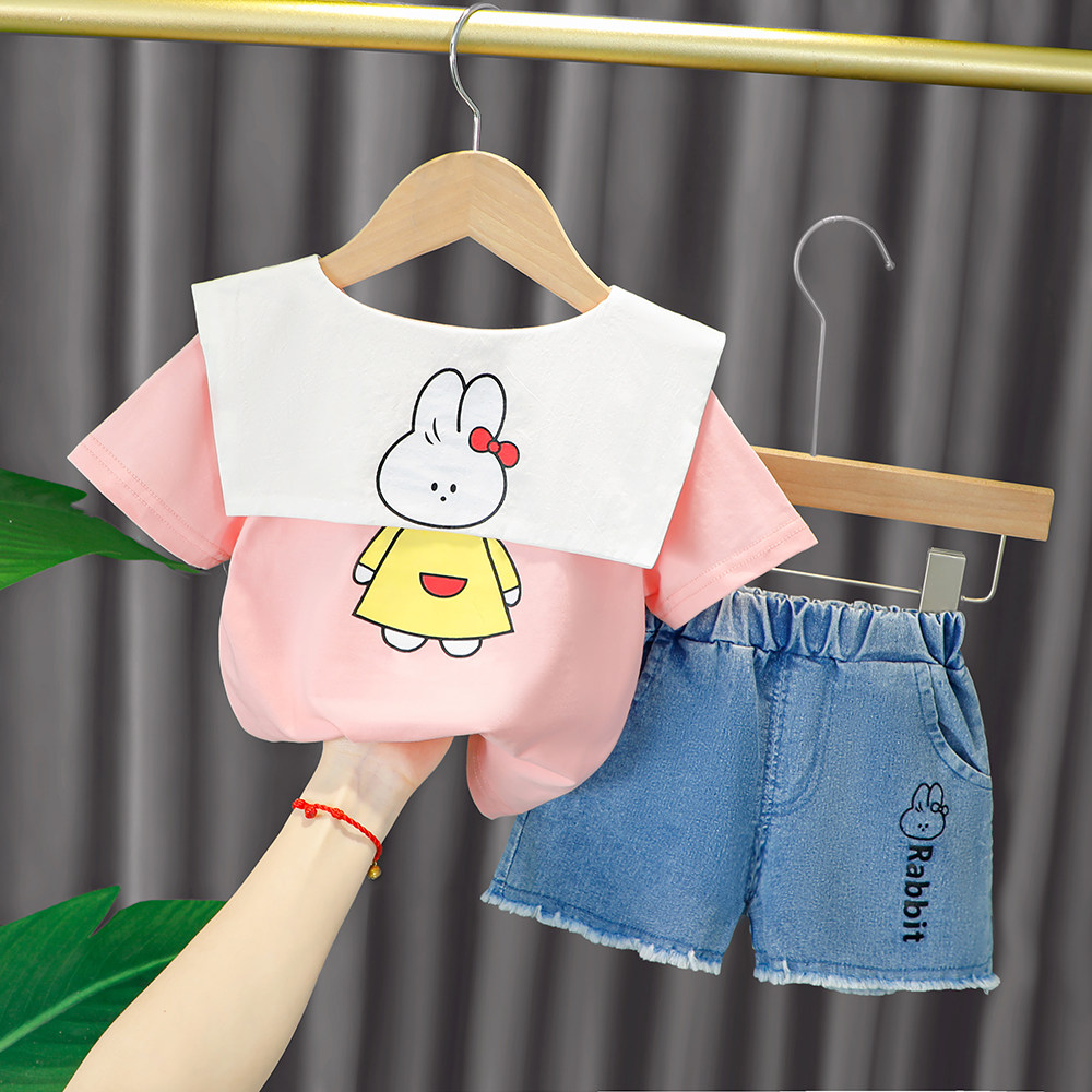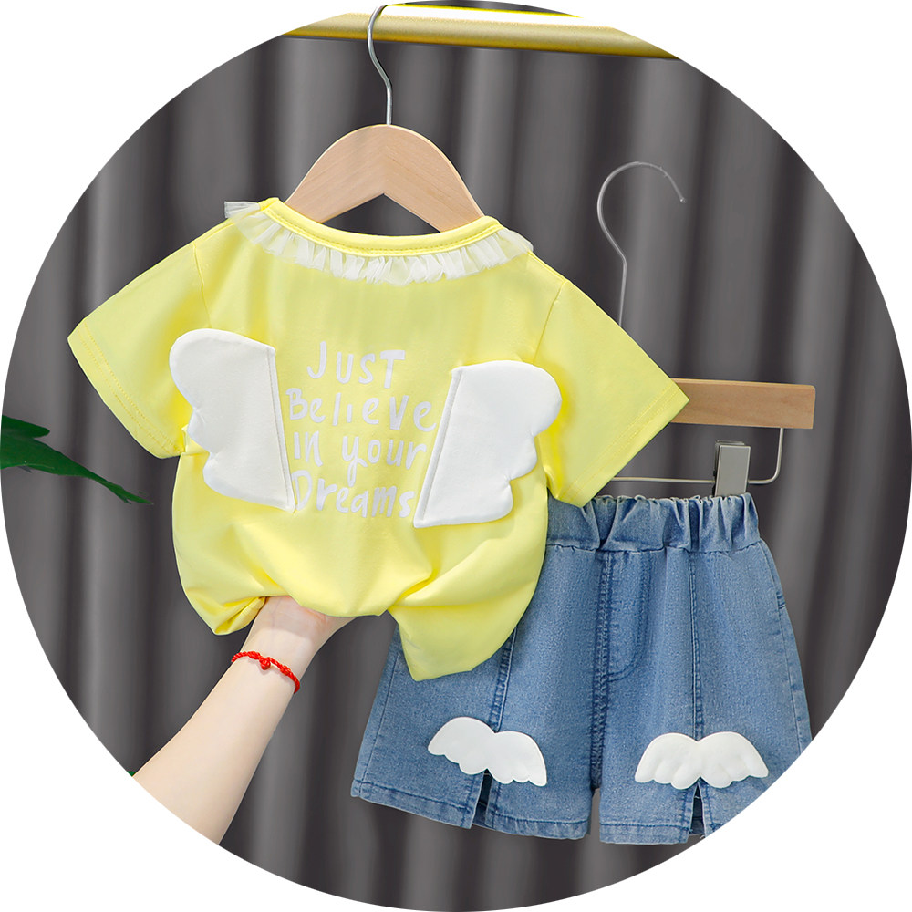 Трендовый летний комплект для девочек, популярно в интернете, в западном стиле, в корейском стиле, 1-2-4 лет, короткий рукав, детская одежда