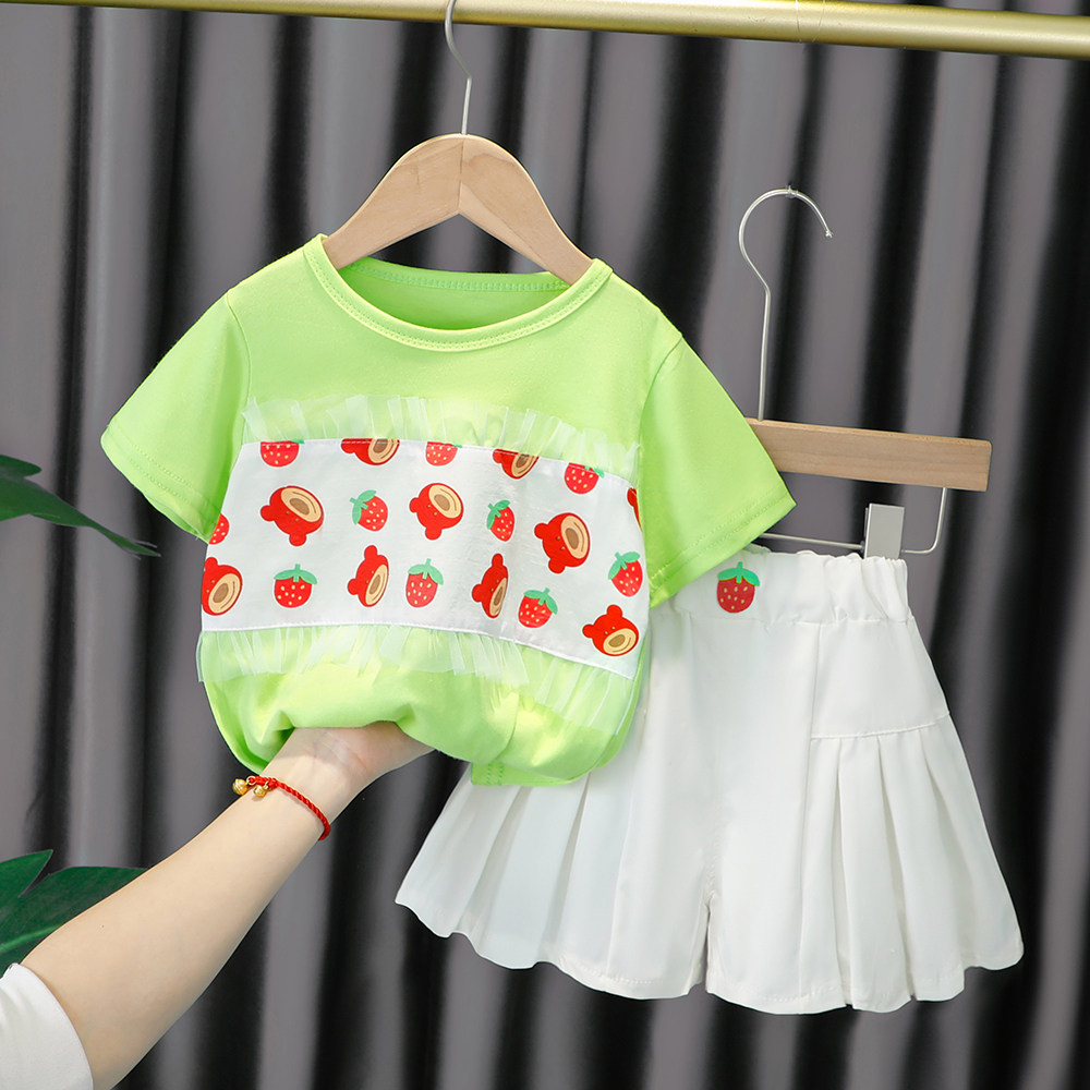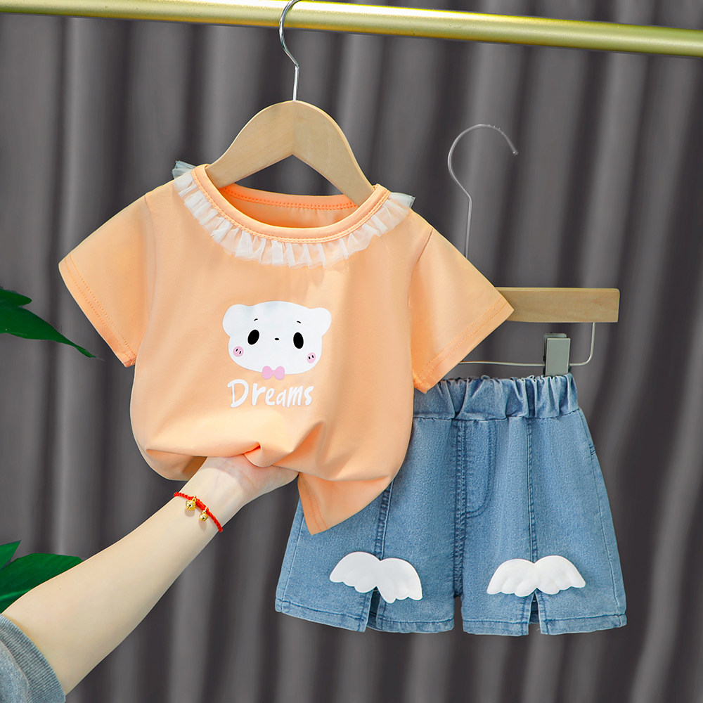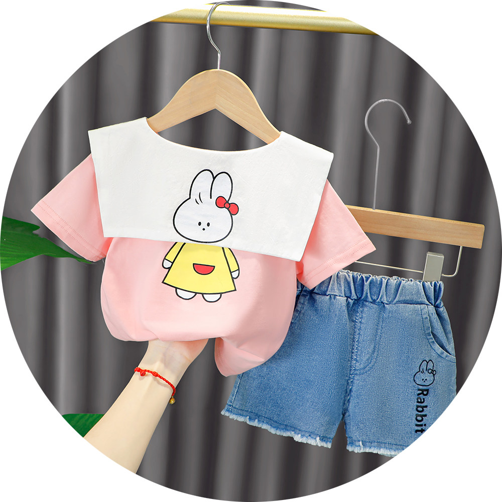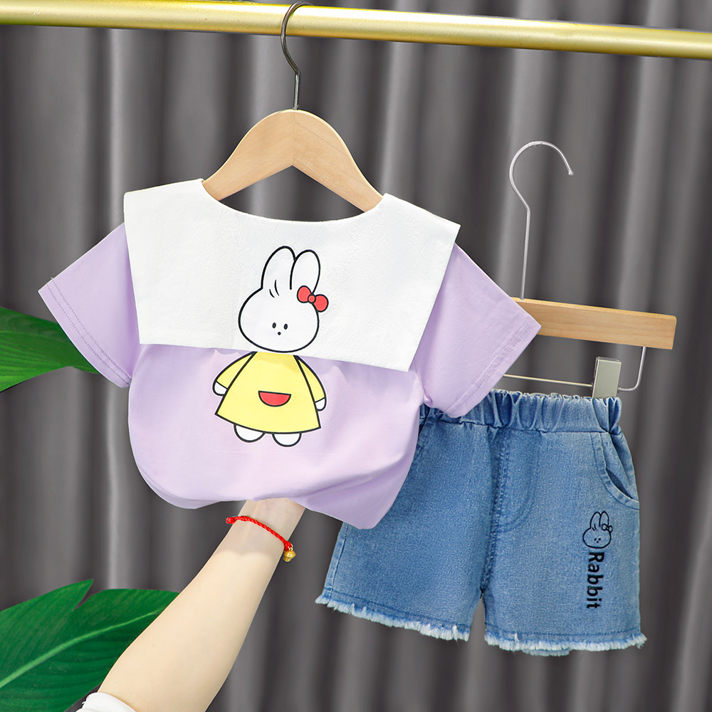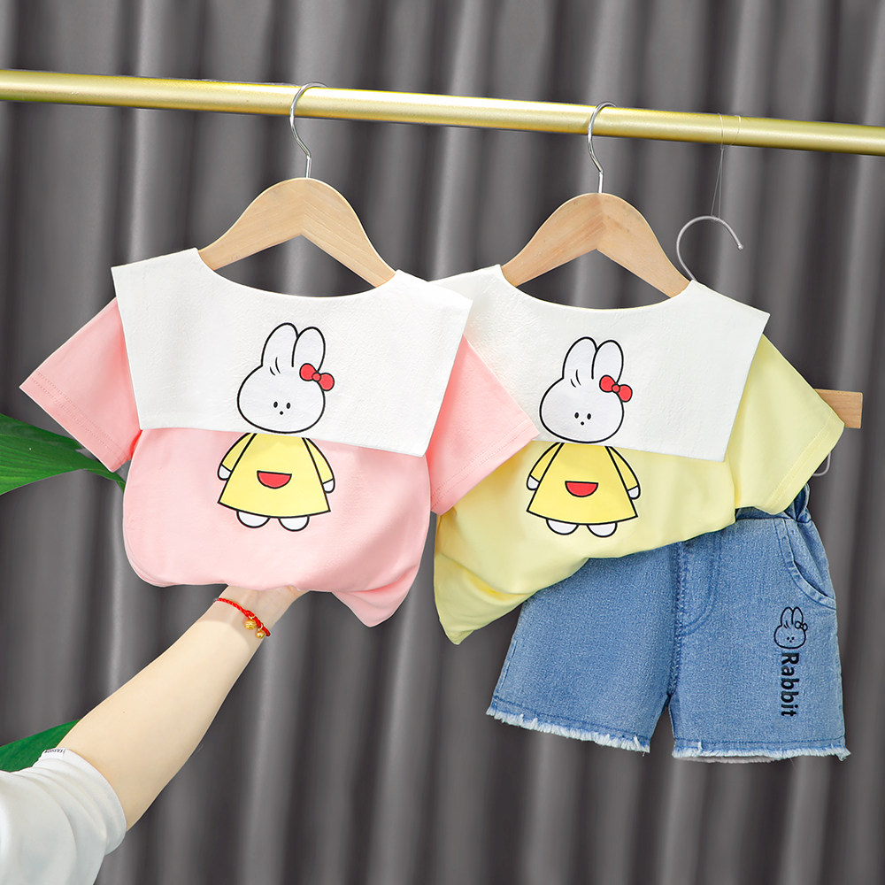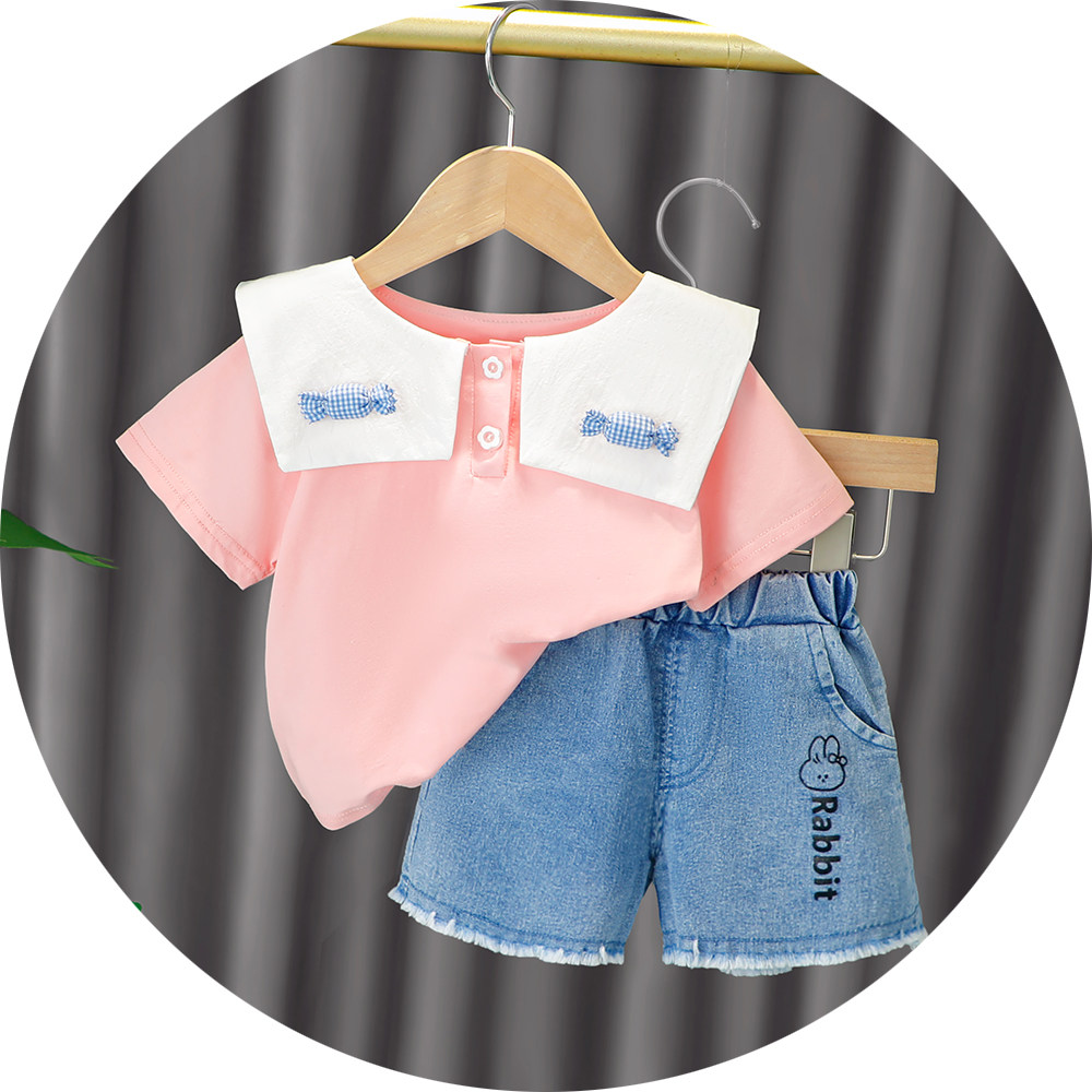 Трендовый летний комплект для девочек, популярно в интернете, в западном стиле, в корейском стиле, 1-2-4 лет, короткий рукав, детская одежда