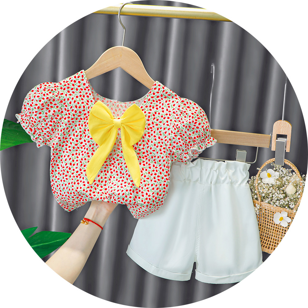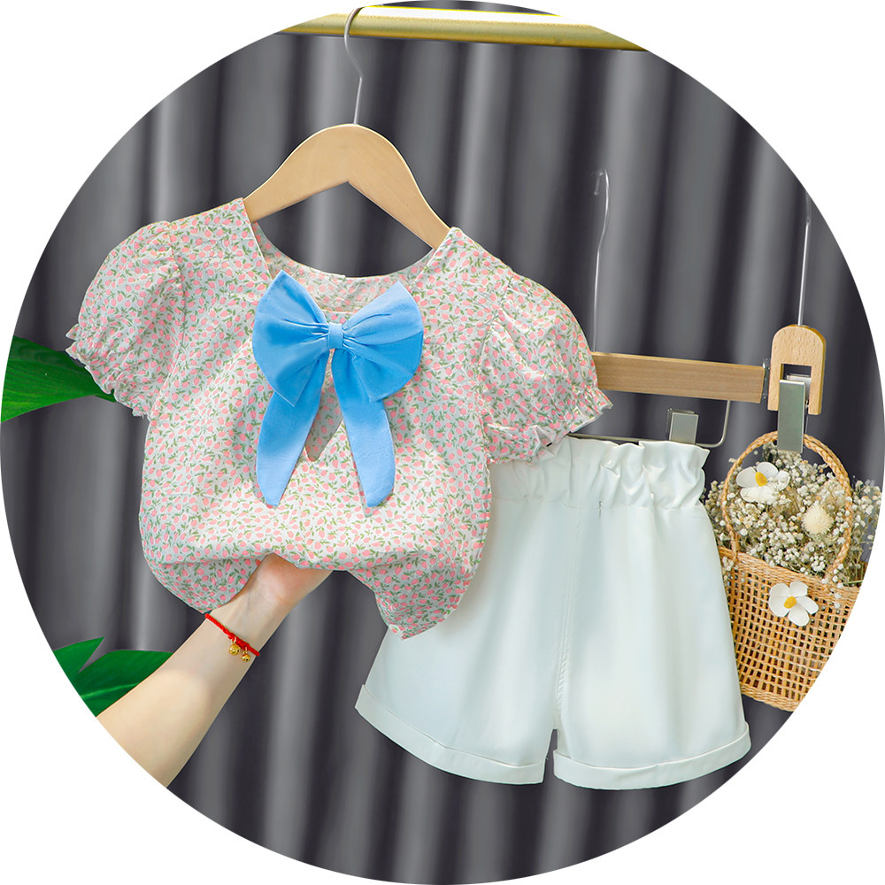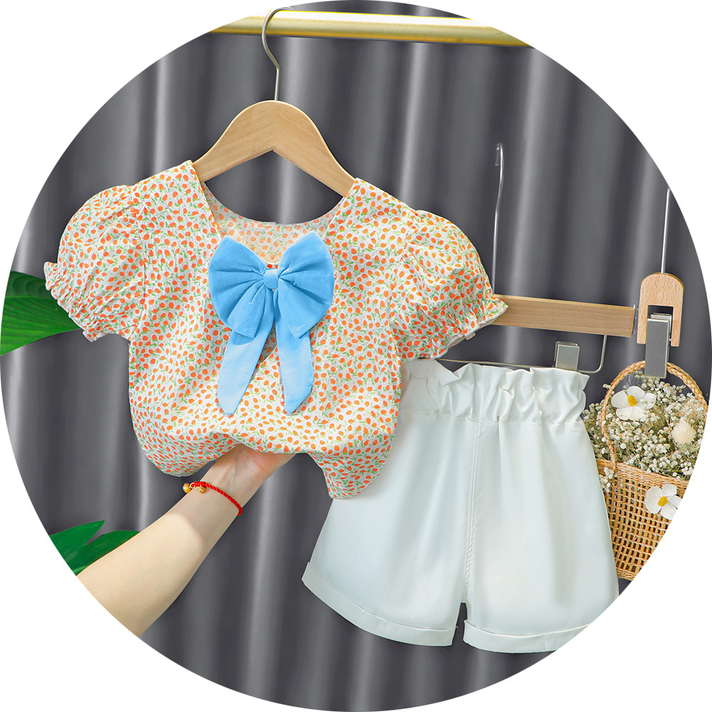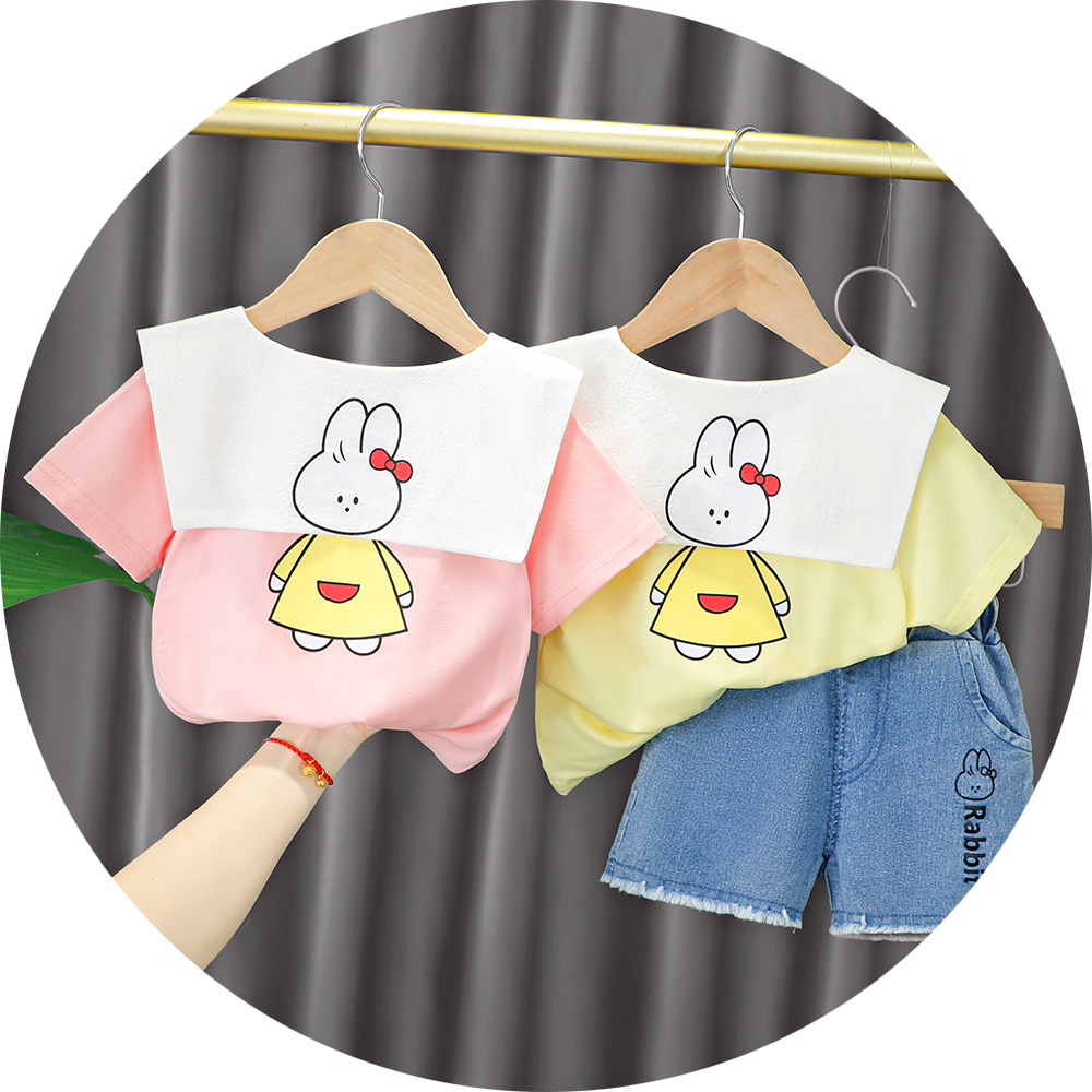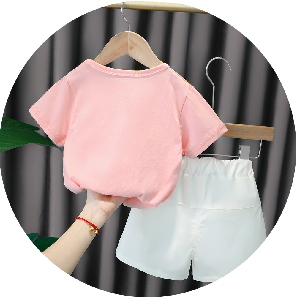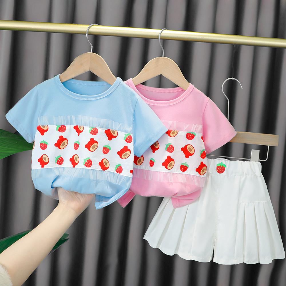 Трендовый летний комплект для девочек, популярно в интернете, в западном стиле, в корейском стиле, 1-2-4 лет, короткий рукав, детская одежда
