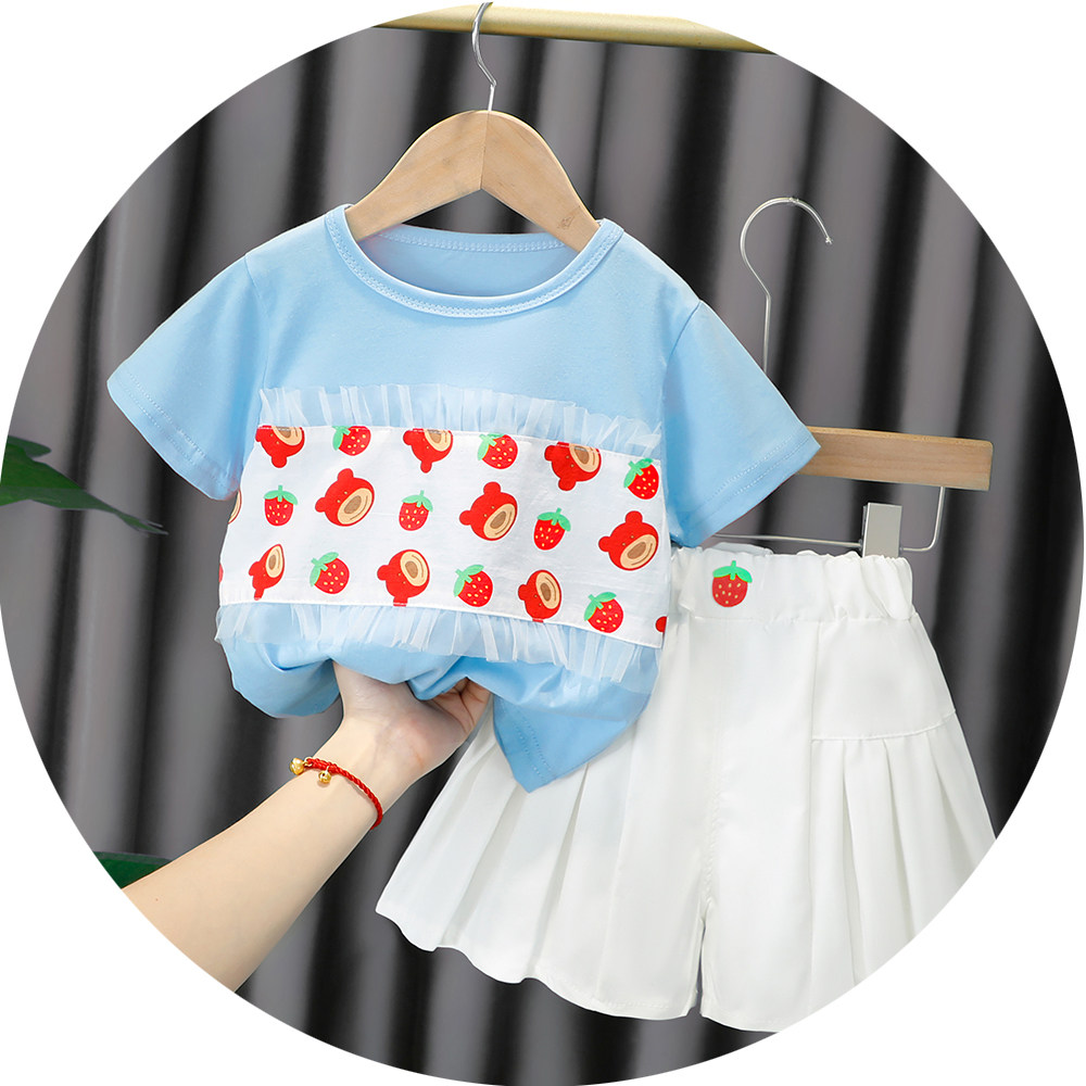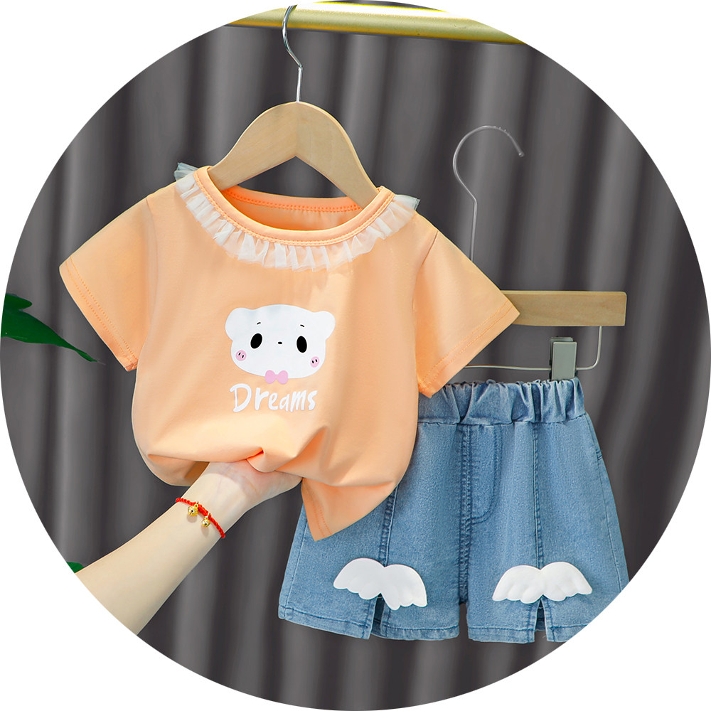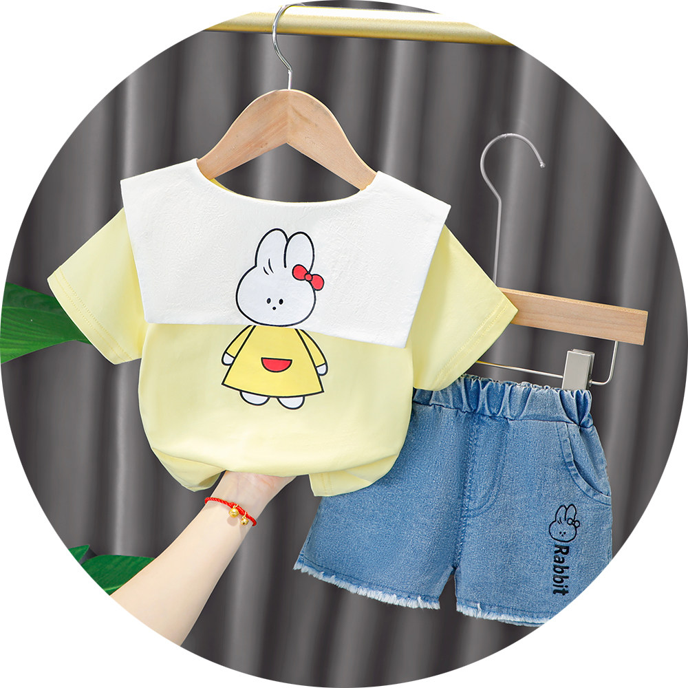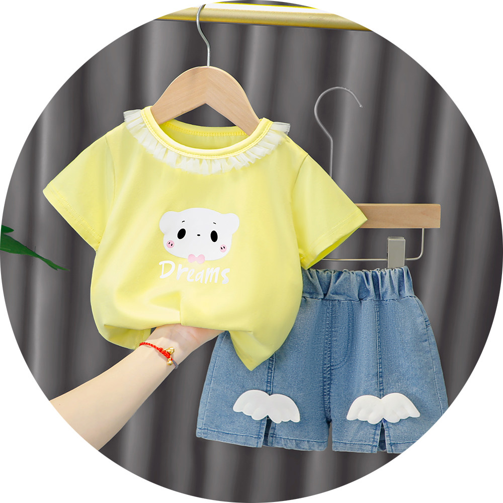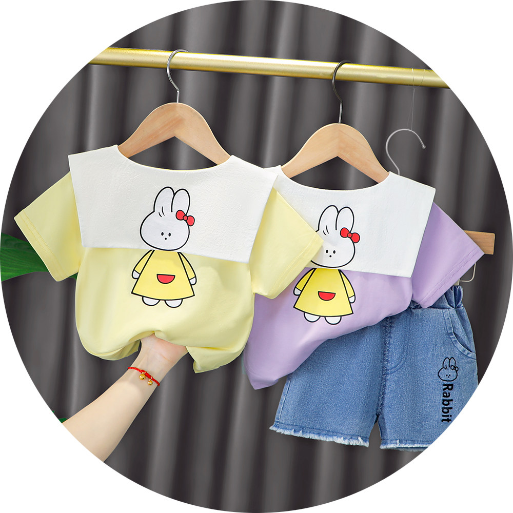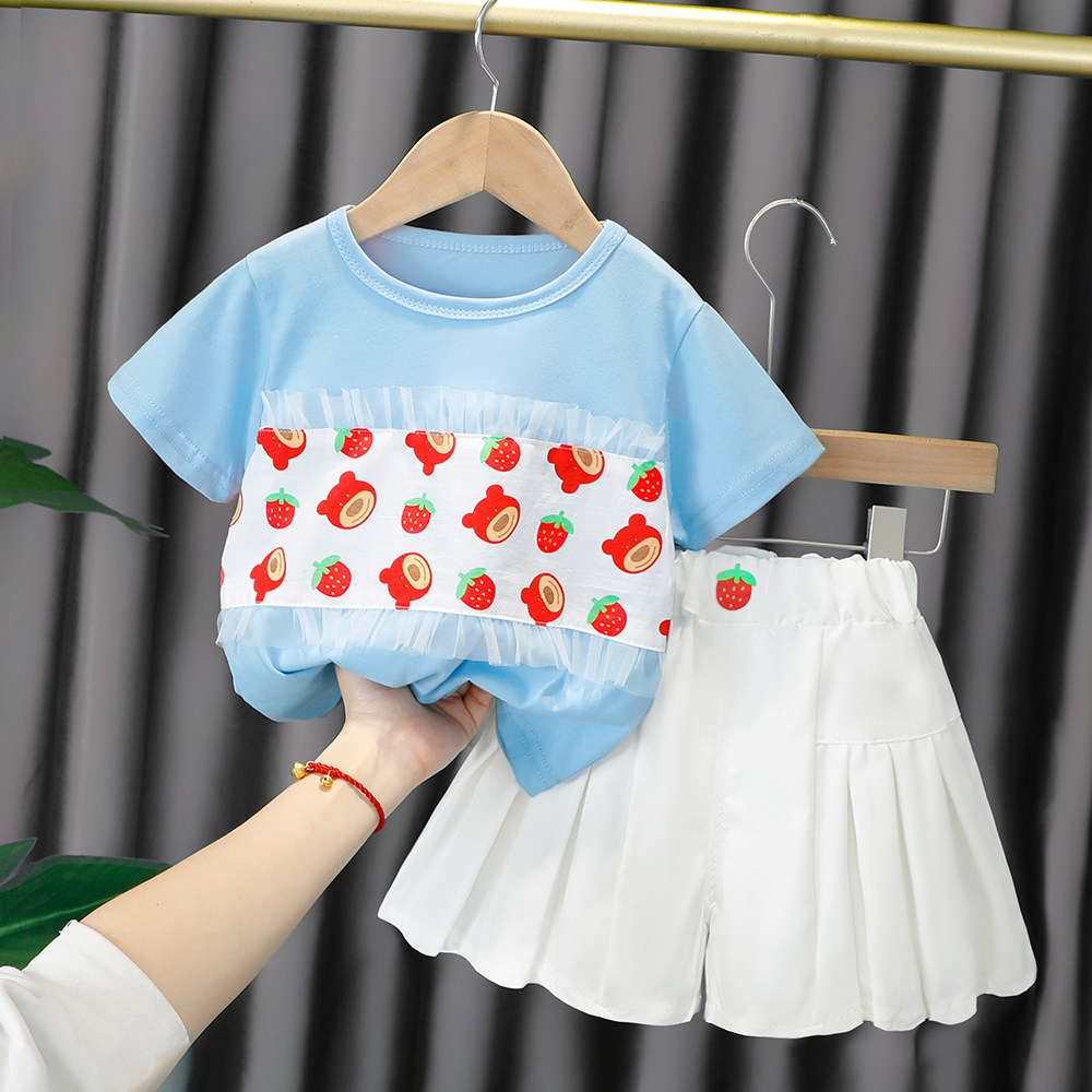 Трендовый летний комплект для девочек, популярно в интернете, в западном стиле, в корейском стиле, 1-2-4 лет, короткий рукав, детская одежда