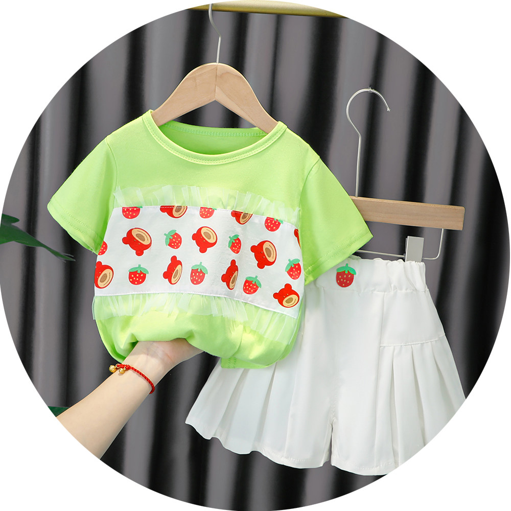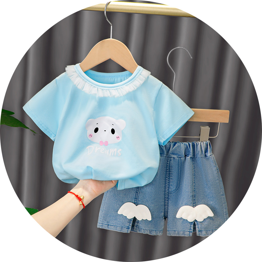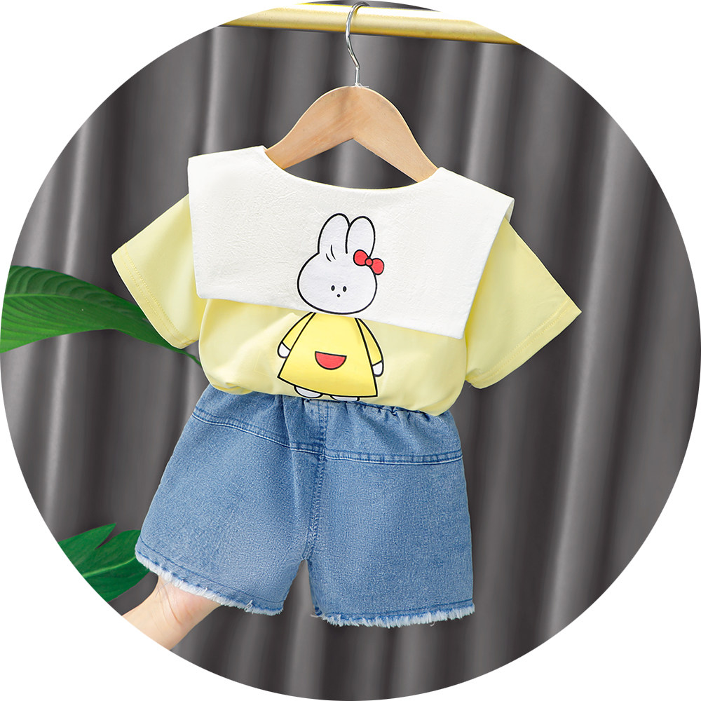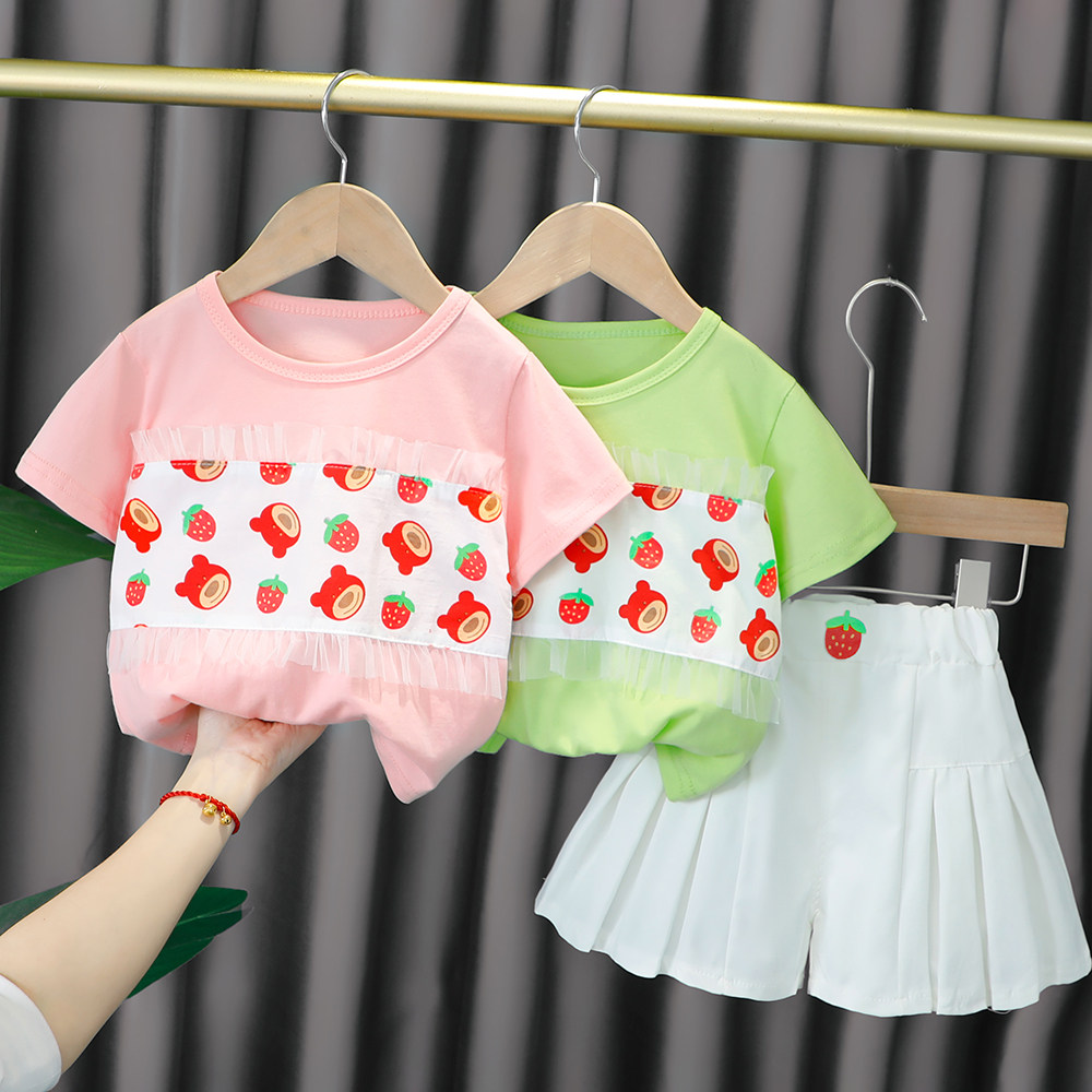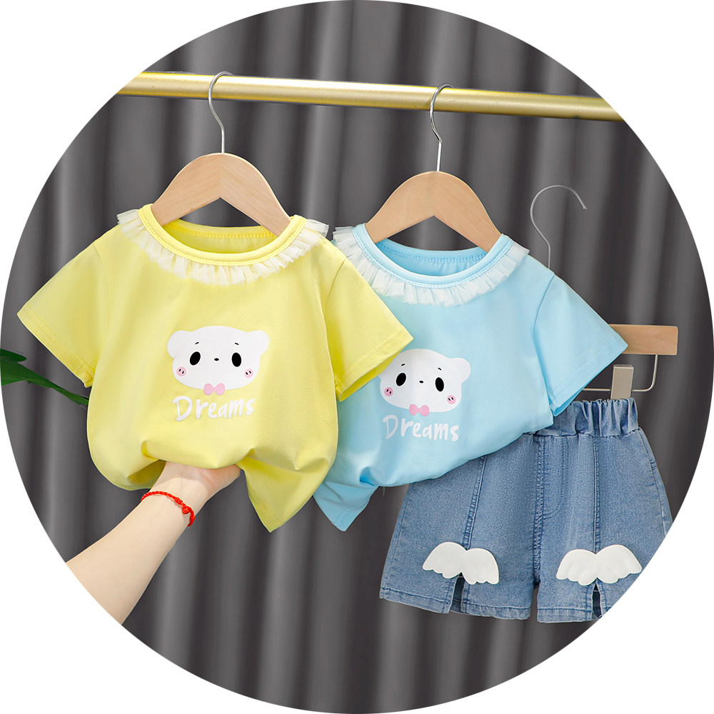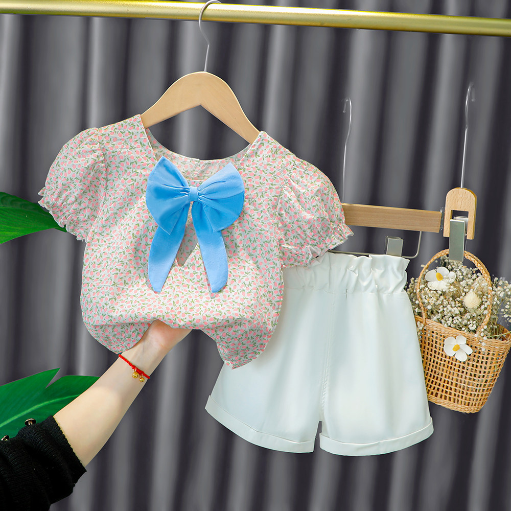 Трендовый летний комплект для девочек, популярно в интернете, в западном стиле, в корейском стиле, 1-2-4 лет, короткий рукав, детская одежда