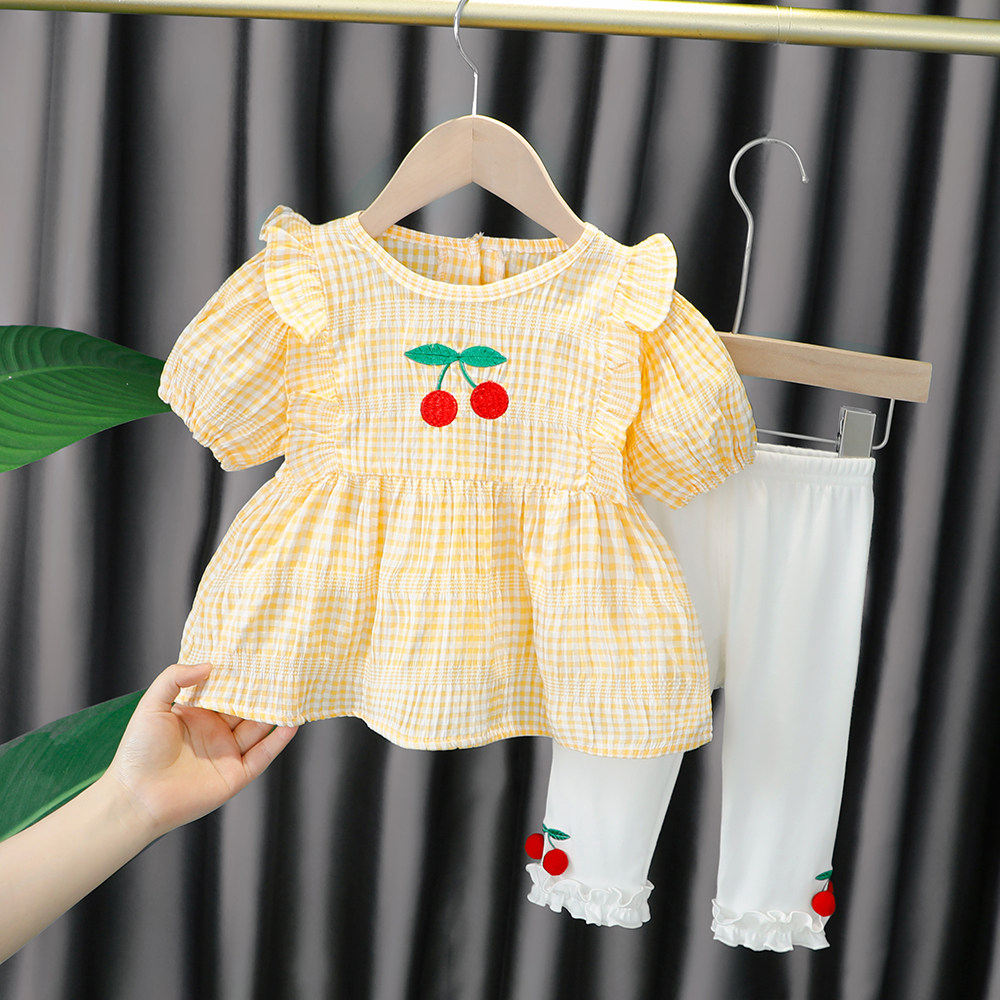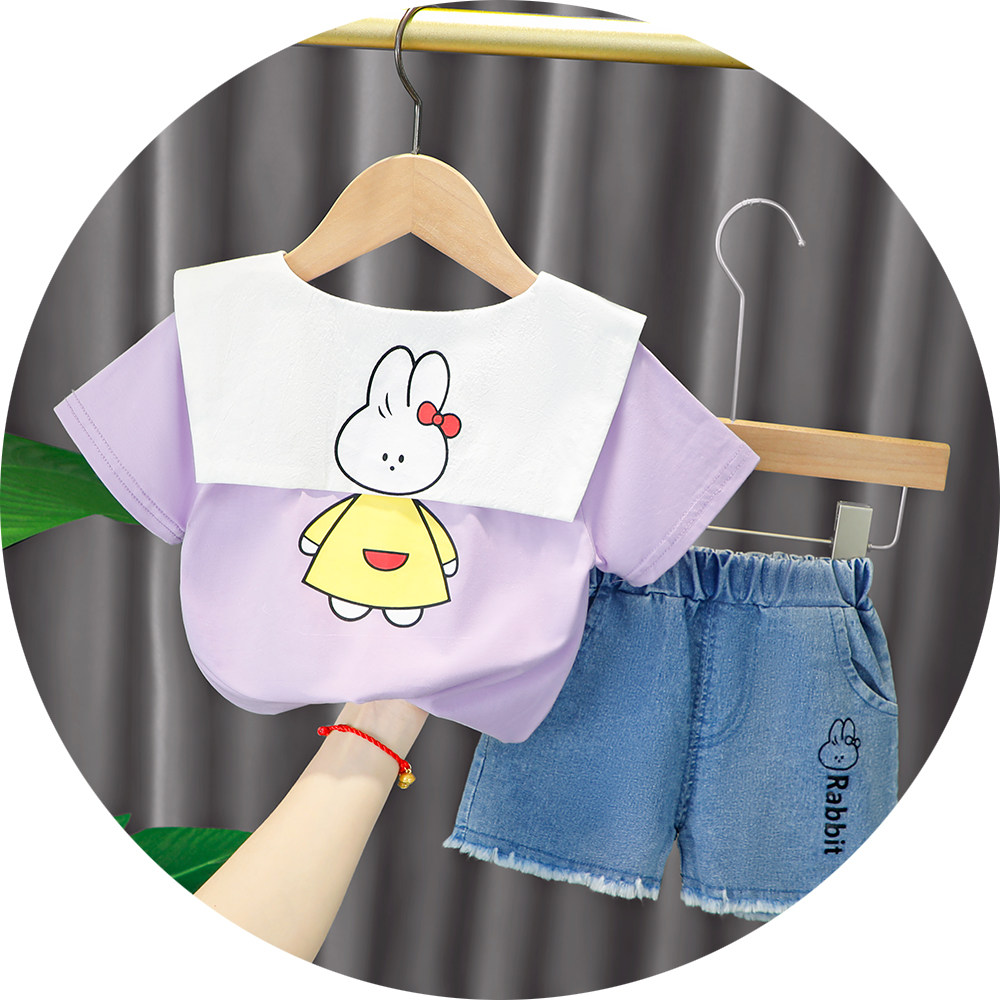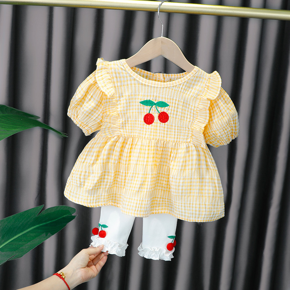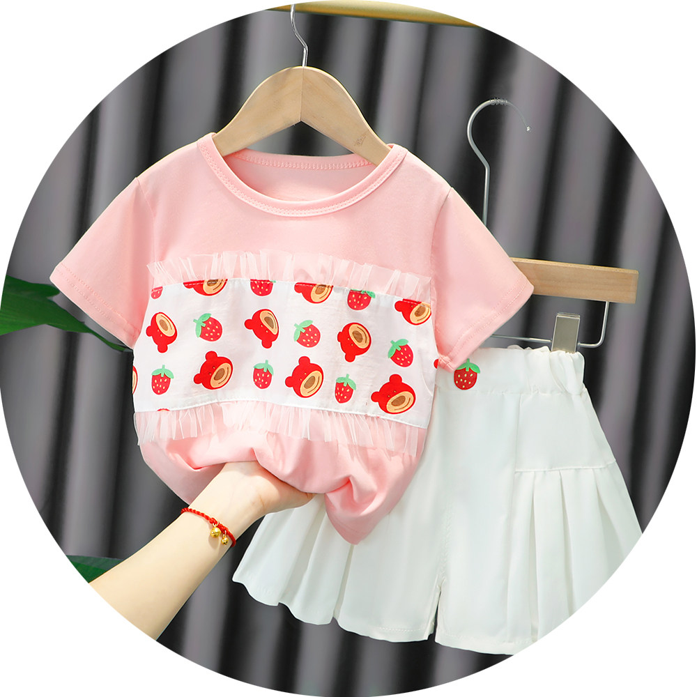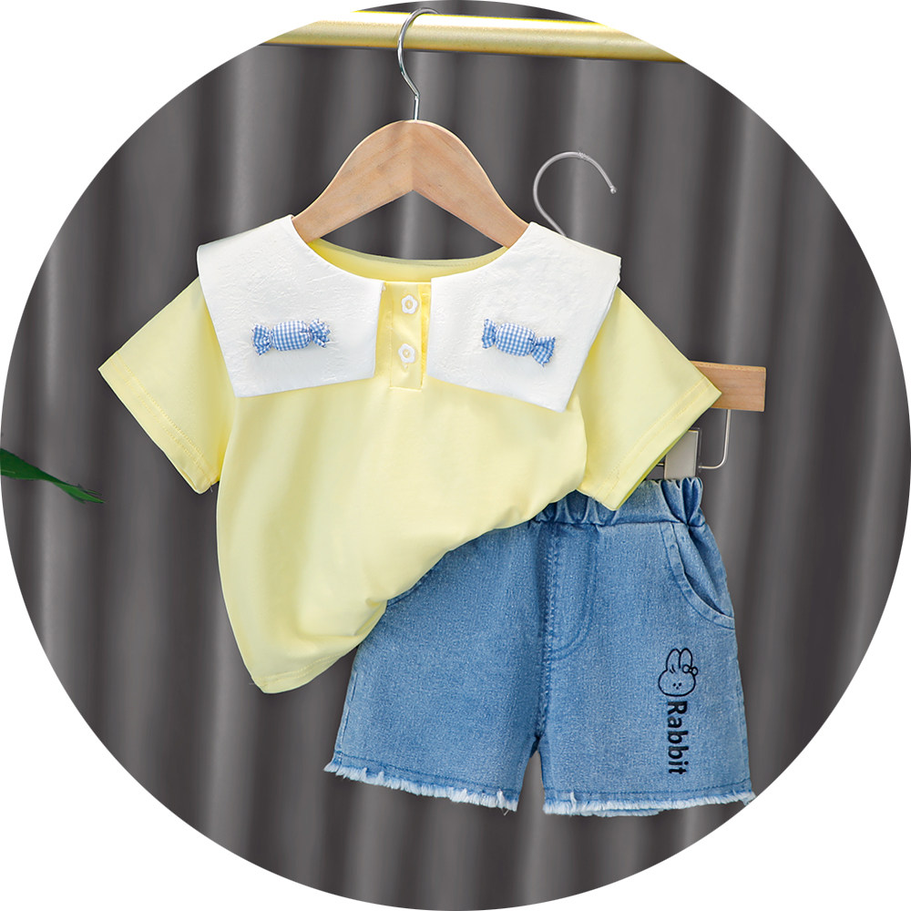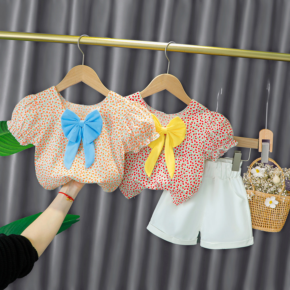 Трендовый летний комплект для девочек, популярно в интернете, в западном стиле, в корейском стиле, 1-2-4 лет, короткий рукав, детская одежда