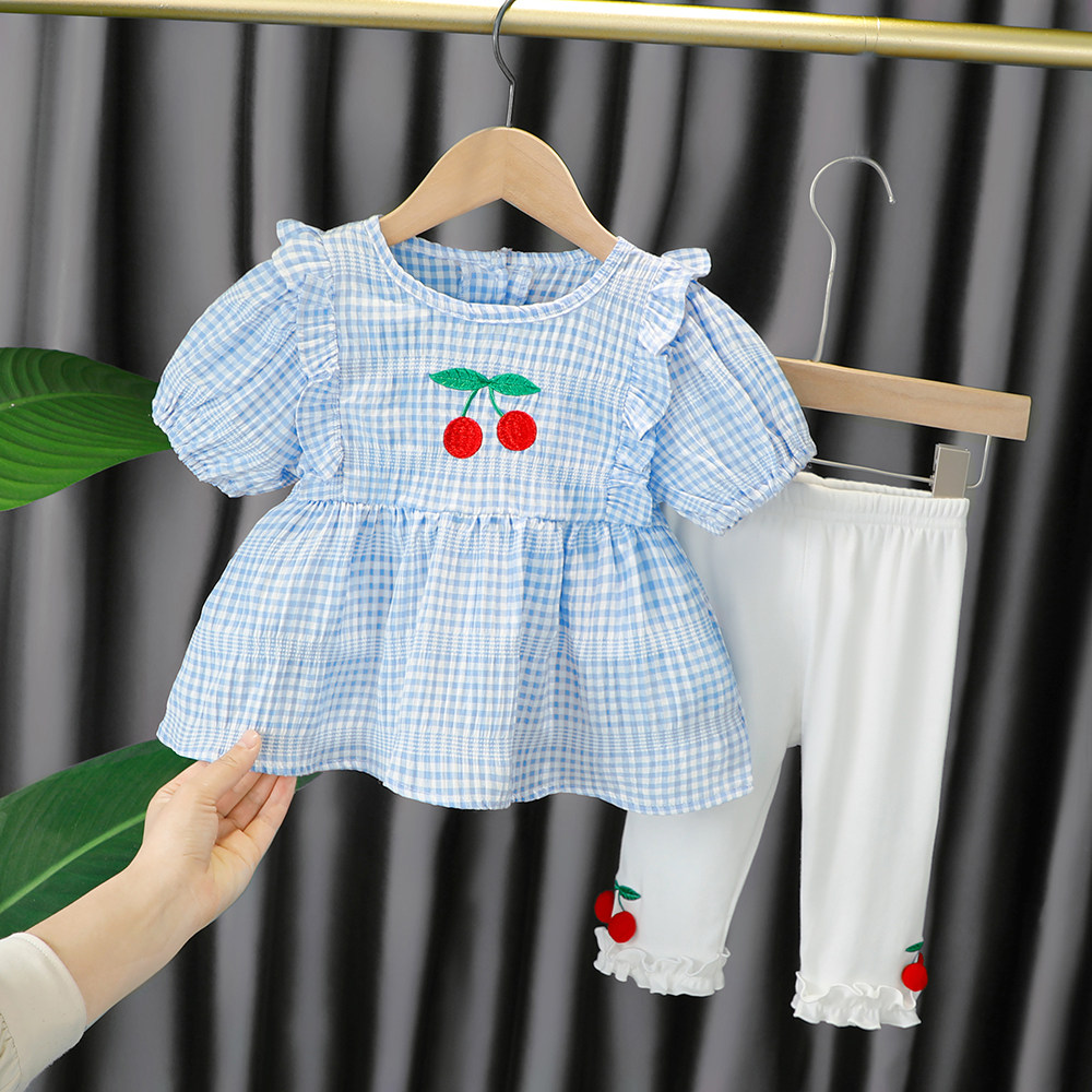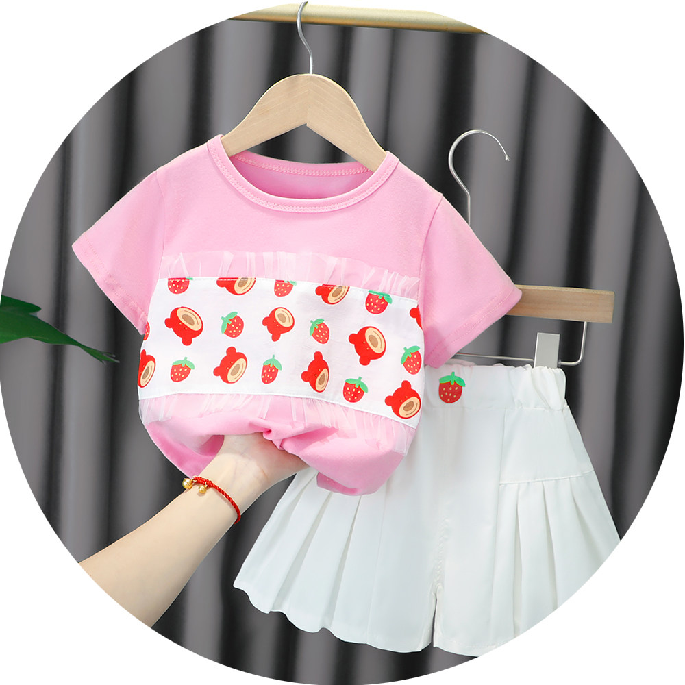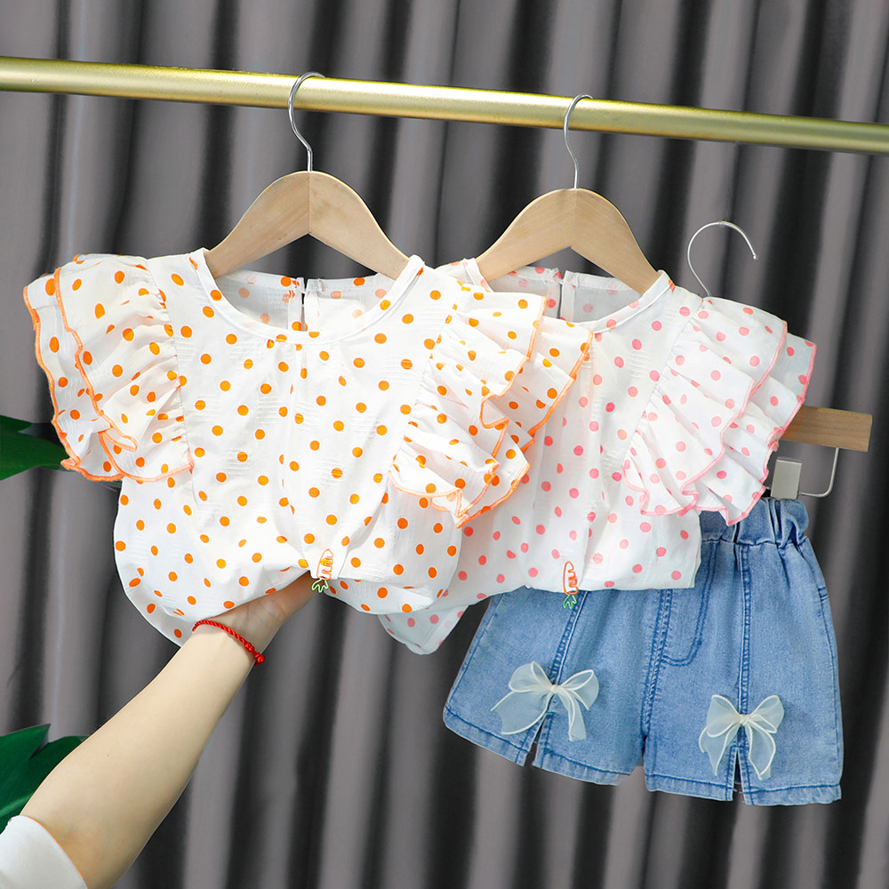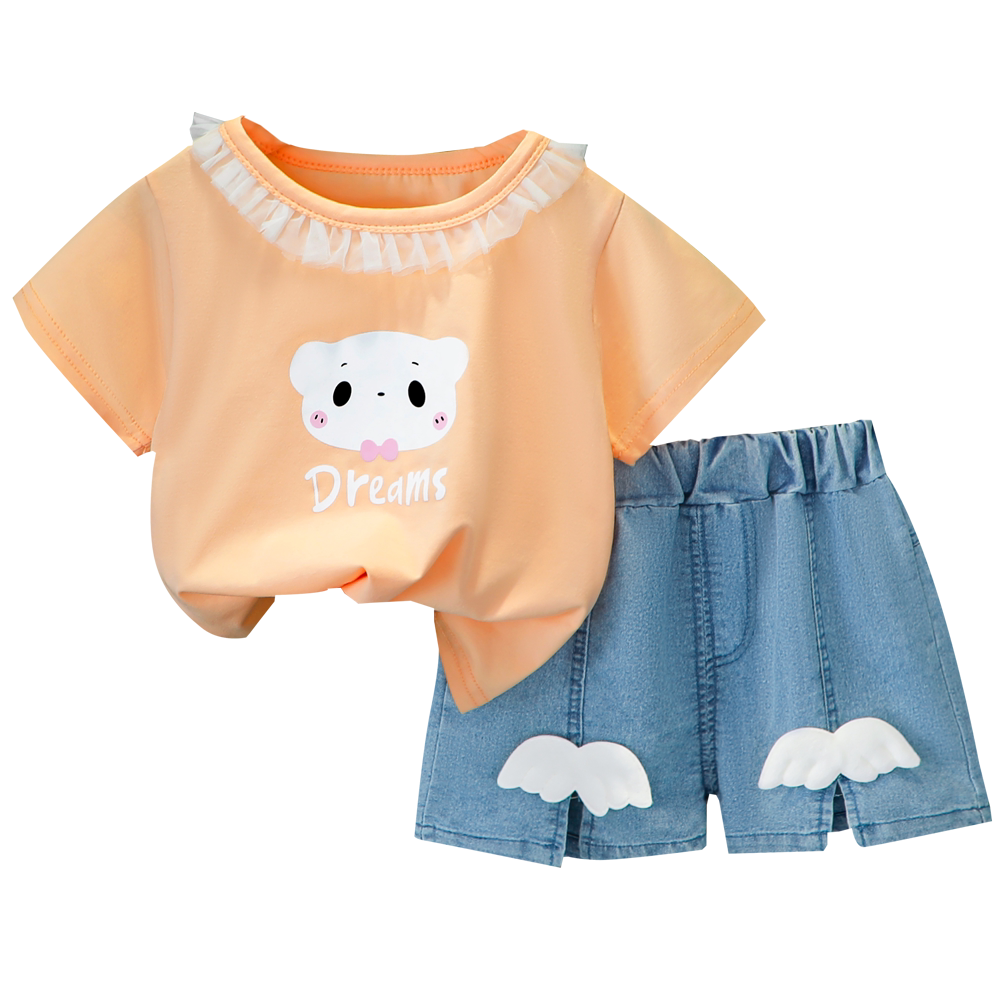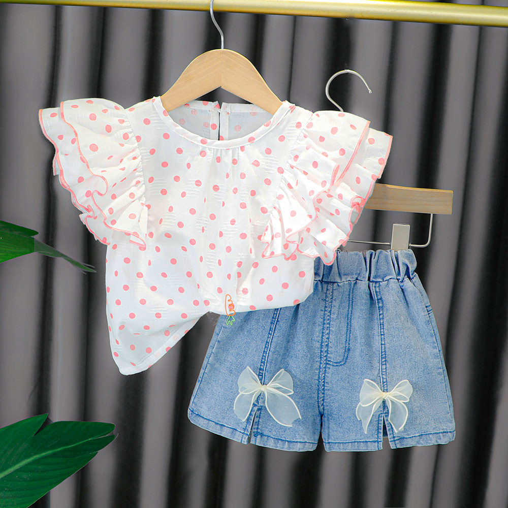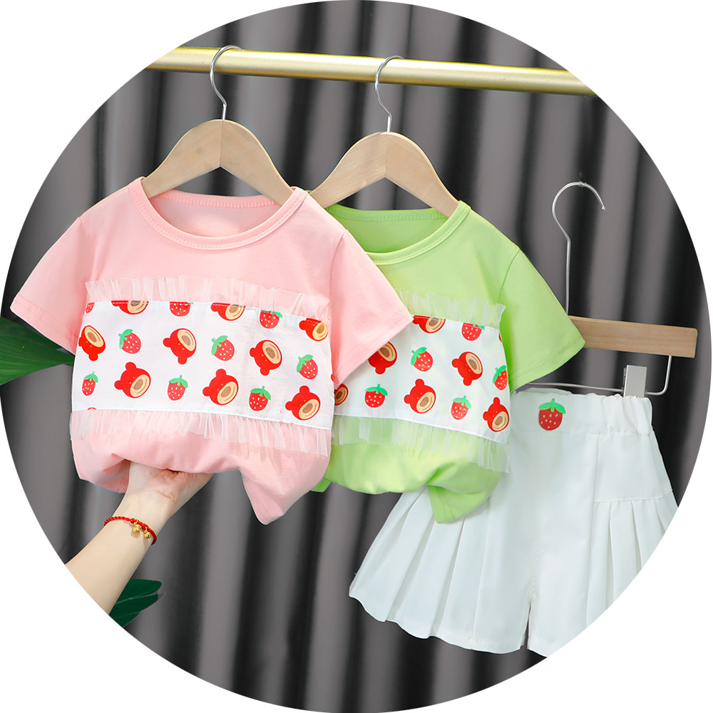 Трендовый летний комплект для девочек, популярно в интернете, в западном стиле, в корейском стиле, 1-2-4 лет, короткий рукав, детская одежда