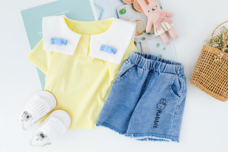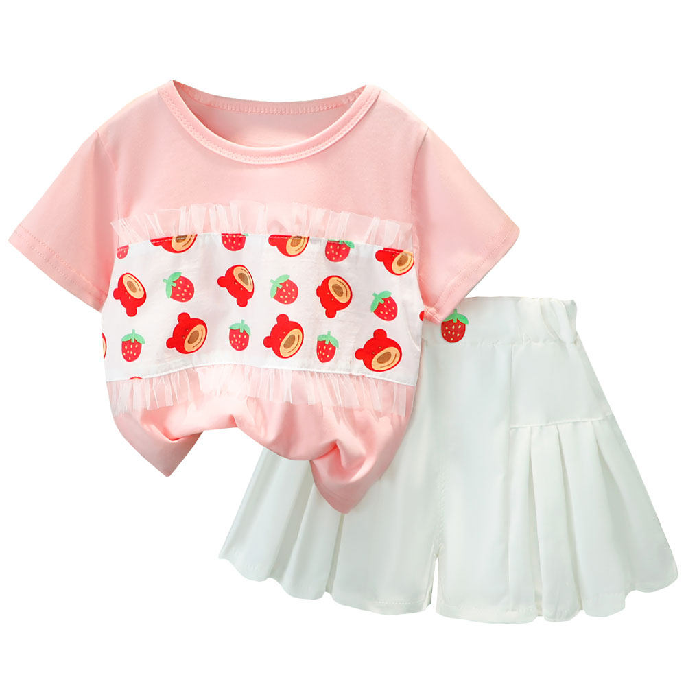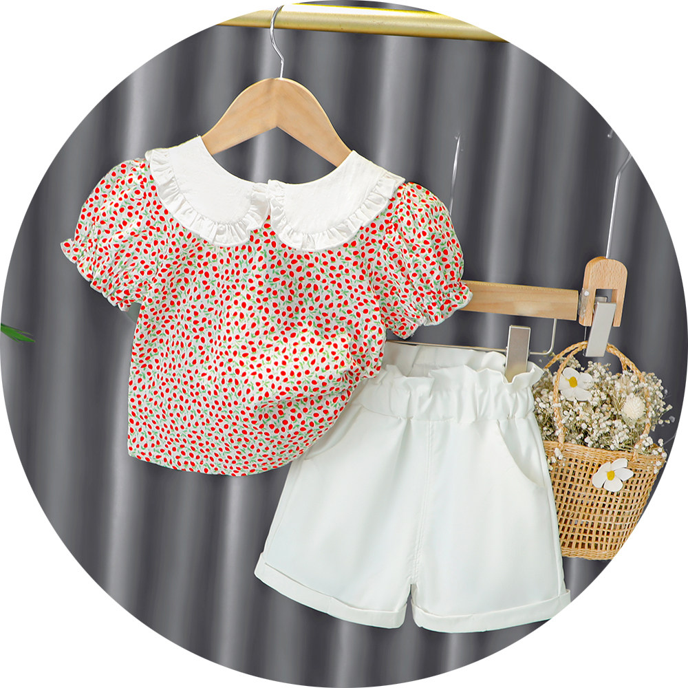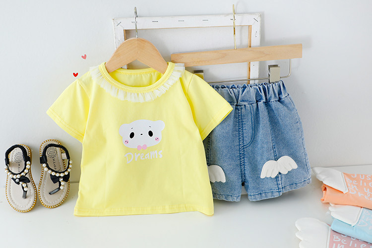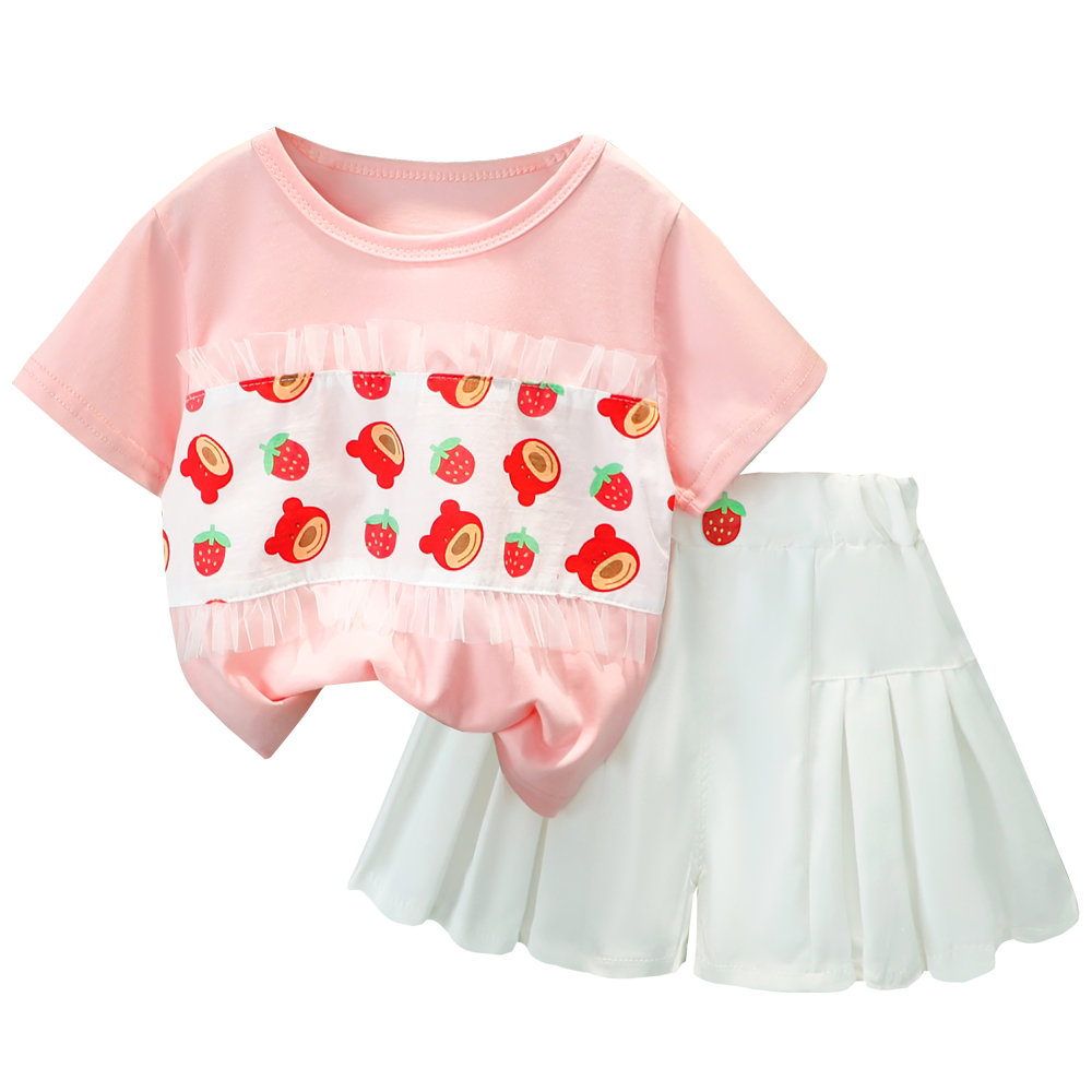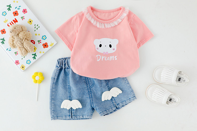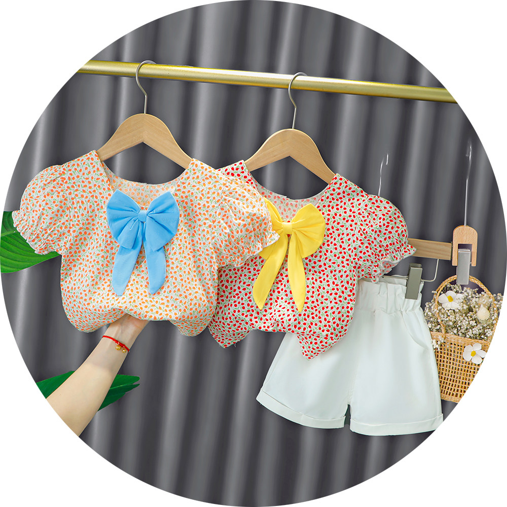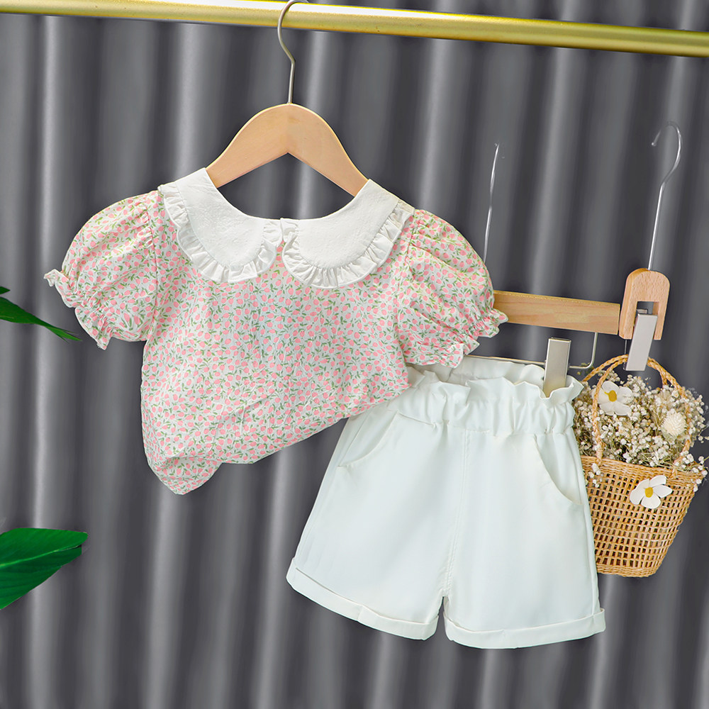 Трендовый летний комплект для девочек, популярно в интернете, в западном стиле, в корейском стиле, 1-2-4 лет, короткий рукав, детская одежда
