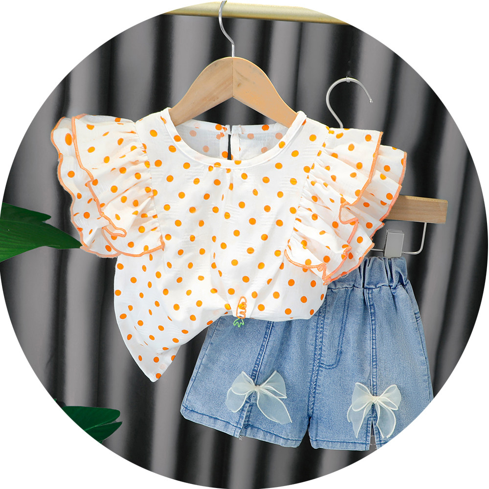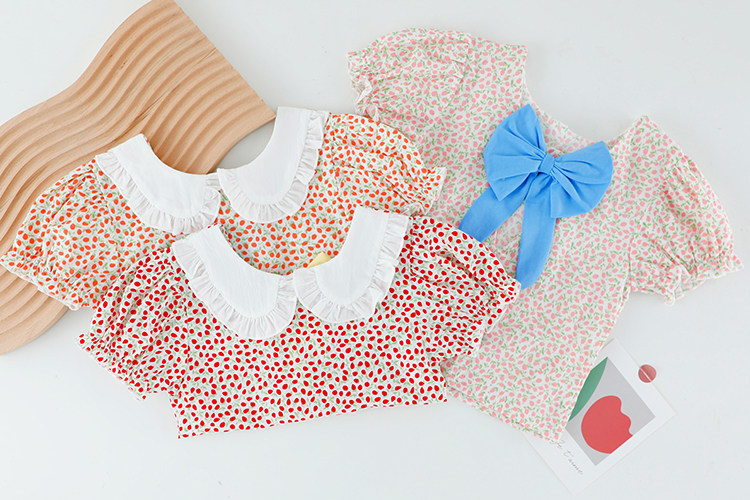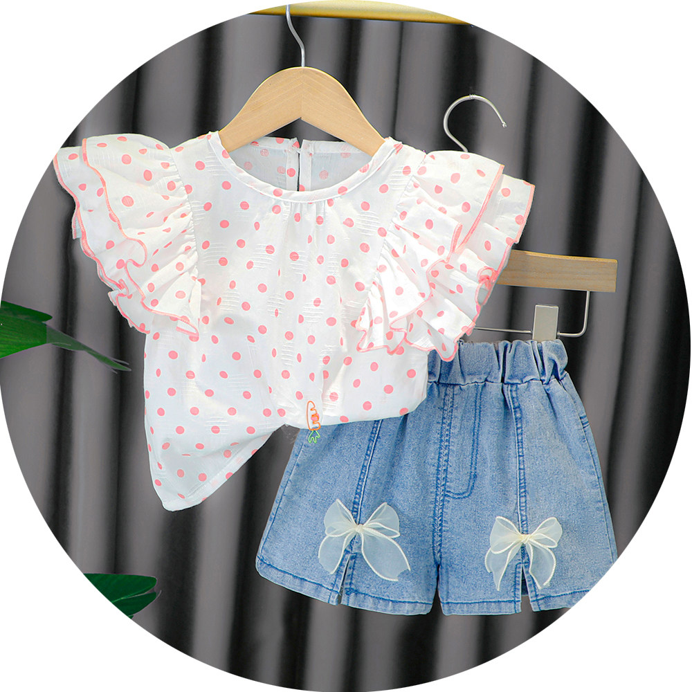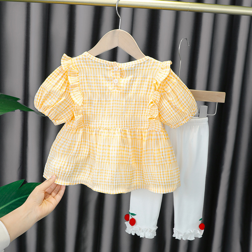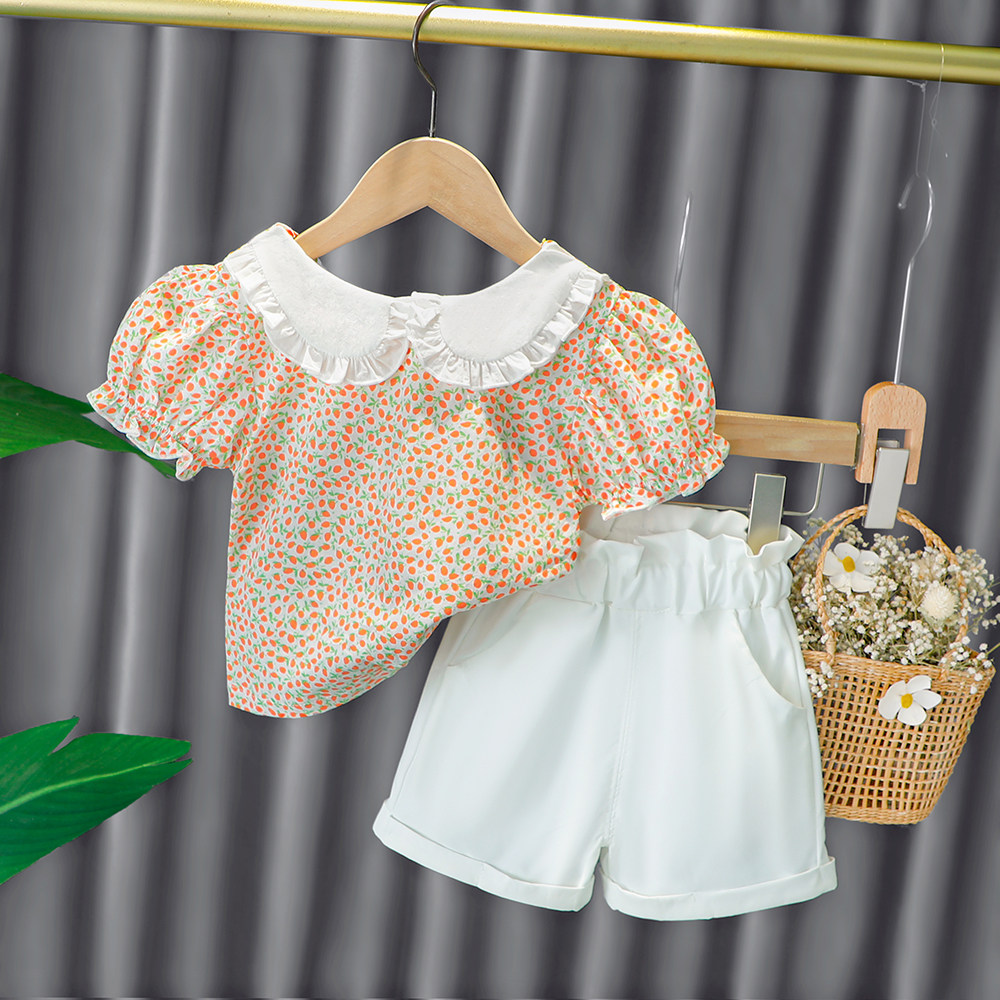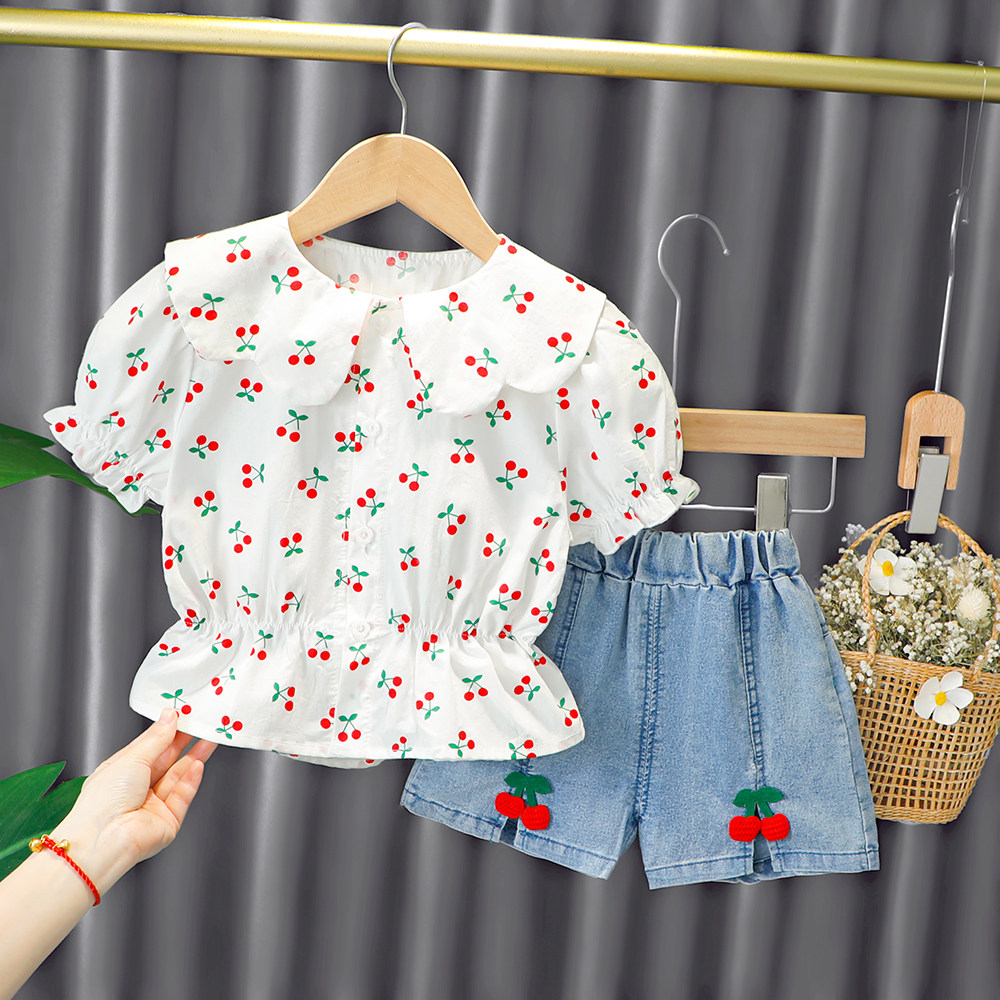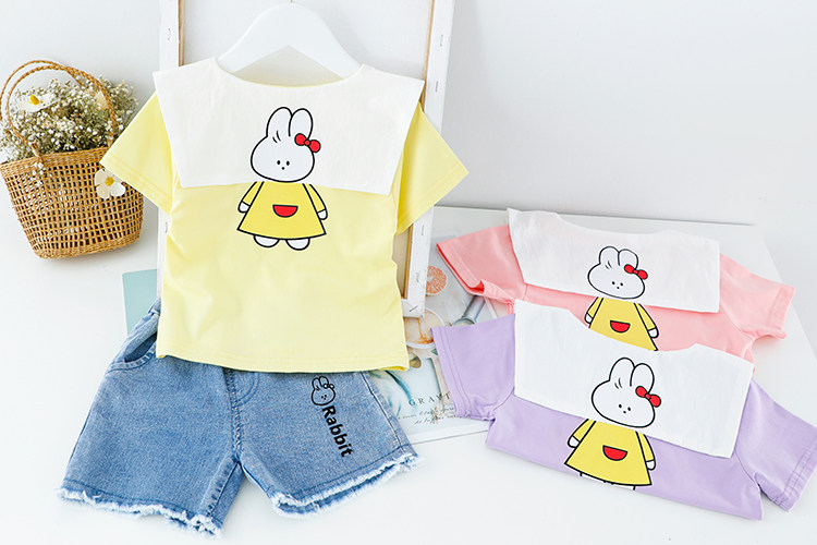 Трендовый летний комплект для девочек, популярно в интернете, в западном стиле, в корейском стиле, 1-2-4 лет, короткий рукав, детская одежда