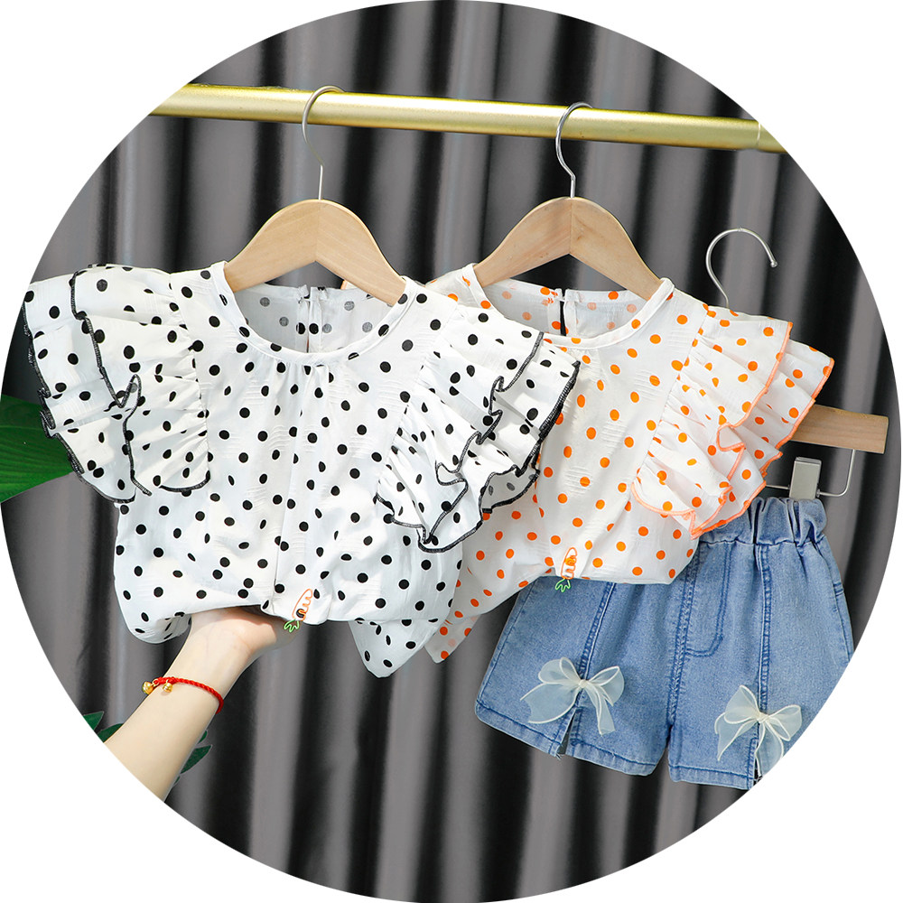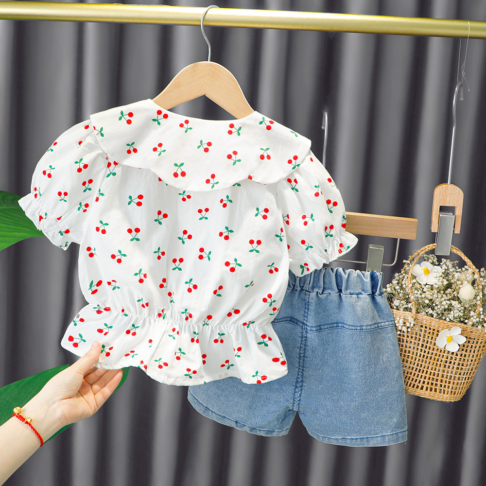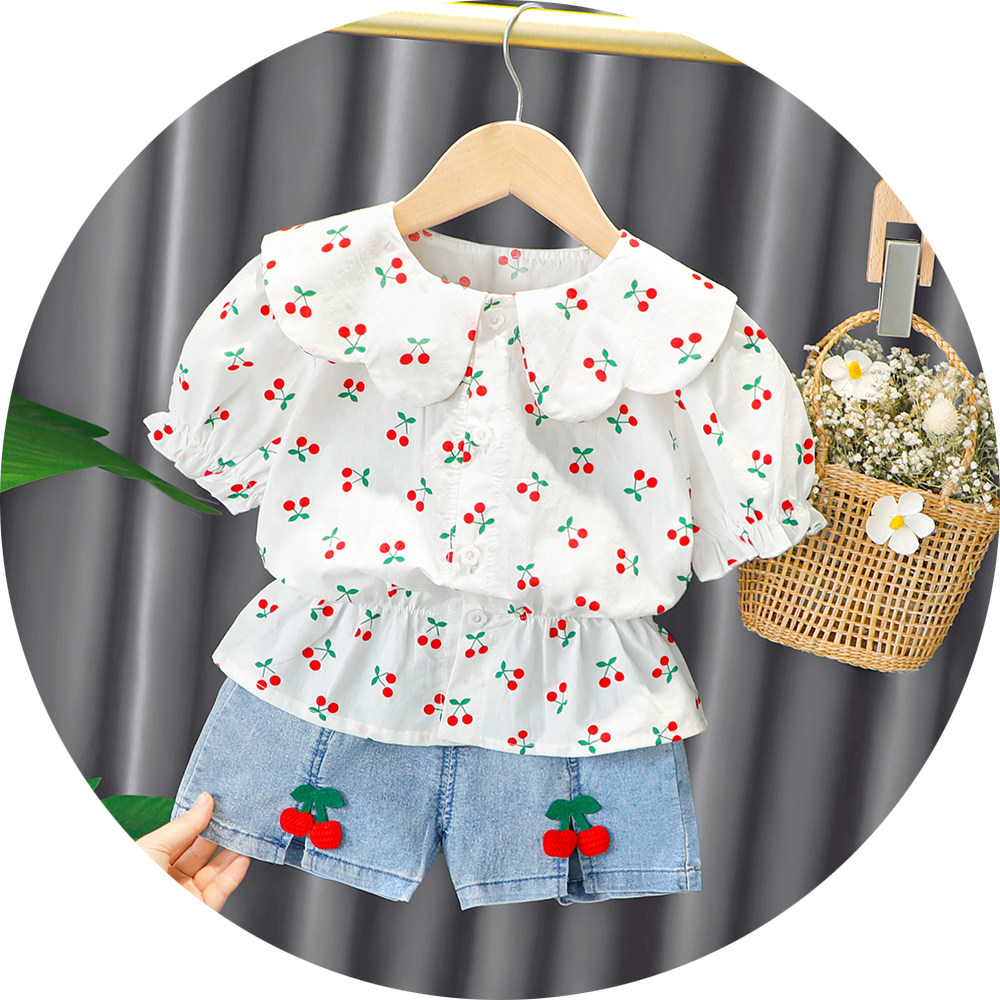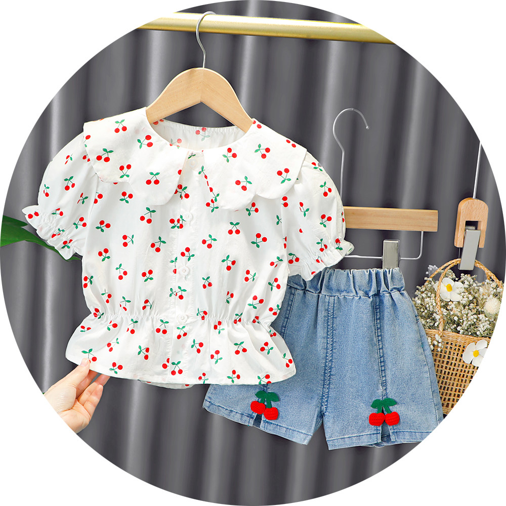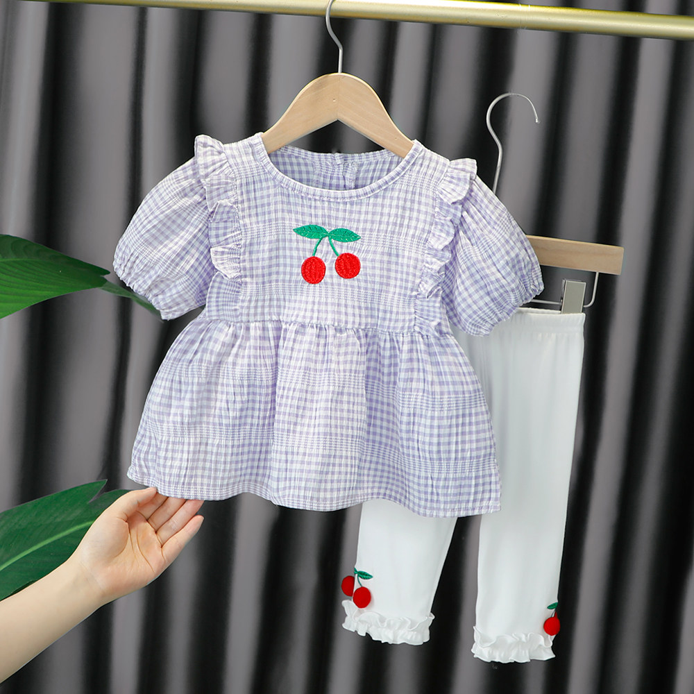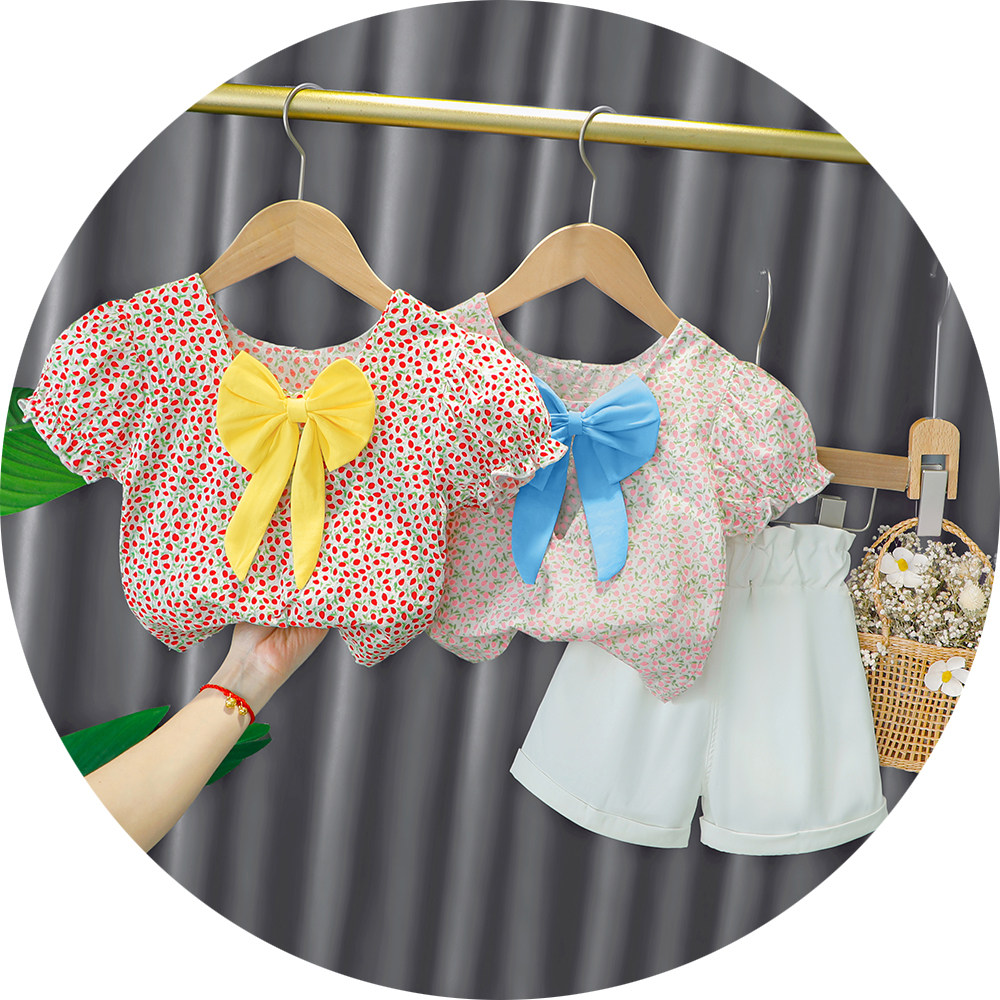 Трендовый летний комплект для девочек, популярно в интернете, в западном стиле, в корейском стиле, 1-2-4 лет, короткий рукав, детская одежда