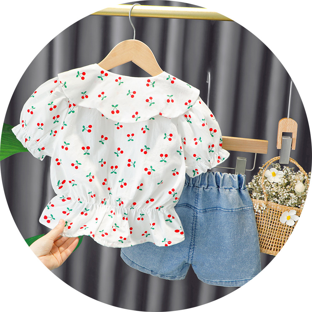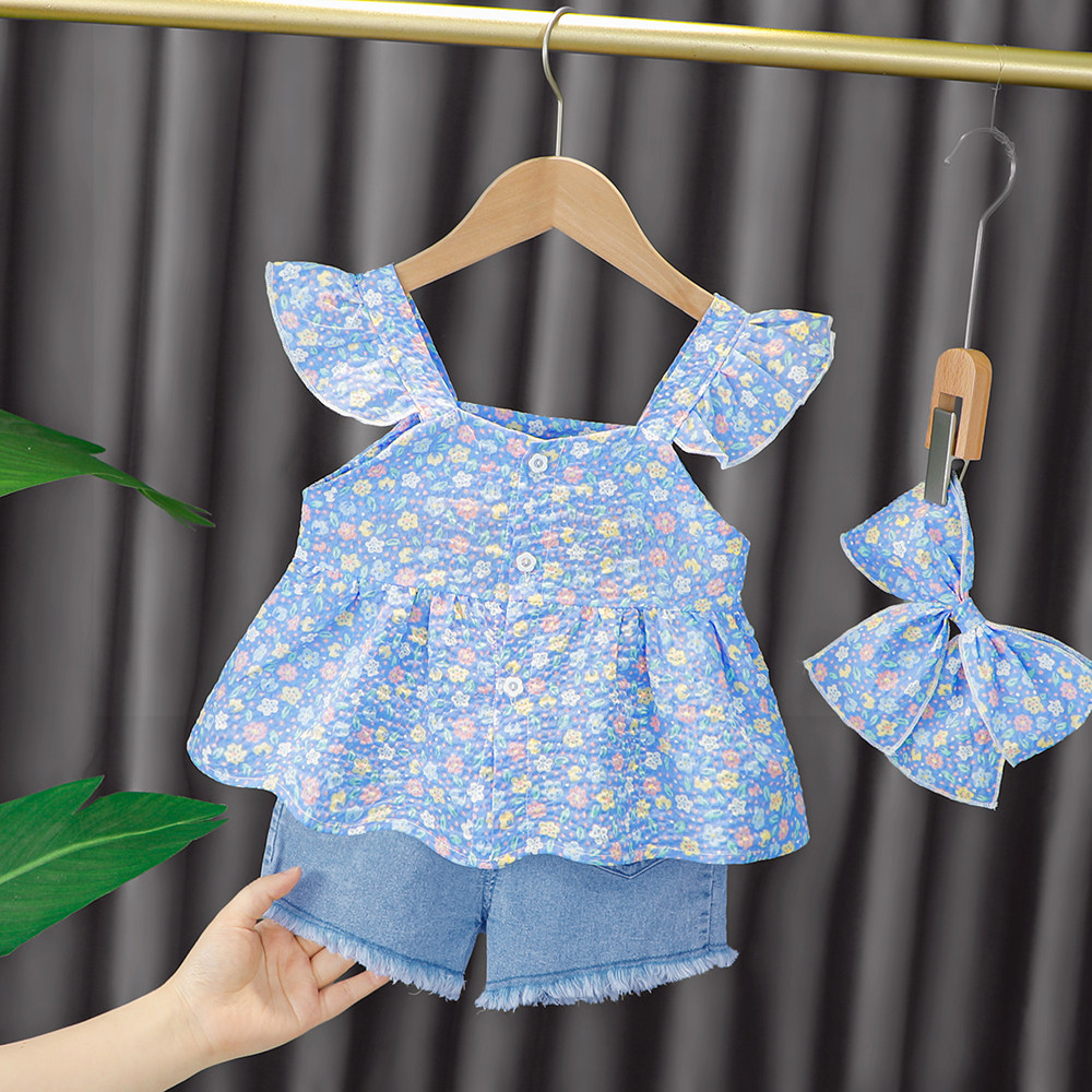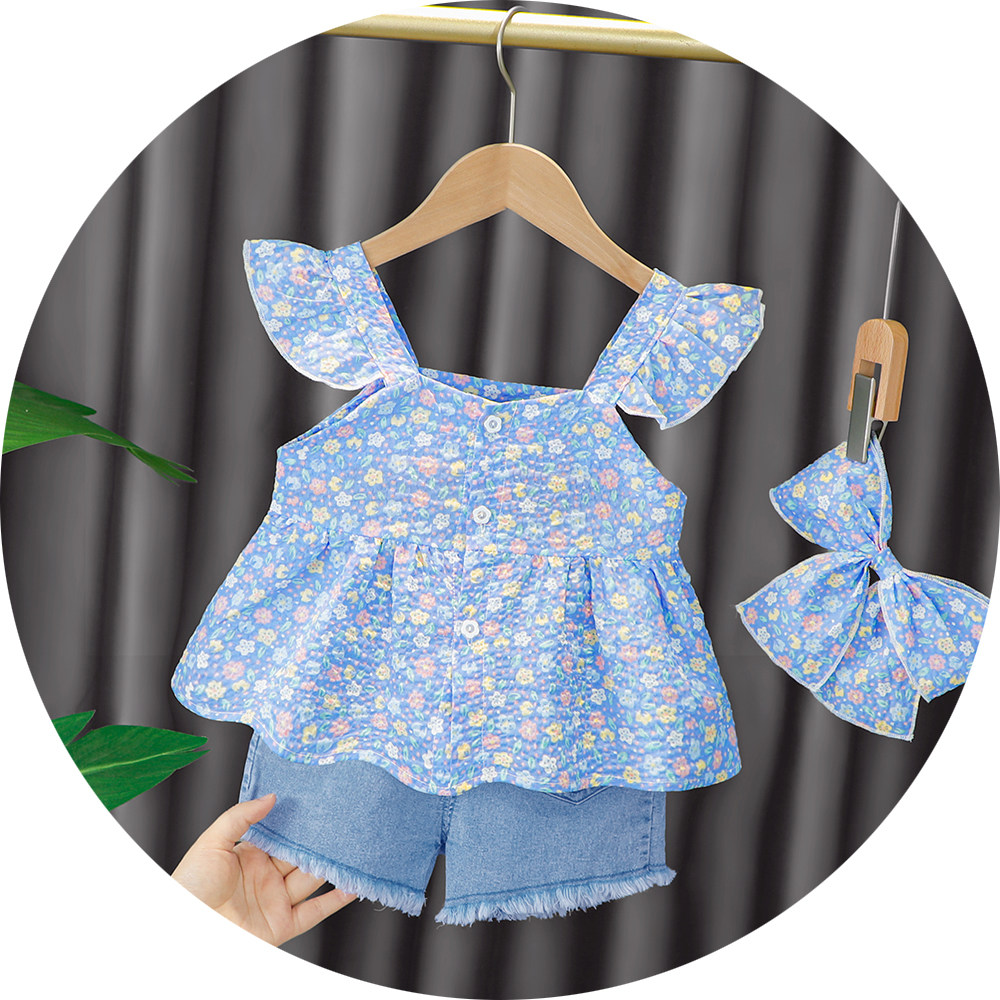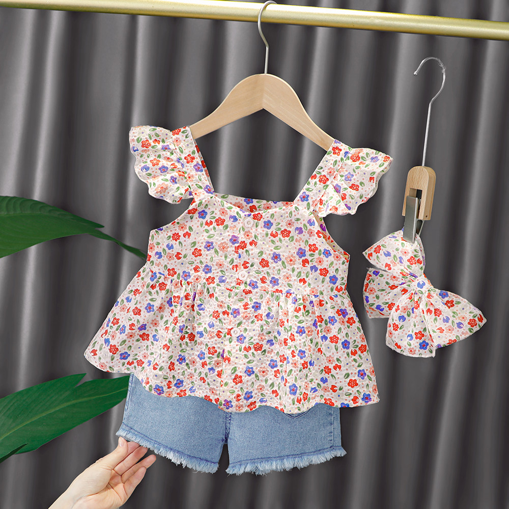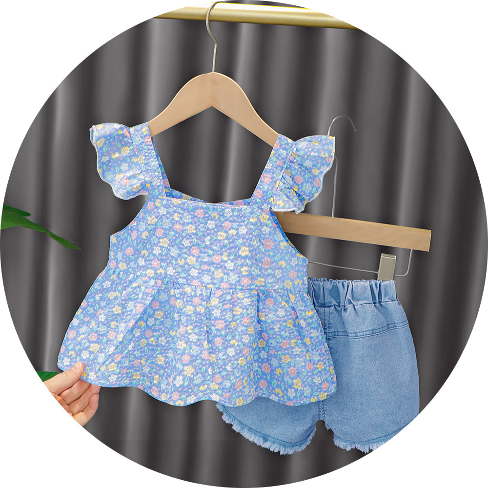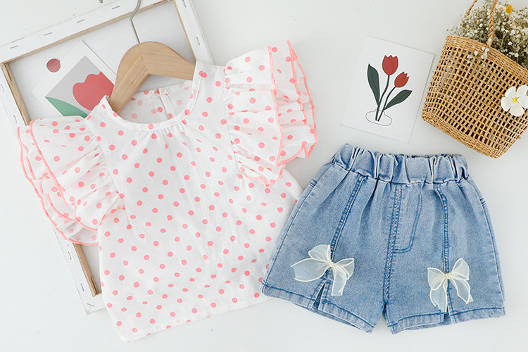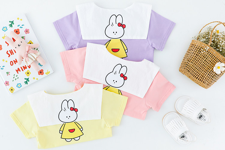 Трендовый летний комплект для девочек, популярно в интернете, в западном стиле, в корейском стиле, 1-2-4 лет, короткий рукав, детская одежда