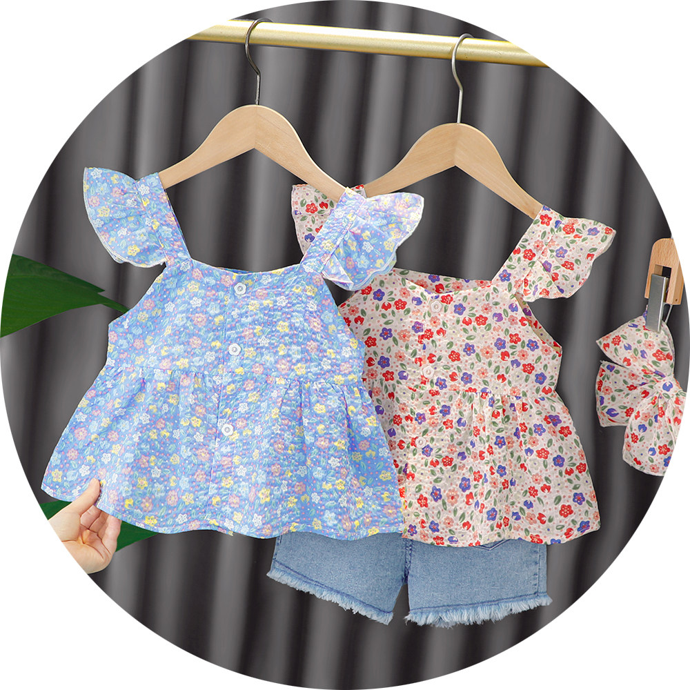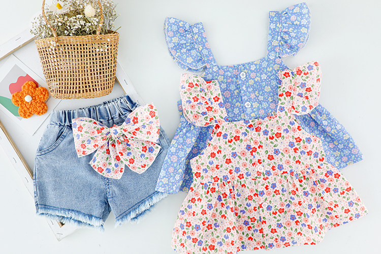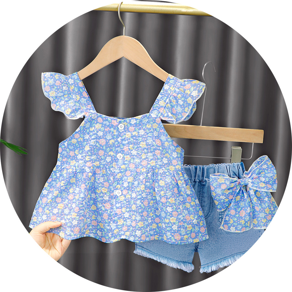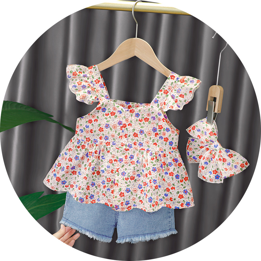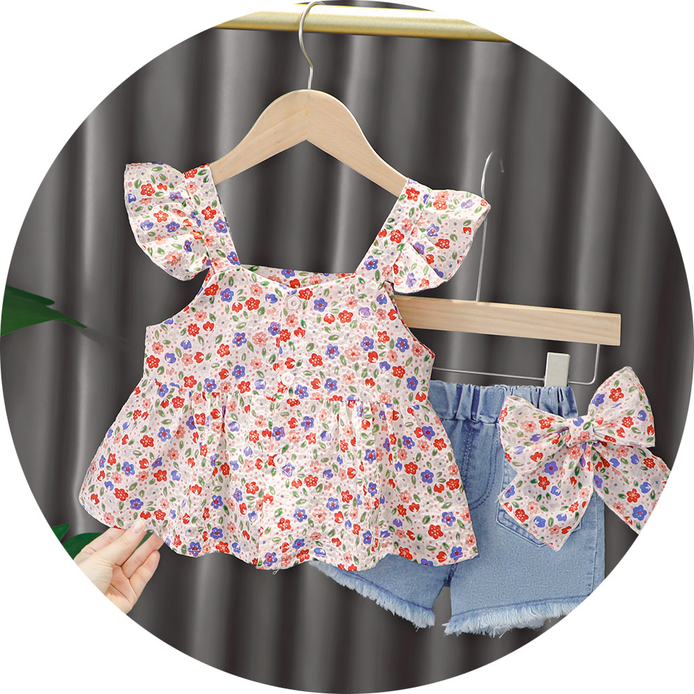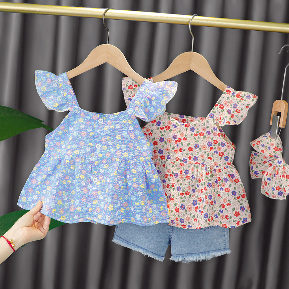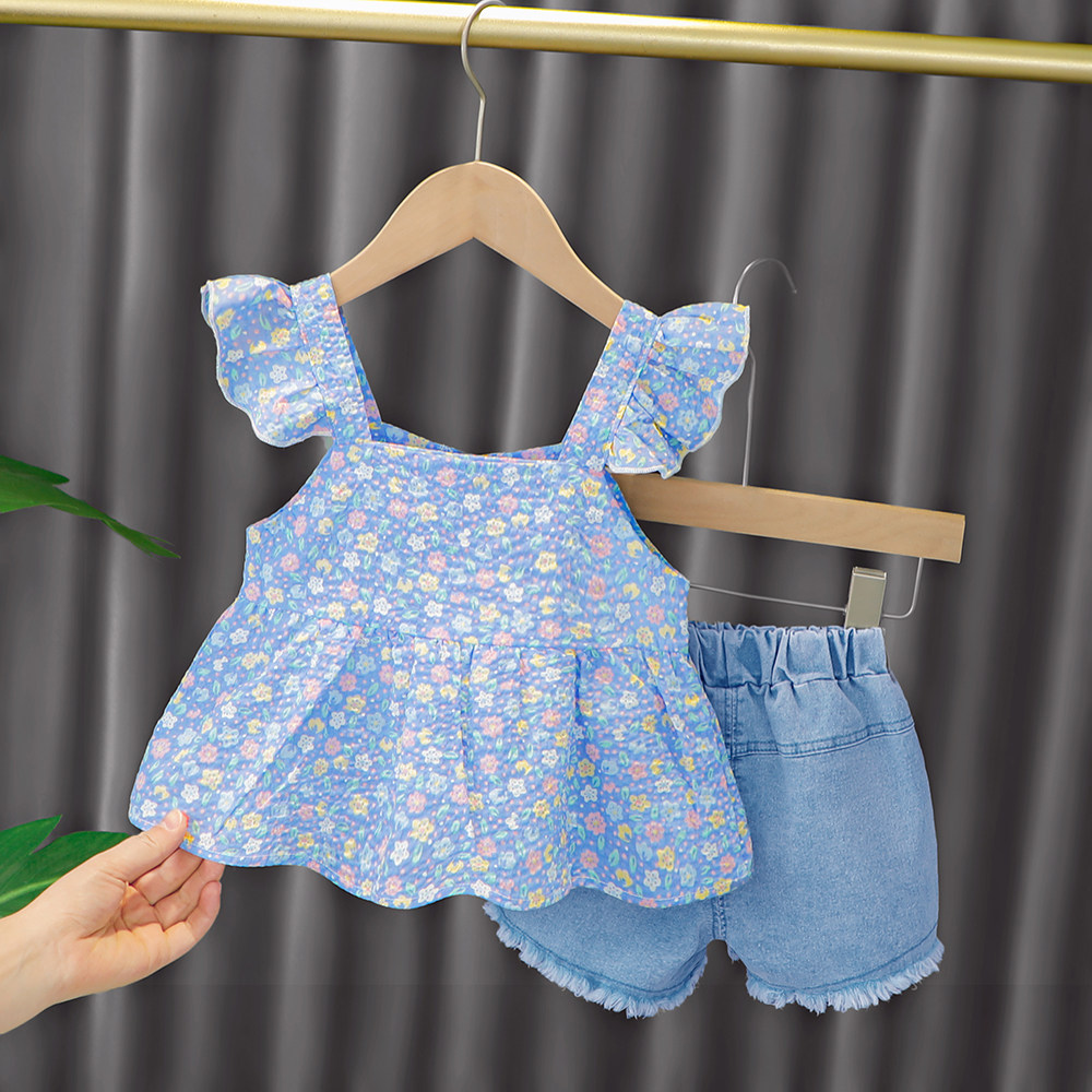 Трендовый летний комплект для девочек, популярно в интернете, в западном стиле, в корейском стиле, 1-2-4 лет, короткий рукав, детская одежда
