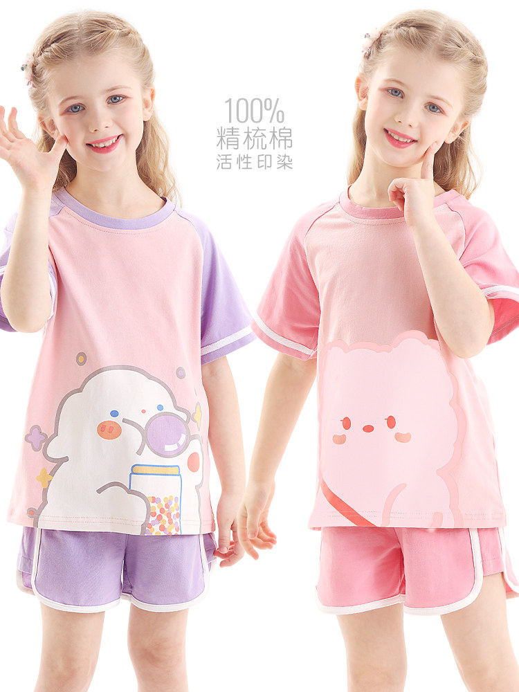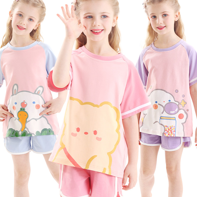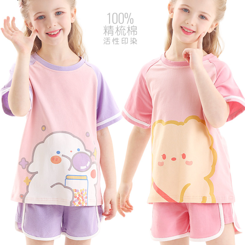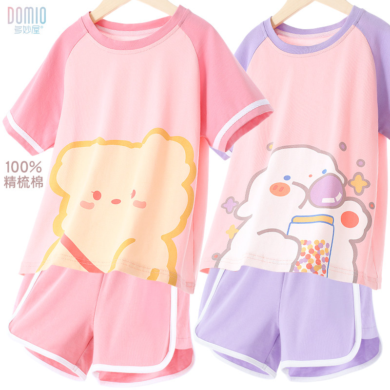 Летняя пижама, летний детский комплект, хлопковые шелковые тонкие летние штаны, подходит для подростков