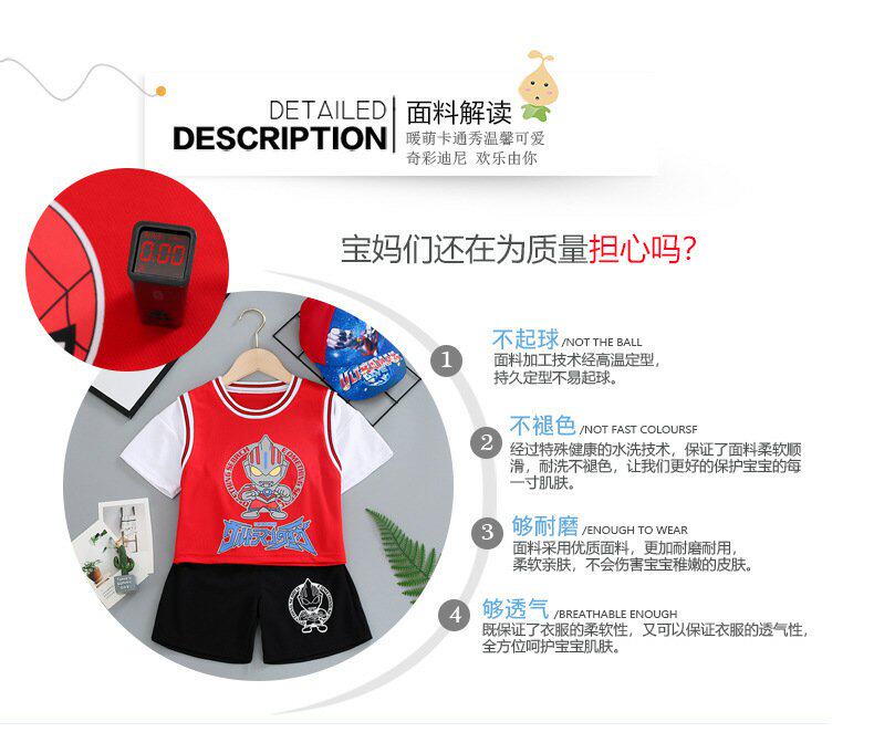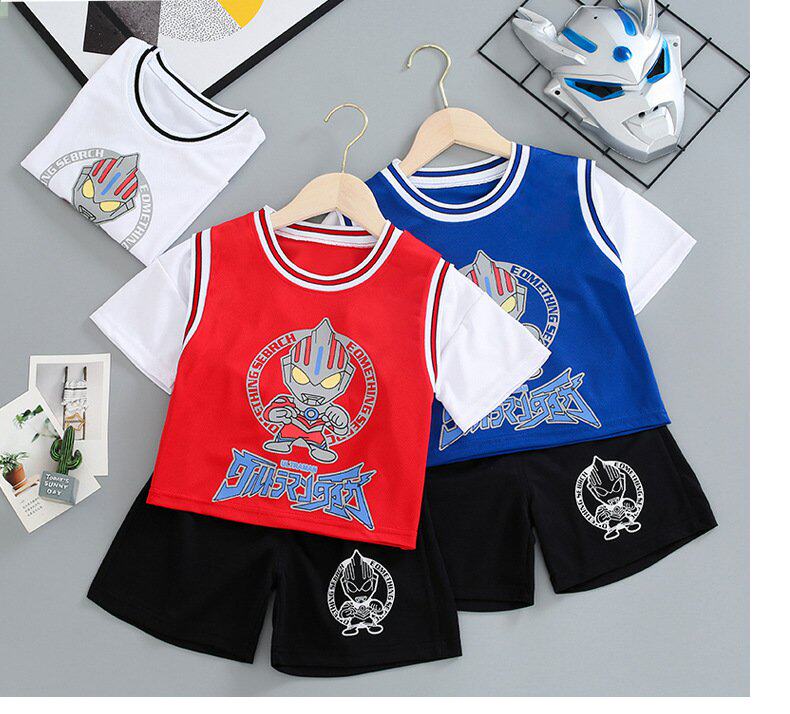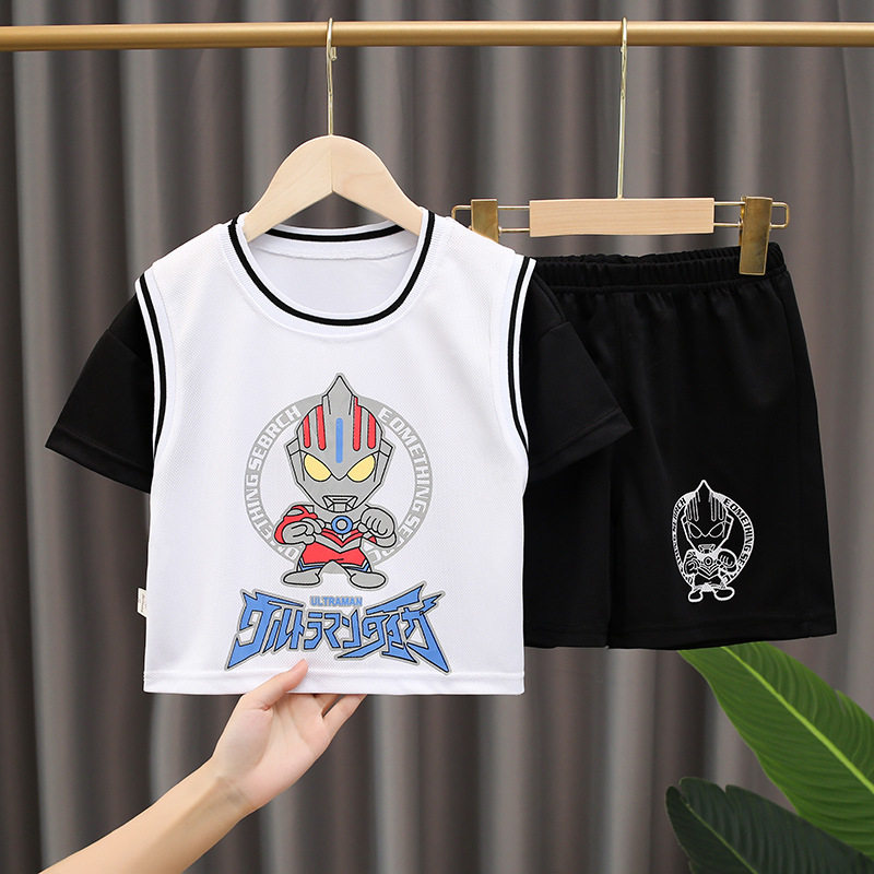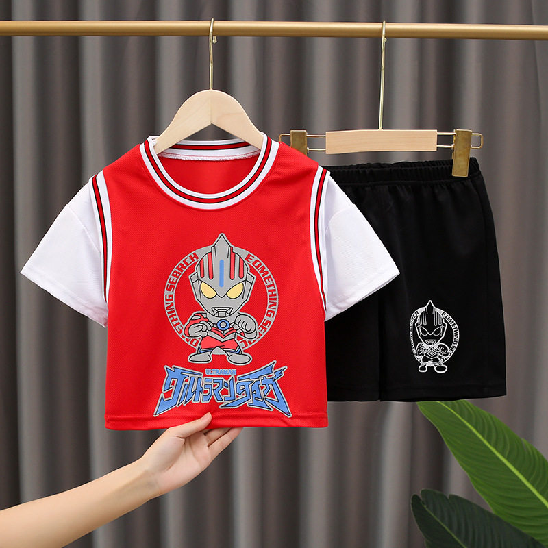 Ultra, Ультрамен Тига для мальчиков, летний тонкий детский мультяшный комплект, короткий рукав, Человек-паук, в западном стиле