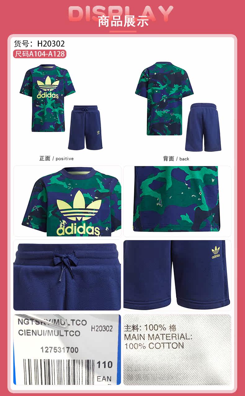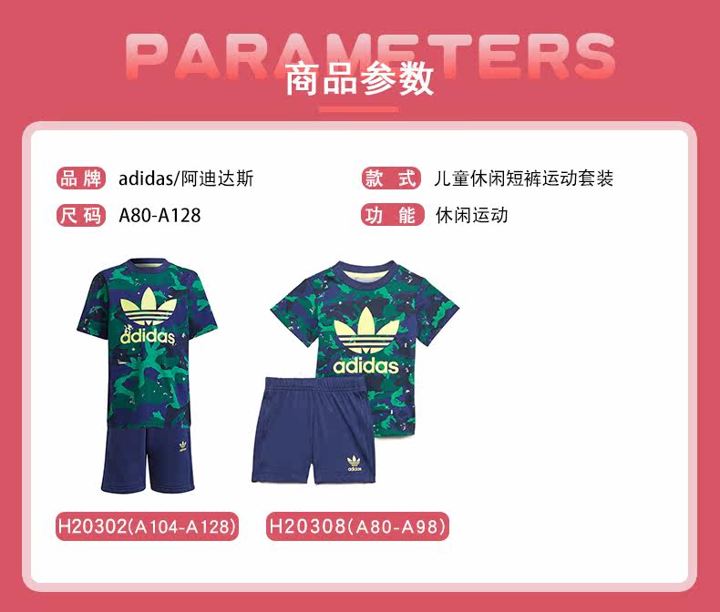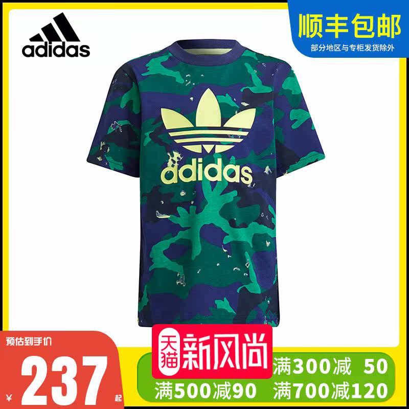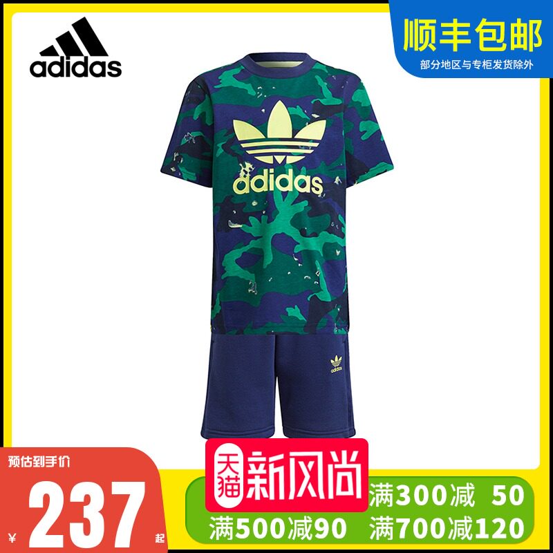 Adidas, летние нарукавники, хлопковый камуфляжный комплект, детская одежда, короткий рукав