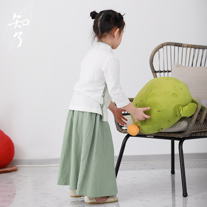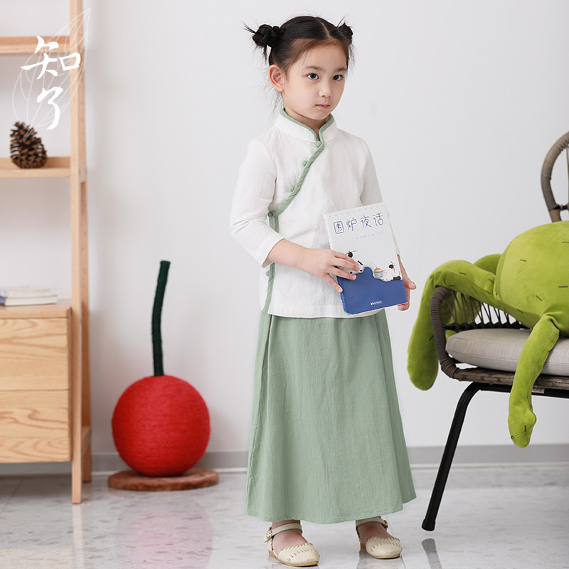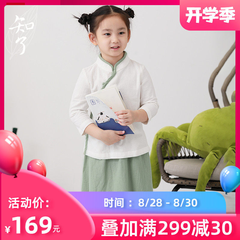 知了 Осенний комплект для школьников и студентов, рубашка, юбка на девочку, костюм, детская одежда, китайский стиль