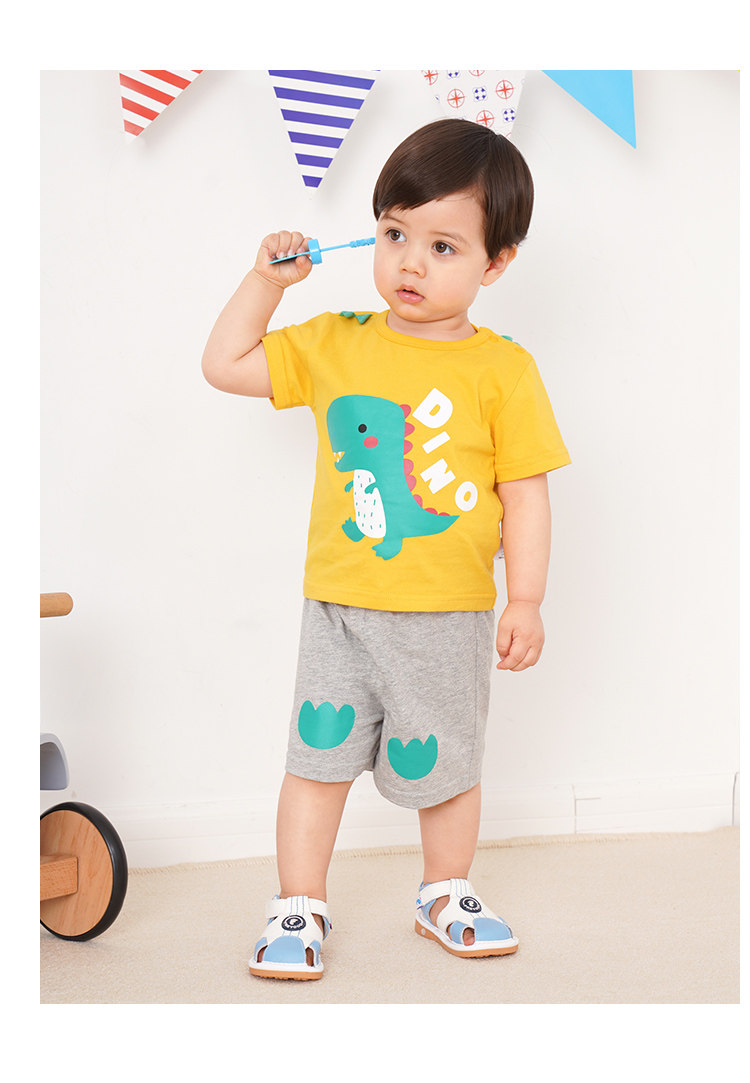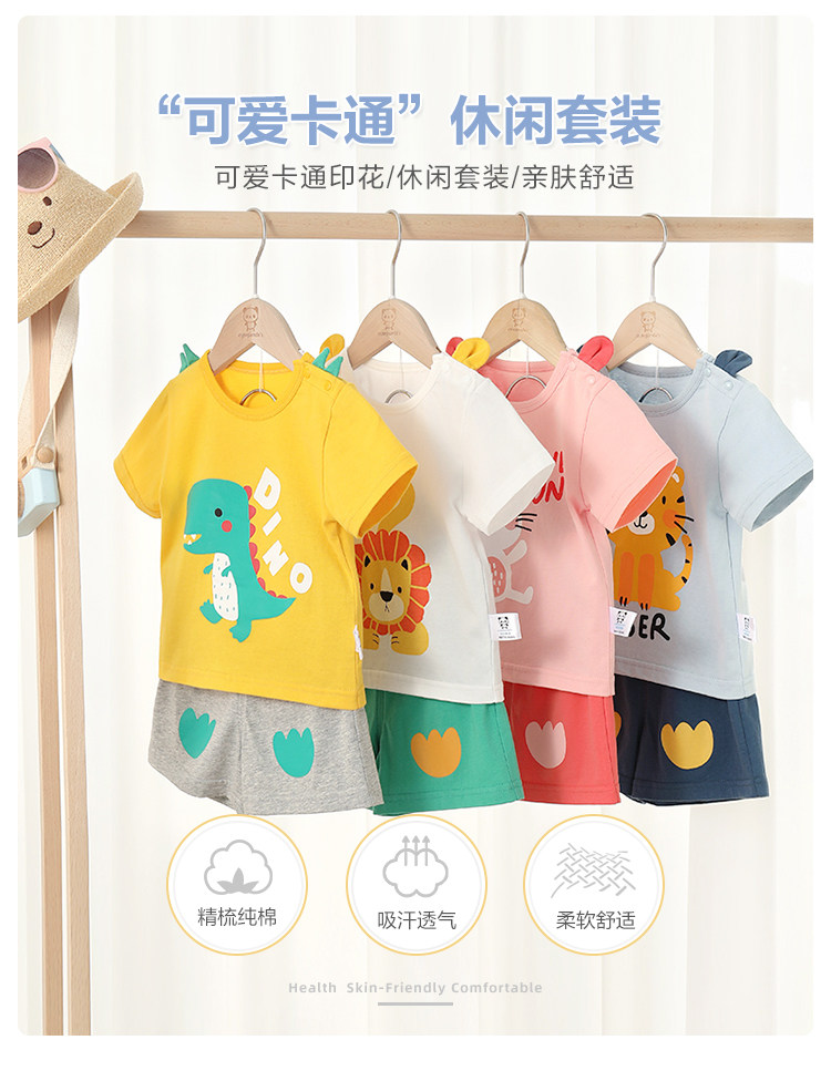 Детский мультяшный комбинезон, комплект, летняя одежда для раннего возраста для мальчиков для девочек для выхода на улицу, короткий рукав