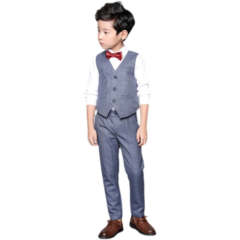 Летний жилет для мальчиков, штаны, рубашка, детский комплект, костюм, пиджак классического кроя, платье