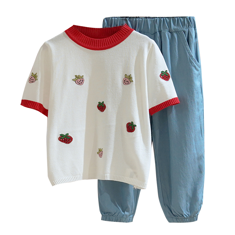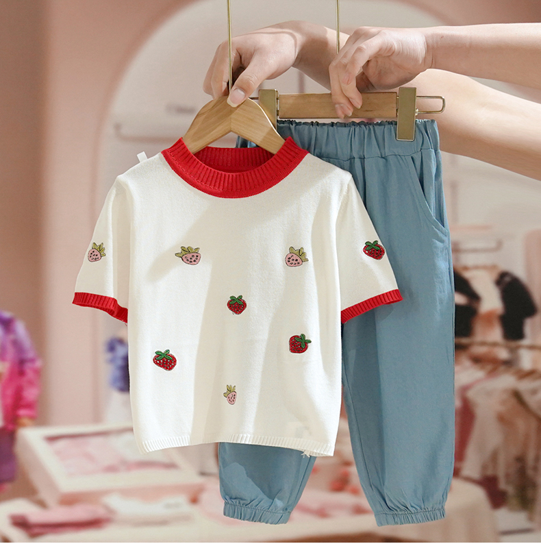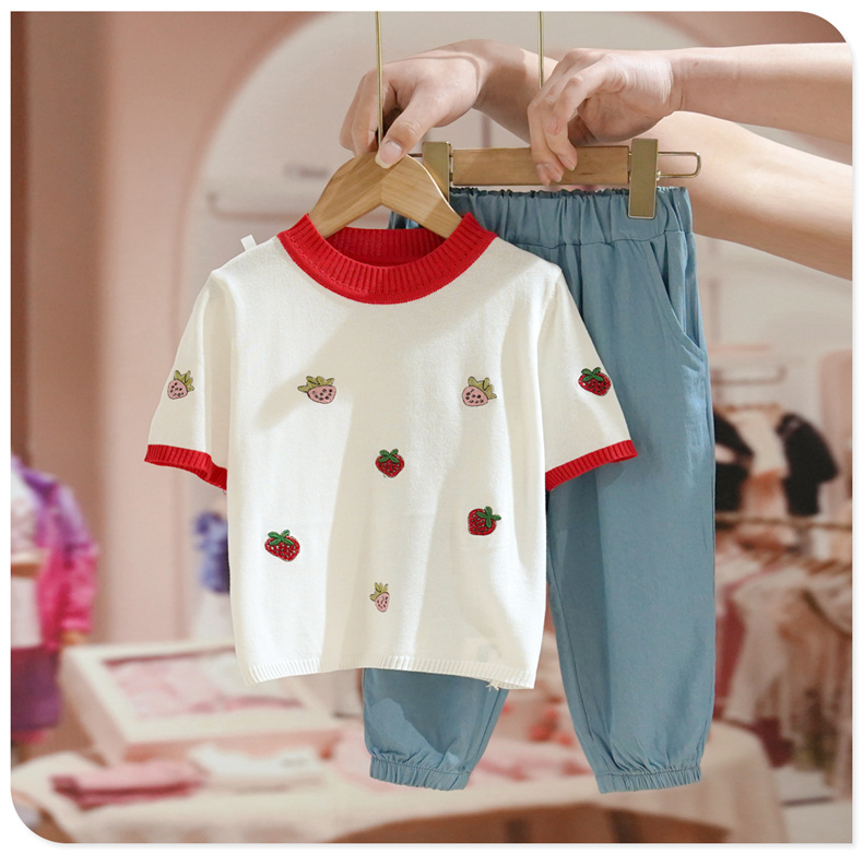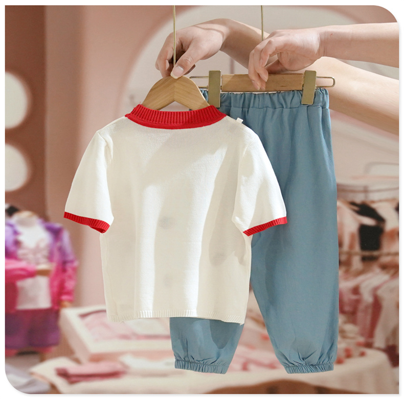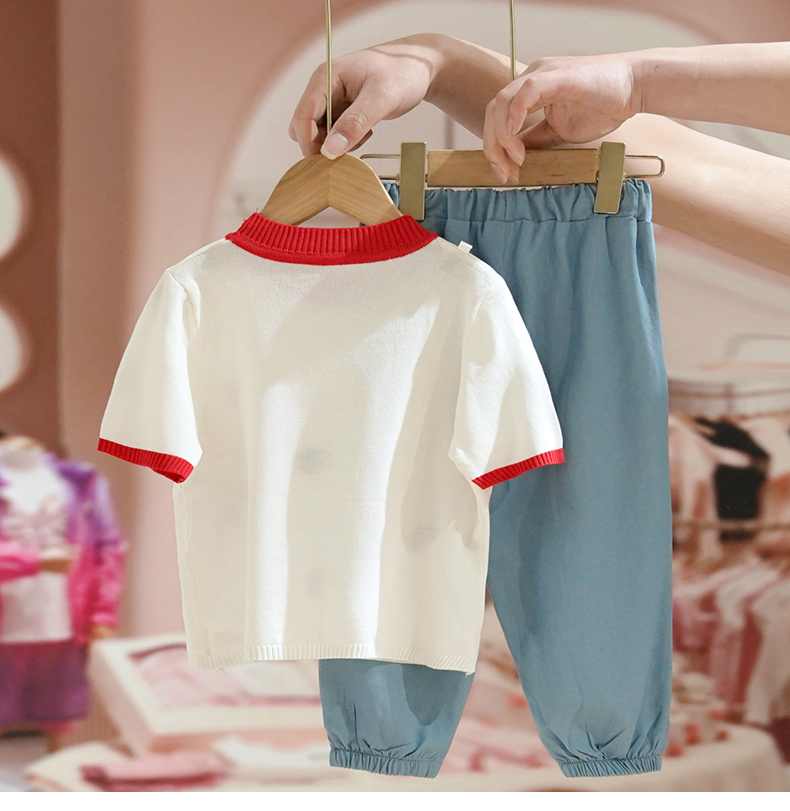 Летняя одежда, трикотажный комплект, летняя детская футболка с коротким рукавом, детская одежда, в западном стиле
