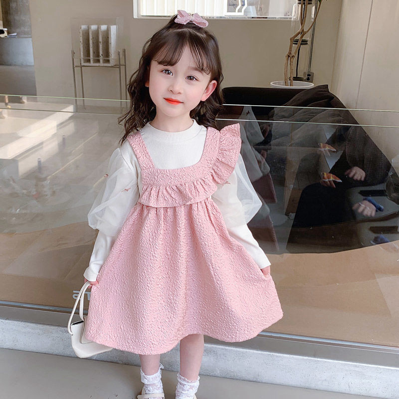 Весенний комплект, трикотажный свитер, подтяжки, платье, детская юбка на девочку, 2022, популярно в интернете