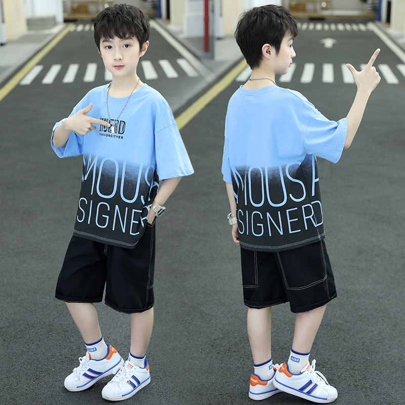 Летняя одежда, детский летний спортивный комплект для мальчиков, коллекция 2023, подходит для подростков, короткий рукав, популярно в интернете