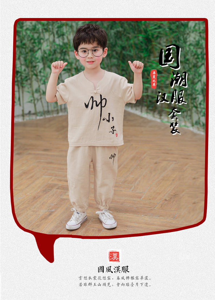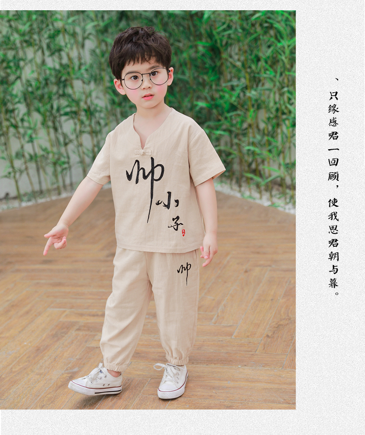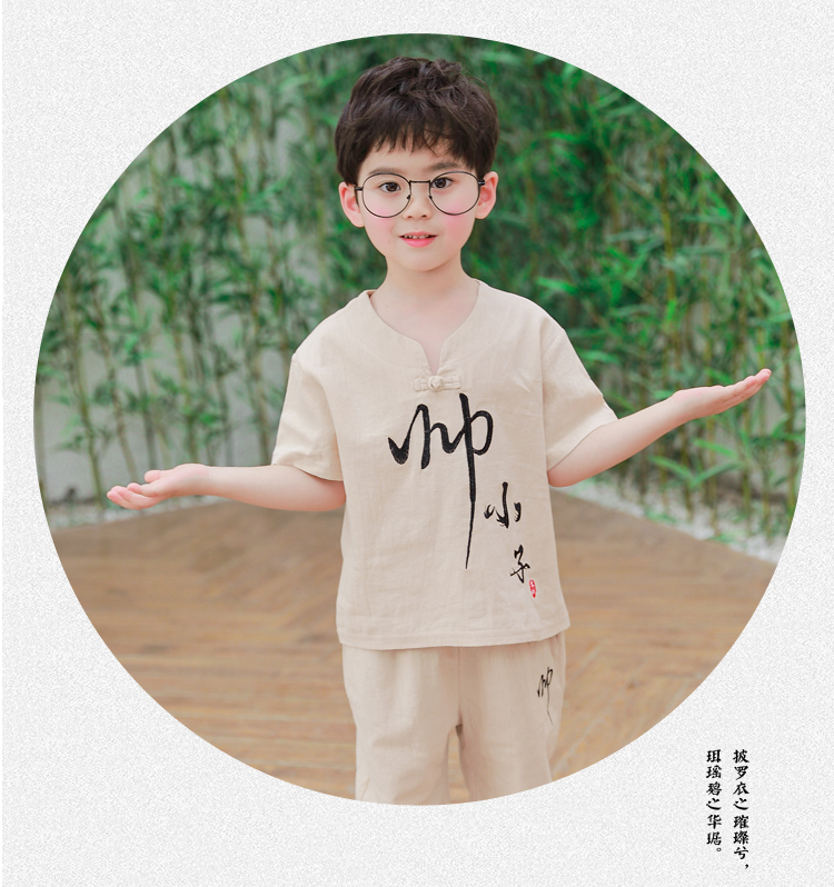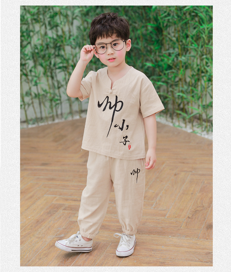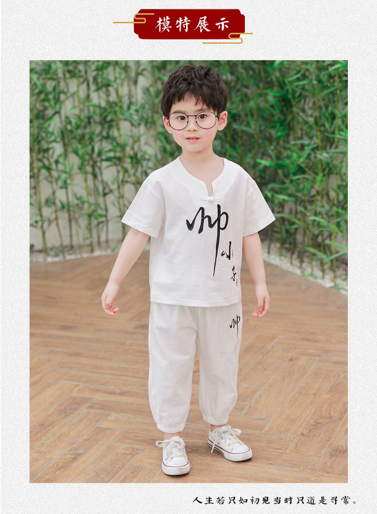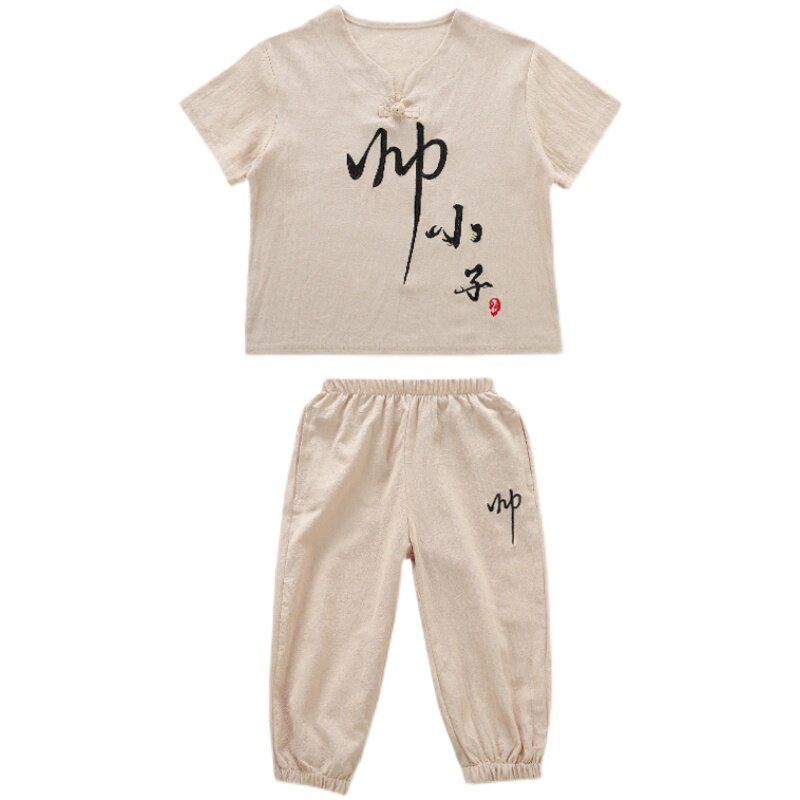 Детское ханьфу, костюм мальчика цветочника, летняя одежда, летний детский комплект для мальчиков, из хлопка и льна