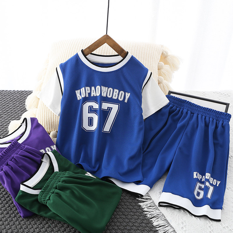 Спортивный костюм, летняя одежда для мальчиков, футболка с коротким рукавом, быстросохнущие дышащие шорты, детская баскетбольная футбольная форма, тонкий комплект