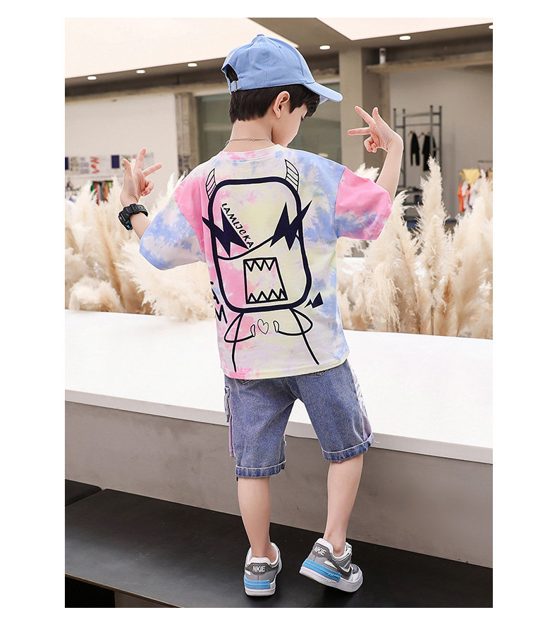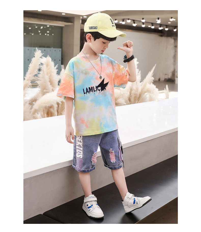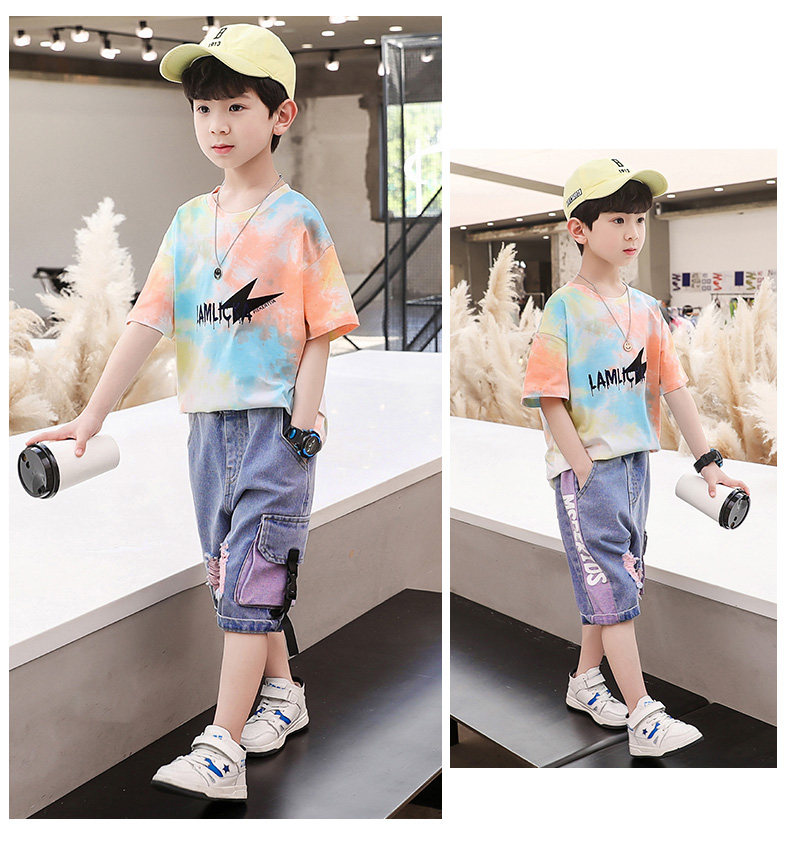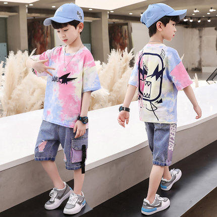 Детская летняя одежда, летний комплект для мальчиков, популярно в интернете, в западном стиле, подходит для подростков, короткий рукав