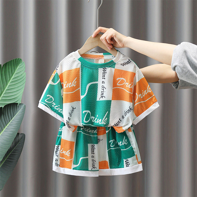 Летний детский комплект для мальчиков, дышащая летняя летняя одежда, в западном стиле
