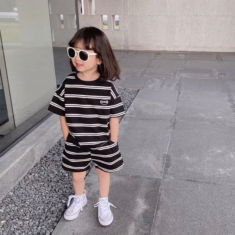 Летний комплект, детские штаны для отдыха, спортивный костюм, в корейском стиле, короткий рукав