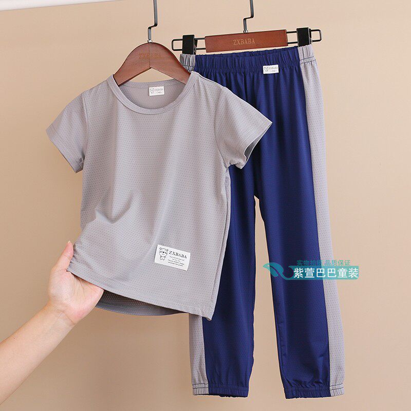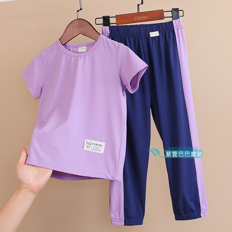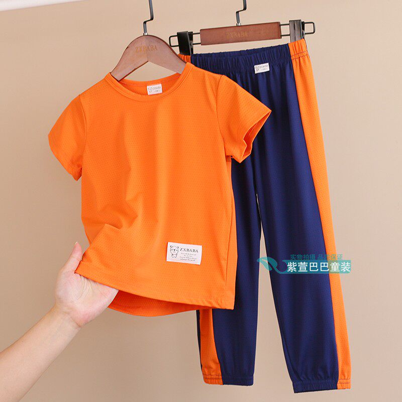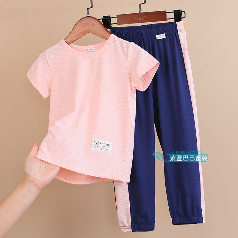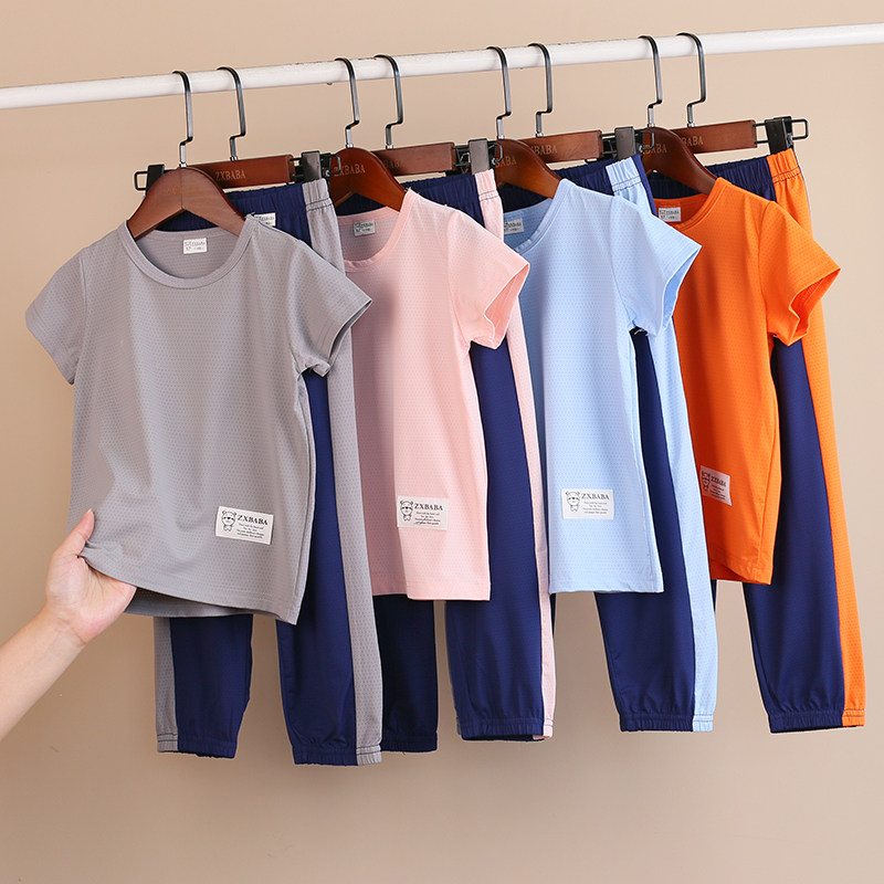 Детские шелковые быстросохнущие штаны подходит для мужчин и женщин, спортивный костюм, футболка, фонарь, короткий рукав