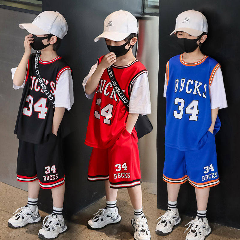 Летний детский спортивный костюм для мальчиков, быстросохнущая баскетбольная форма, комплект, подходит для подростков, короткий рукав