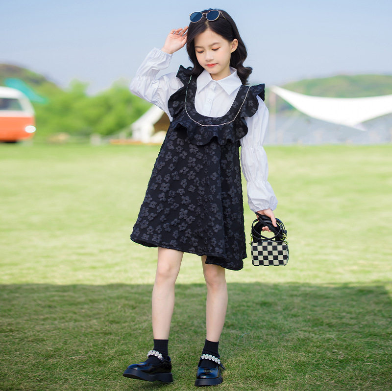 Платье, юбка, лонгслив, рубашка, комплект, осеннее, цветочный принт, 2023, подходит для подростков