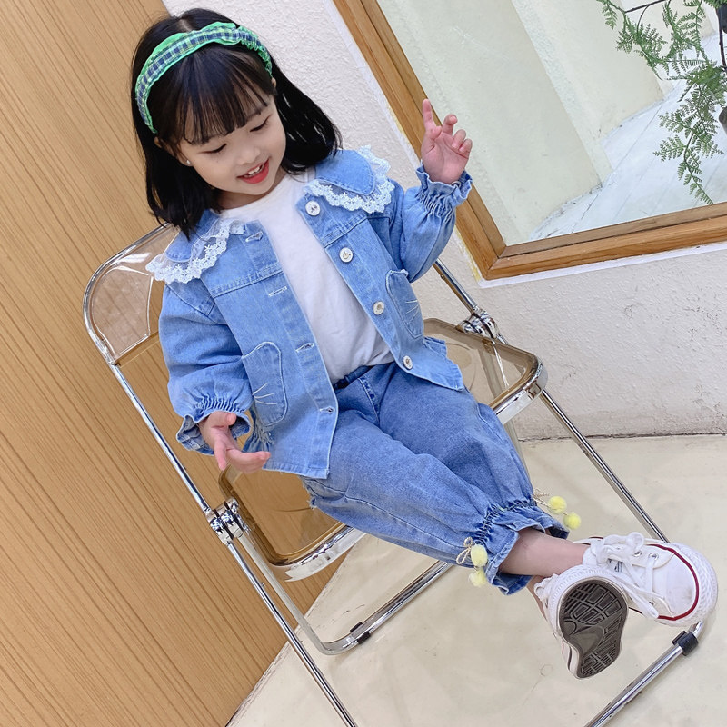 Детский осенний джинсовый комплект, коллекция 2023, в западном стиле, детская одежда, популярно в интернете