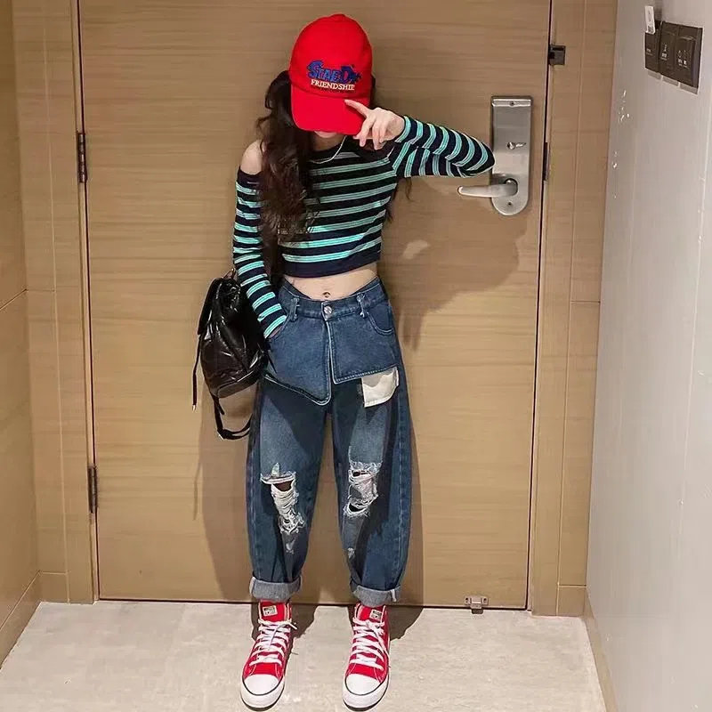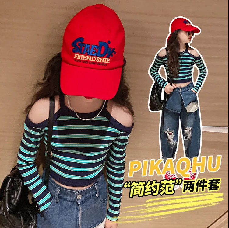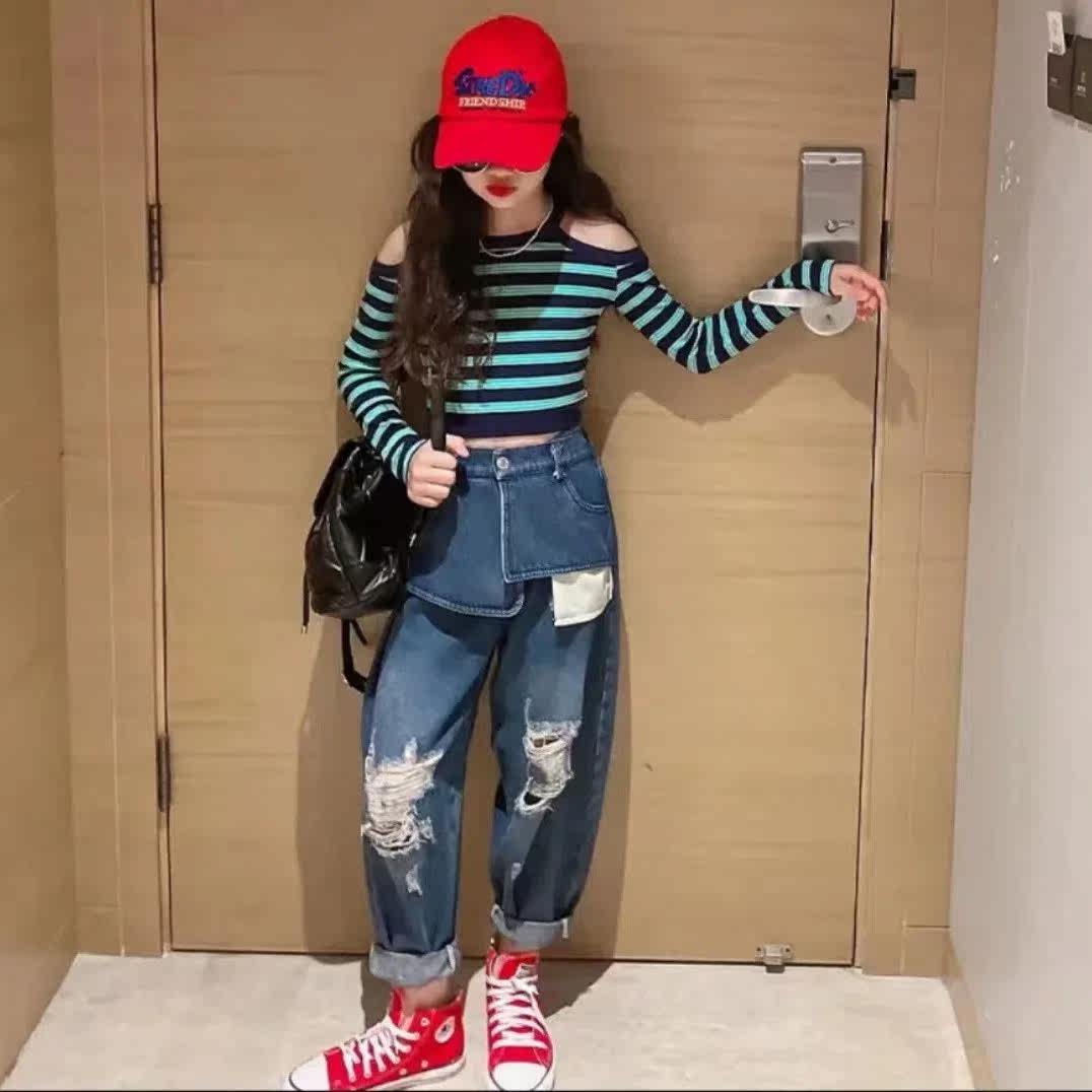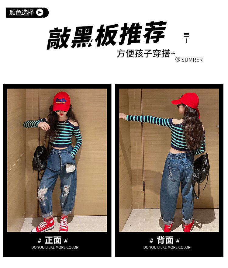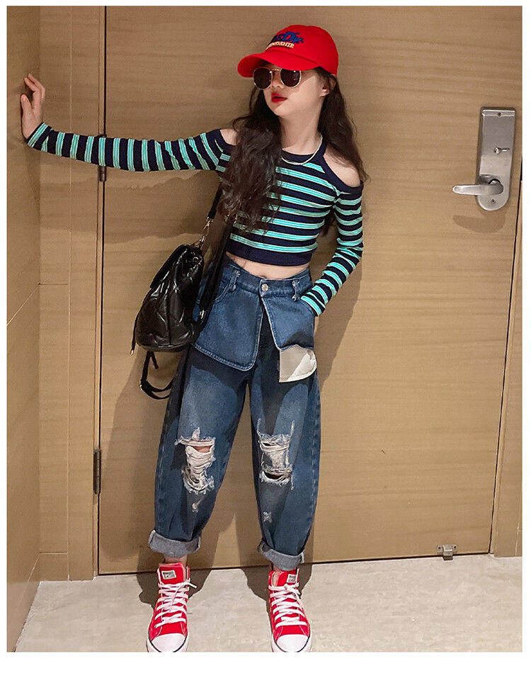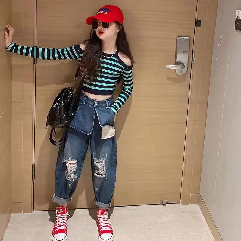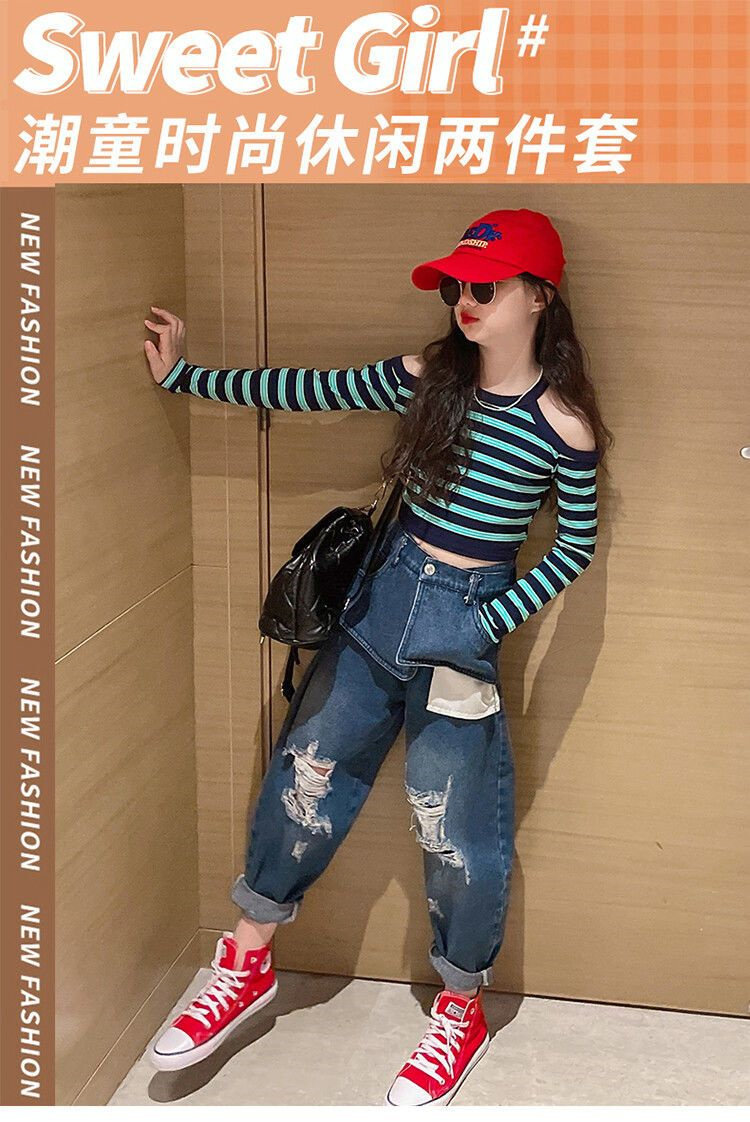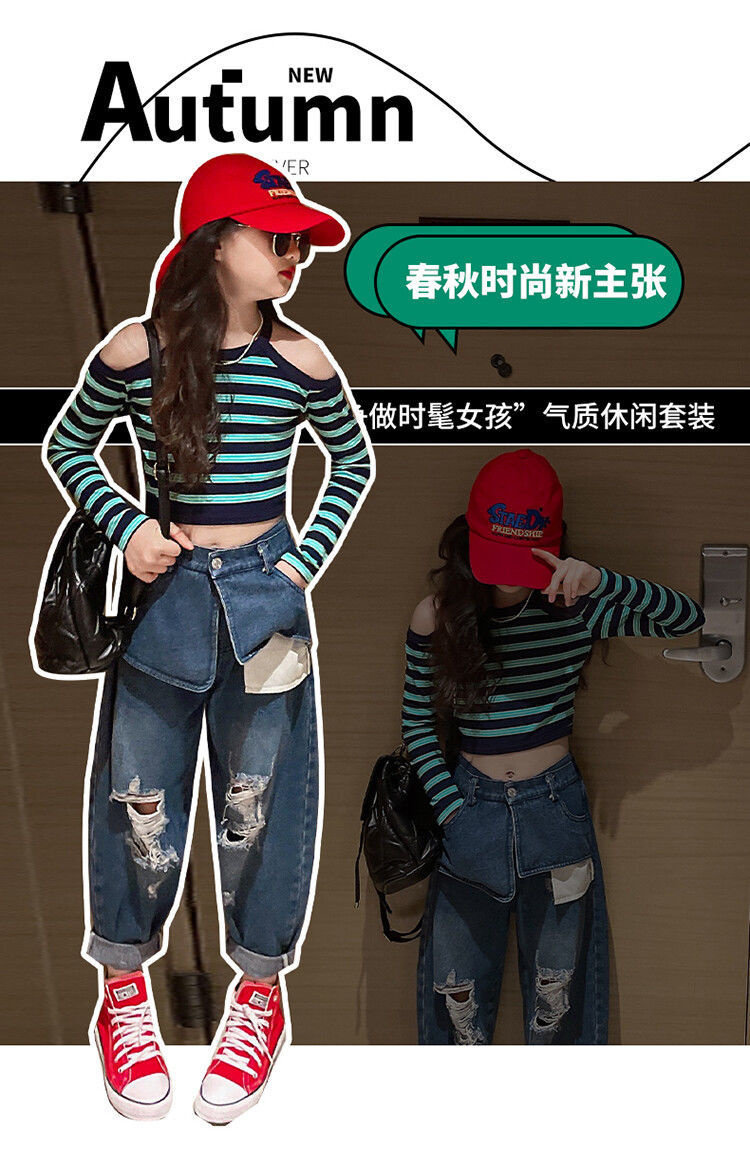 Осенний комплект, лонгслив, джинсы, 2022, подходит для подростков, в западном стиле
